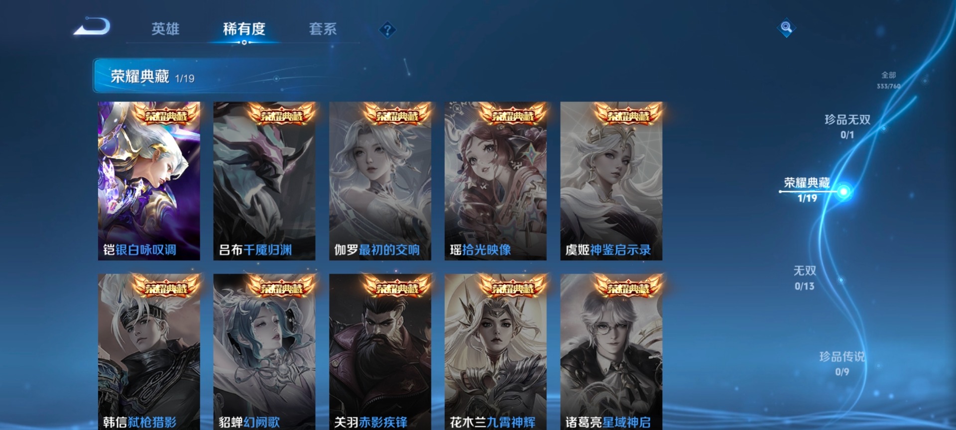 128英雄-333皮肤-[]v7 1典藏 4传说 128英雄 333皮肤 可修改实名 【英雄全皮】蒙恬全皮敖隐全皮空空儿全皮孙权全皮蚩奼全皮狂铁全皮影全皮大禹全皮 【稀有英雄】大司命敖隐小龙人夏洛特夏师傅金蝉唐僧戈娅赵云嬴政始皇帝韩信韩跳跳艾琳不知火舞