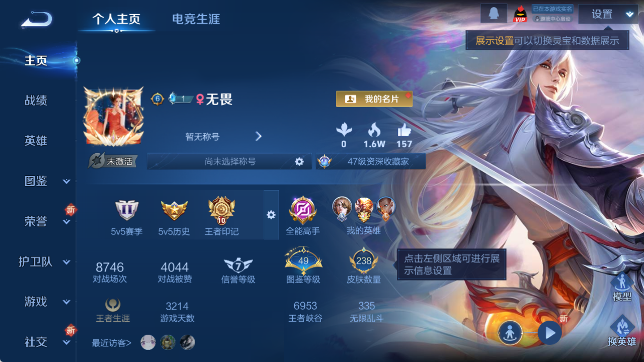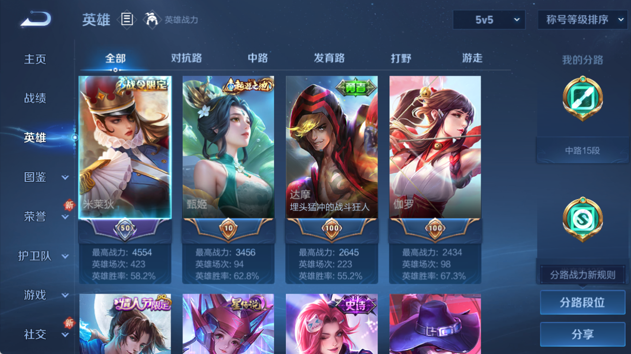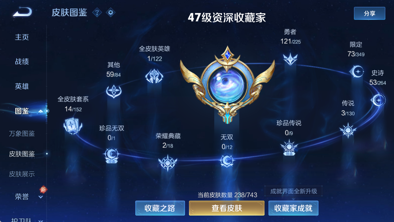 125英雄-238皮肤-实名: 可修改 贵族等级: v7 英雄数: 125 皮肤数: 238 荣耀水晶: 全息碎影神鉴启示录 星传说: 未来机甲 传说皮: 末日机甲-孙尚香 限定皮: 冰锋战神遇见飞天李小龙游园惊梦梁祝白晶晶热情桑巴凤求凰至尊宝圣诞老人鸣野蒿 亮点: 【精品号手慢无】打野号 2典藏全息