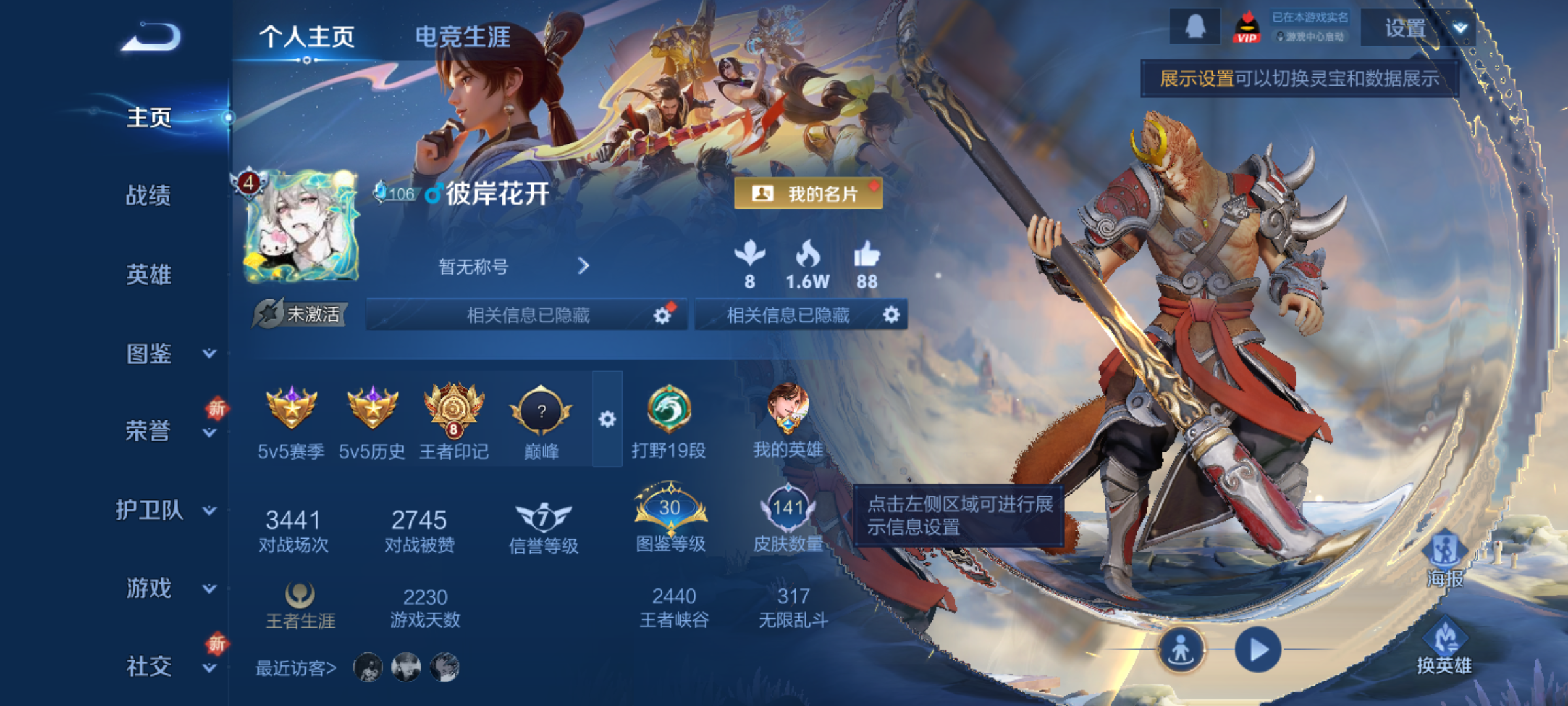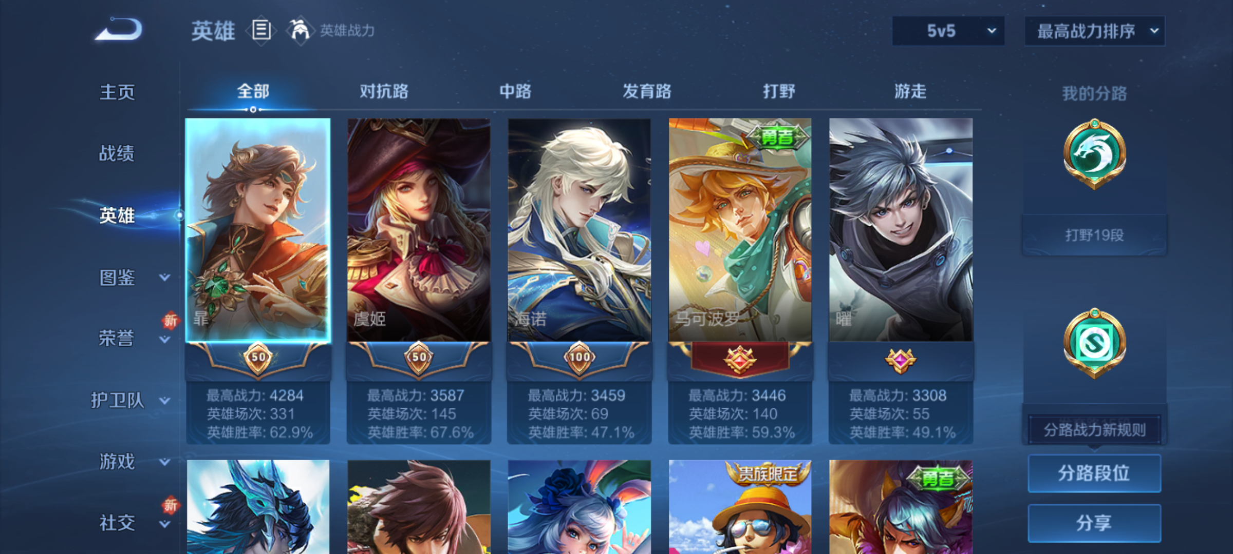 购买后可换绑【精品号手慢无】贵4性价比号,打野19段,28级收藏家,8606星币,80 鲜花,3个性按键,25夺宝,1典藏皮鸣剑·曳影,6限定皮李小龙高山流水孙行者猪悟能五谷丰年鸣野蒿,27史诗皮.