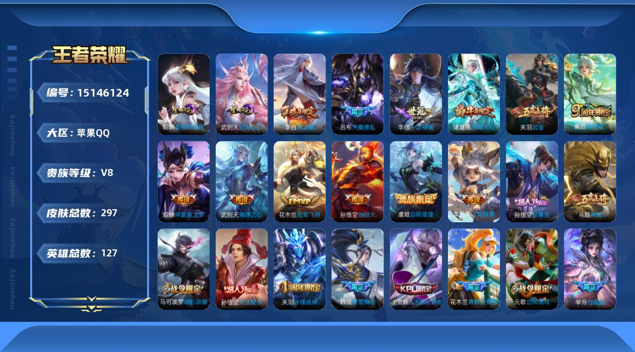 127英雄-297皮肤-可换绑,【精品号手慢无】武则天,历史4银标,一念神魔地狱火仲夏夜之梦海洋之心飞鸢探春,凤求凰美猴王至尊宝天魔缭乱神威贵8,2星传说;武则天幻海之心,貂蝉金色仲夏夜,星币904