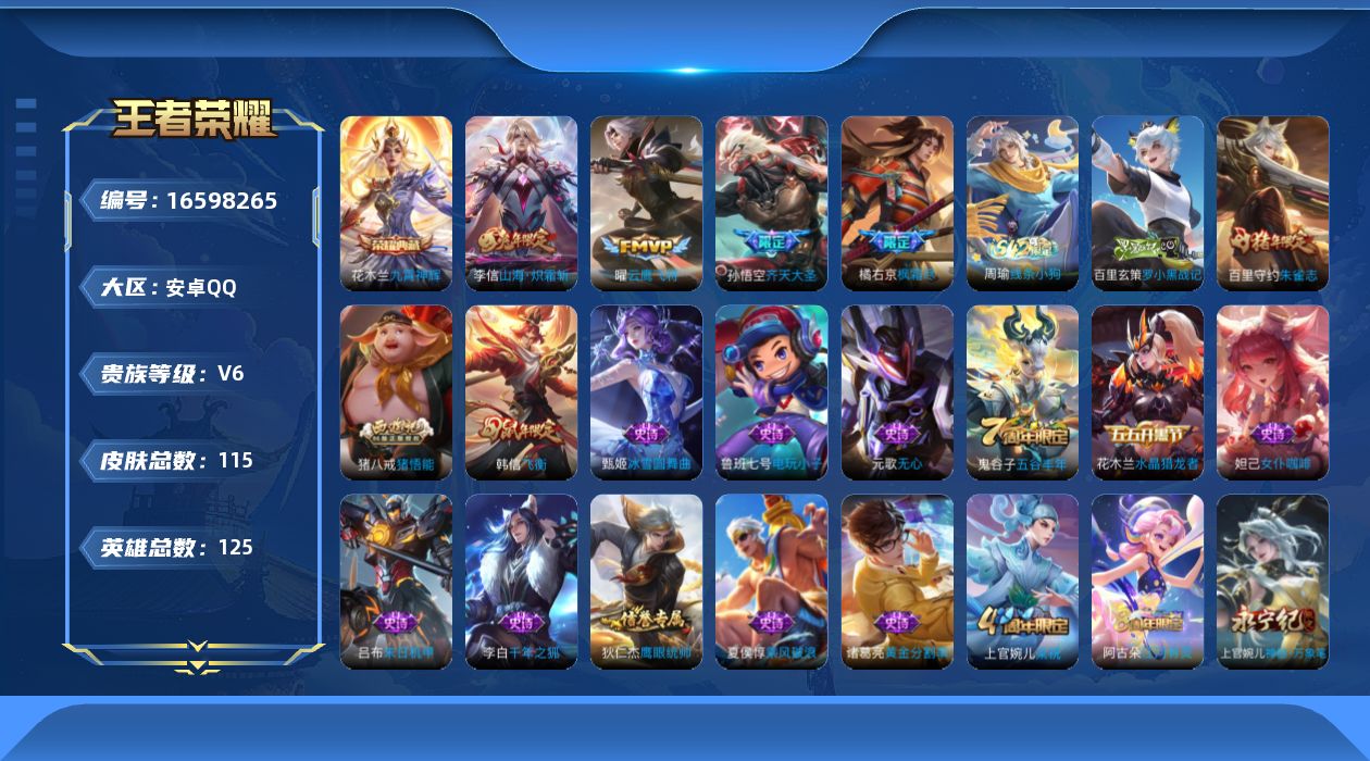 125英雄-115皮肤-【精品号手慢无】典藏九霄神辉 热门限定皮齐天大圣山海炽霜斩朱雀志 500玫瑰 2000星币