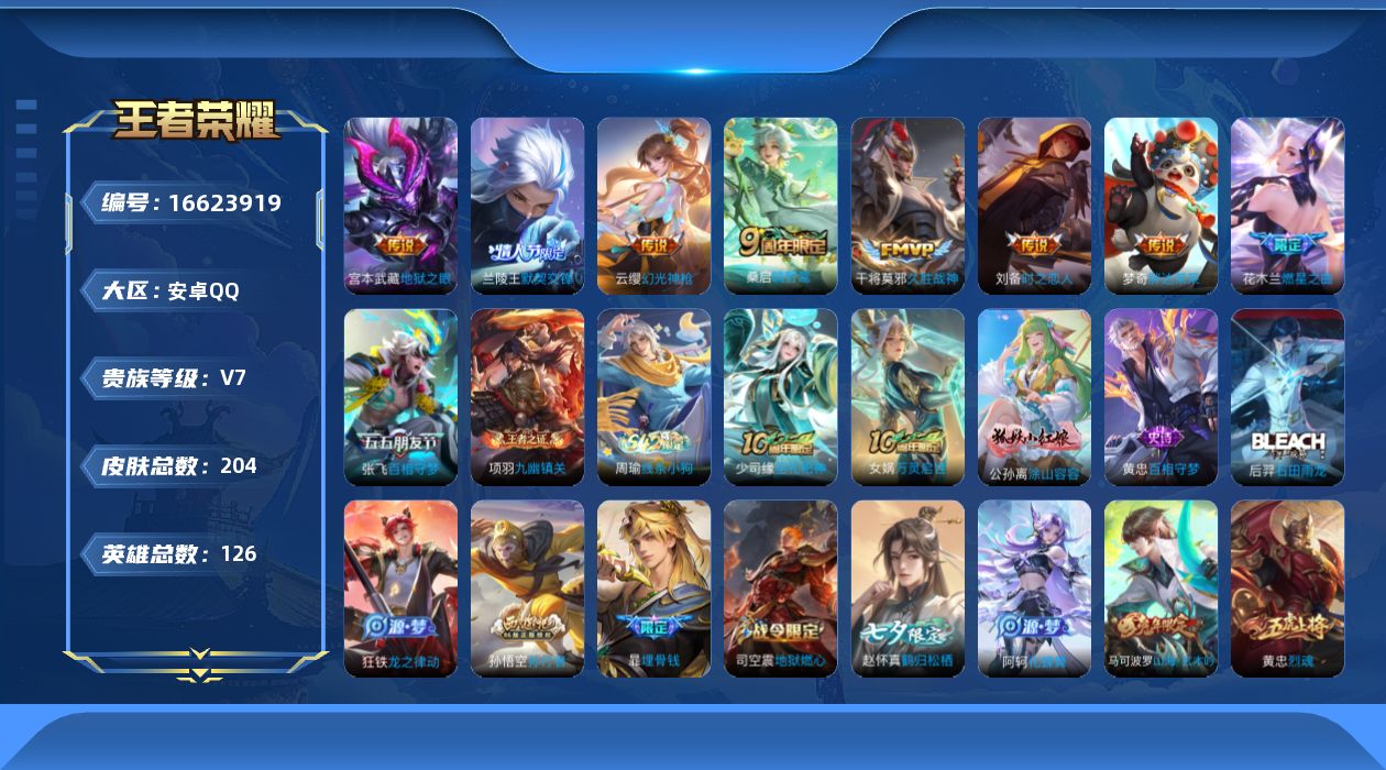 [16623919]v7 10传说 126英雄 204皮肤 可修改实名 【英雄全皮】大禹全皮 【稀有英雄】大司命韩信韩跳跳夏洛特夏师傅艾琳橘右京橘子娜可露露鸟人不知火舞赵云金蝉唐僧戈娅 【传说皮】神树通天幻光神呛地狱之眼久胜战神胖达荣荣时之恋人-刘备电焊工燃星之曲百相守梦张飞 【珍宝阁皮】胡桃夹子万物之道 【赛季/战令皮】噬灭天穹s37古海寻踪s33星界游侠海盐诗旅s30擒涛扼浪s31探海日志s32驭风魔法玲珑珍味流音漫舞顽趣-梦奇地狱燃心剑破天穹s35天穹祈灯s34青焰无极苍威无极天穹之誓s36暖冬·兔眠沙漠行僧s26金庭之子s27大漠名商s28云中旅人s29 【史诗皮】线条小狗-周瑜化蝶舞龙之律动石田雨龙百相守梦-黄忠蔬乡物语鲁班七号星界战将谪仙醉月蒙犽顽岩魄埋骨钱决胜骁骑涂山容容九幽镇关巫礼祀神万灵启世紫霞仙子苍穹之光特工魅影千年之狐百解令蒙犽蒙恬荣光圣徽鹤归松栖赵怀真偶像歌手江河有灵电玩·爆裂旋风末日机甲-吕布猫狗日记-孙策猫狗日记-大乔乱世虎臣修罗女仆咖啡水果甜心绅士熊喵天才门将星夜王子功夫厨神德古拉伯爵幽灵船长鬼剑武藏心灵战警舞动绿茵地狱岩魂纤云弄巧缤纷独角兽乘风破浪逐浪之夏月团寄思水晶猎龙者曙光守护者热力回旋箭羽风息金属风暴原初追逐者圣诞狂欢圣诞恋歌鹰眼统帅魅力维加斯赏金猎手无心 【限定皮】鸣野蒿遇见飞天五谷丰年烈魂如梦令-后羿默契交锋-兰陵王孙行者山海·玄木吟马可年限 【普通皮】劲辣红锅敬我三分铁骨偃魂苍林狼骑雪境奇遇-西施星梦巡礼熔金海岸春野之旅街头霸王漠中幻影功夫炙烤亚瑟鸿运当头朵莉亚金色潮汐龙舞盛年蔬乡物语李元芳程咬金群星魔术团暗都幽影谧流熔炉景韶洛都玫蓝誓约克喵罗小黑战记-哪吒荣光之誓鹤鸣心笺溯影追猎布丁狗之约虚灵犬护春野闲踪灵野札记浪漫序章小满鸭死霸装逆浪荇歌命运加冕踏浪烽翎零食大作战热血海滩妄想特派潮玩造梦师西部游侠太极少年聚星闪耀威尼斯狂欢破局者决胜大满贯完美运算鬼谷子