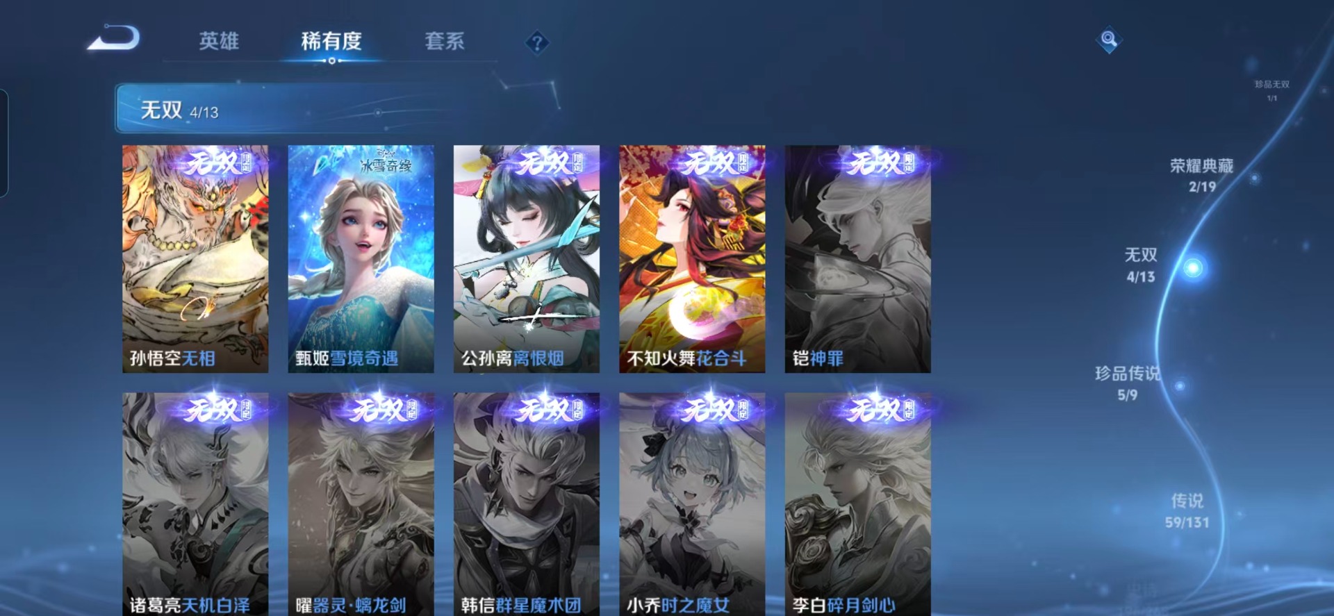 128英雄-559皮肤-[]v10 2典藏 1珍品无双 4无双 5珍品传说 59传说 128英雄 559皮肤 可修改实名 【英雄全皮】朵莉亚全皮大乔全皮露娜全皮少司缘全皮阿古朵全皮蒙恬全皮云中君全皮刘备全皮沈梦溪全皮弈星全皮敖隐全皮空空儿全皮孙权全皮蚩奼全皮海诺全皮鬼谷子全皮