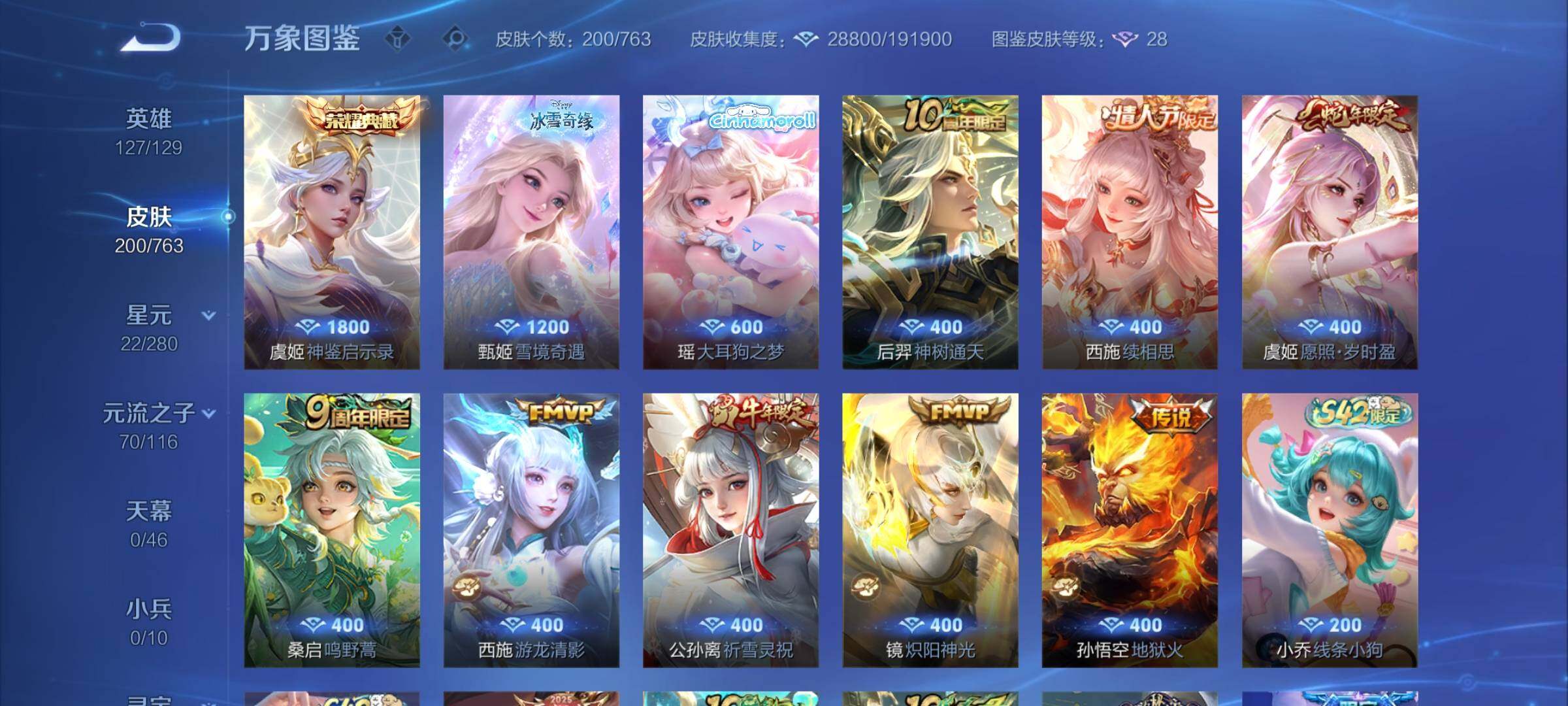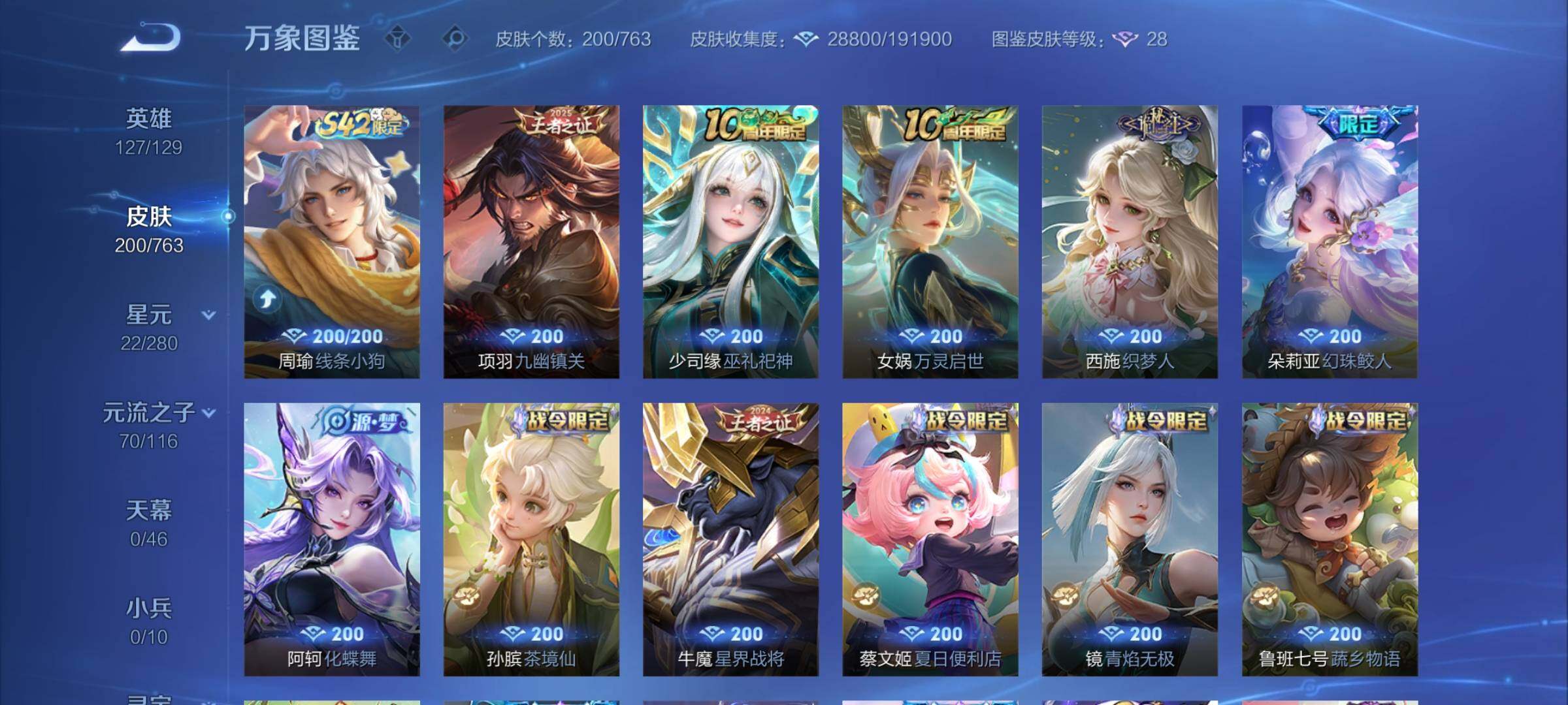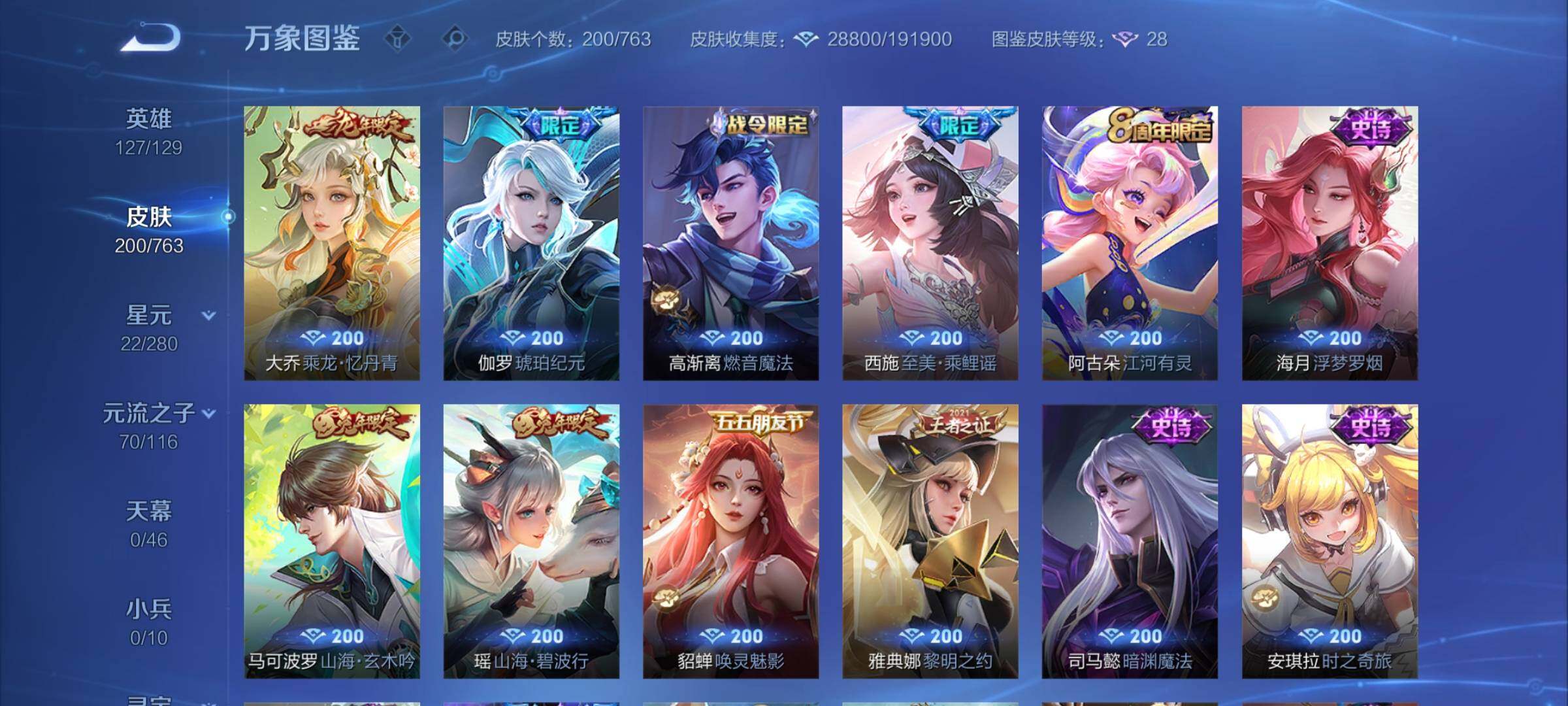 【精品女号·全皮西施·神鉴启示录·雪境奇遇·大耳狗之梦·续相思·愿照岁时盈·游龙清影·祈雪灵祝·夏日便利店·山海碧波行·至美乘鲤谣·乘龙忆丹青】【可二次】w14931-安卓q-127英雄-200皮肤-10王者印记-180铭文-贵族积分4w【贵族7】【1典藏·1无双·1珍品·1星传说·8传说·13按键】【因赛季更新游戏段付以上号为准!】 【英雄全皮】:西施全皮,影全皮 【荣耀典藏】:虞姬神鉴