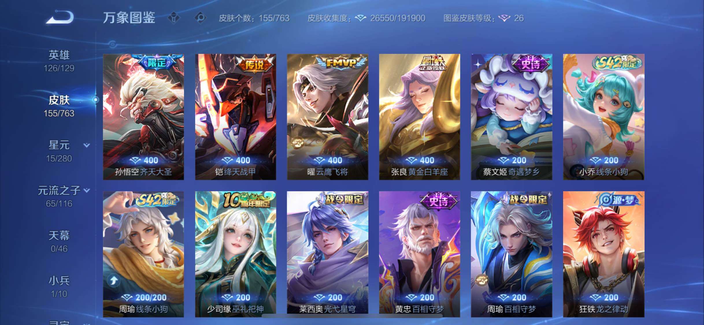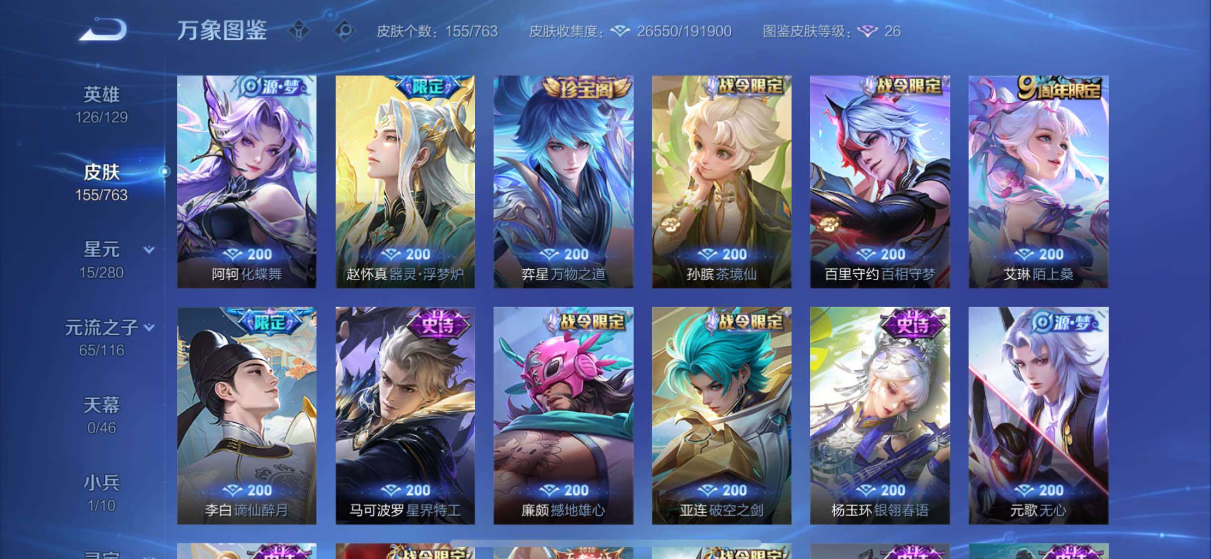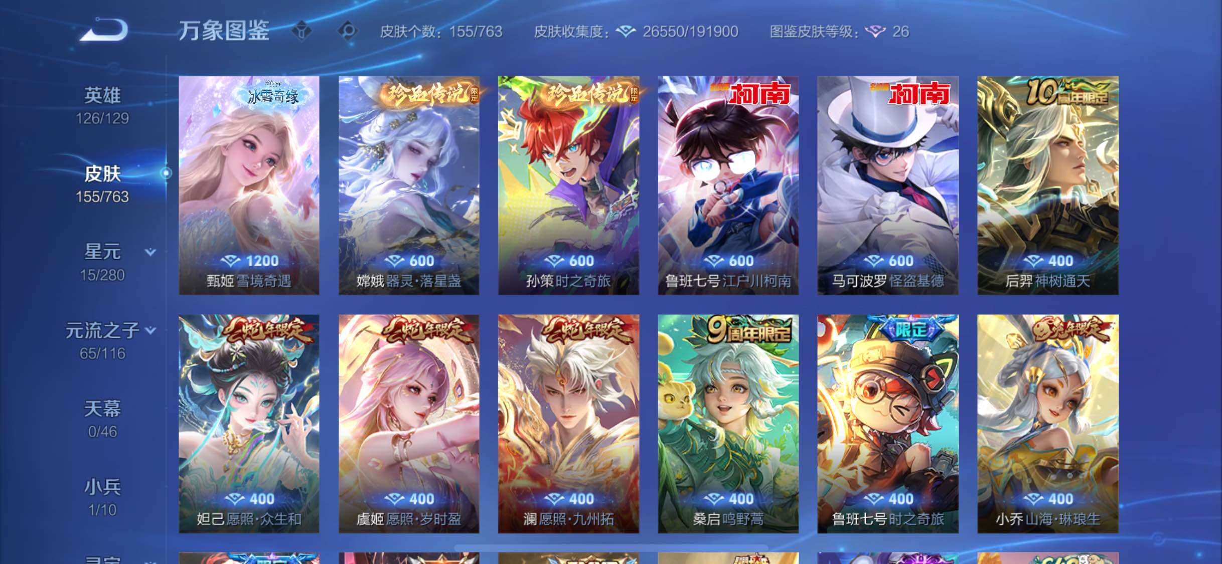 【精品小号·雪境奇遇·怪盗基德·江户川柯南·孙策时之奇旅·器灵落星盏·愿照众生和·愿照九州拓·愿照岁时盈·山海琳琅生·飞衡】【可二次】yxw14919-苹果q-126英雄-155皮肤-5王者印记-120铭文-贵族积分4w【贵族7】【1无双·4珍品·11传说·14按键】【因赛季更新游戏段付以上号为准!】 【英雄全皮】:影全皮 【无双皮肤】:甄姬雪境奇遇 【珍品传说】:马可波罗怪盗基德,鲁班七号江户川柯南,孙策时之奇旅,嫦娥器灵落星盏 【小兵皮肤】:小兵线条小狗 【传说皮肤】:后羿神树通天,妲己愿照众生和,澜愿照九州拓,虞姬愿照岁时盈,桑启鸣野蒿,鲁班七号时之奇旅,孙悟空齐天大圣,小乔山海琳琅生,铠绛天战甲,曜云鹰飞将,张良黄金白羊座 【限定皮肤】:姜子牙天穹之誓,李白谪仙醉月,狄仁杰阴阳师,小乔山海琳琅生,赵云皇家上将,赵云引擎之心,妲己时之彼端,鲁班七号时之奇旅,元歌无心,马可波罗暗影游猎,狄仁杰魔术师,项羽海滩派对,貂蝉逐梦之音,韩信飞衡,孙悟空齐天大圣,杨玉环遇见飞天,百里玄策原初追逐者,米莱狄胡桃异想国,妲己灵卜魔法,沈梦溪龙舞盛年 【年限皮肤】:韩信飞衡,小乔山海琳琅生,妲己愿照众生和,澜愿照九州拓,虞姬愿照岁时盈 【赛季限定】:姜子牙天穹之誓,东皇太一噬灭天穹,太乙真人谧流熔炉,钟馗虚灵犬护,甄姬逆浪荇歌,亚瑟荣光之誓,百里玄策原初追逐者 【战令限定】:马可波罗暗影游猎,米莱狄胡桃异想国,妲己灵卜魔法,亚连破空之剑,廉颇撼地雄心,孙悟空神迹守卫,百里守约百相守梦,老夫子百相守梦,孙膑茶境仙,马超访茗客,周瑜百相守梦,孙策百相守梦,莱西奥光弋星穹,明世隐往忆晖光,周瑜线条小狗,小乔线条小狗 【史诗皮肤】:鲁班七号电玩小子,露娜紫霞仙子,赵云皇家上将,甄姬冰雪圆舞曲,王昭君偶像歌手,狄仁杰魔术师,宫本武藏鬼剑武藏,孙尚香水果甜心,妲己魅力维加斯,墨子金属风暴,刘禅绅士熊喵,曹操幽灵船长,李白千年之狐,貂蝉逐梦之音,赵云引擎之心,兰陵王暗隐猎兽者,亚瑟心灵战警,安琪拉心灵骇客,百里守约特工魅影,刘禅天才门将,程咬金功夫厨神,白起星夜王子,阿轲节奏热浪,杨玉环遇见飞天,孙策猫狗日记,伽罗箭羽风息,狄仁杰鹰眼统帅,娜可露露晚萤,韩信飞衡,妲己时之彼端,小乔青蛇,孙尚香时之恋人,马可波罗暗影游猎,百里玄策原初追逐者,米莱狄胡桃异想国,阿古朵顽趣,元歌无心,杨玉环银翎春语,妲己灵卜魔法,廉颇撼地雄心,亚连破空之剑,马可波罗星界特工,李白谪仙醉月,艾琳陌上桑,百里守约百相守梦,孙膑茶境仙,弈星万物之道,赵怀真器灵浮梦炉,阿轲化蝶舞,狂铁龙之律动,周瑜百相守梦,黄忠百相守梦,莱西奥光弋星穹,少司缘巫礼祀神,小乔线条小狗,周瑜线条小狗,蔡文姬奇遇梦乡 【其他皮肤】:项羽海滩派对,韩信教廷特使,韩信街头霸王,赵云忍炎影,芈月红桃皇后,孙膑天使之翼,姜子牙时尚教父,典韦黄金武士,亚瑟死亡骑士,达摩拳王,花木兰兔女郎,刘备万事如意,后羿阿尔法小队,狄仁杰阴阳师,刘备纽约教父,钟无艳海滩丽影,王昭君幻想奇妙夜,狂铁命运角斗场,苏烈坚韧之力,吕布野性能量,鲁班七号黑桃队长,廉颇无尽征程,蒙恬蔚蓝守将,海月幻泉雾影,牛魔牛运亨通,太乙真人劲辣红锅,曹操决胜大满贯,妲己灵卜魔法,朵莉亚金色潮汐,沈梦溪龙舞盛年,姜子牙天穹之誓,孙悟空神迹守卫,盘古敬我三分,东皇太一噬灭天穹,亚瑟动物派对,老夫子百相守梦,米莱狄怪诞之夜,干将莫邪雾都夜雨,吕布逐霄战戟,苍苍林狼骑,太乙真人谧流熔炉,典韦铁骨偃魂,马超访茗客,影魅影绮裳,西施雪境奇遇,姜子牙星梦巡礼,达摩爆裂喵拳,明世隐景韶洛都,戈娅玫蓝誓约,刘备浪漫序章,钟馗虚灵犬护,苏烈春野闲踪,张良灵野札记,阿古朵布丁狗之约,露娜命运加冕,甄姬逆浪荇歌,孙策百相守梦,莱西奥踏浪烽翎,亚瑟荣光之誓,明世隐往忆晖光,张良罗小黑战记,艾琳鹤鸣心笺,虞姬溯影追猎,安琪拉糖果风暴,蒙恬苍云破阵,桑启线条小狗,妲己线条小狗,鲁班七号班班快跑,鲁班七号福禄兄弟,项羽帝国元帅,孙悟空西部大镖客,后羿精灵王,李白范海辛,蔡文姬蔷薇王座,铠龙域领主,百里玄策威尼斯狂欢,公孙离花间舞,杨玉环霓裳曲,裴擒虎街头旋风,司马懿魇语军师,西施归虚梦演,云缨赤焰之缨,金蝉前尘