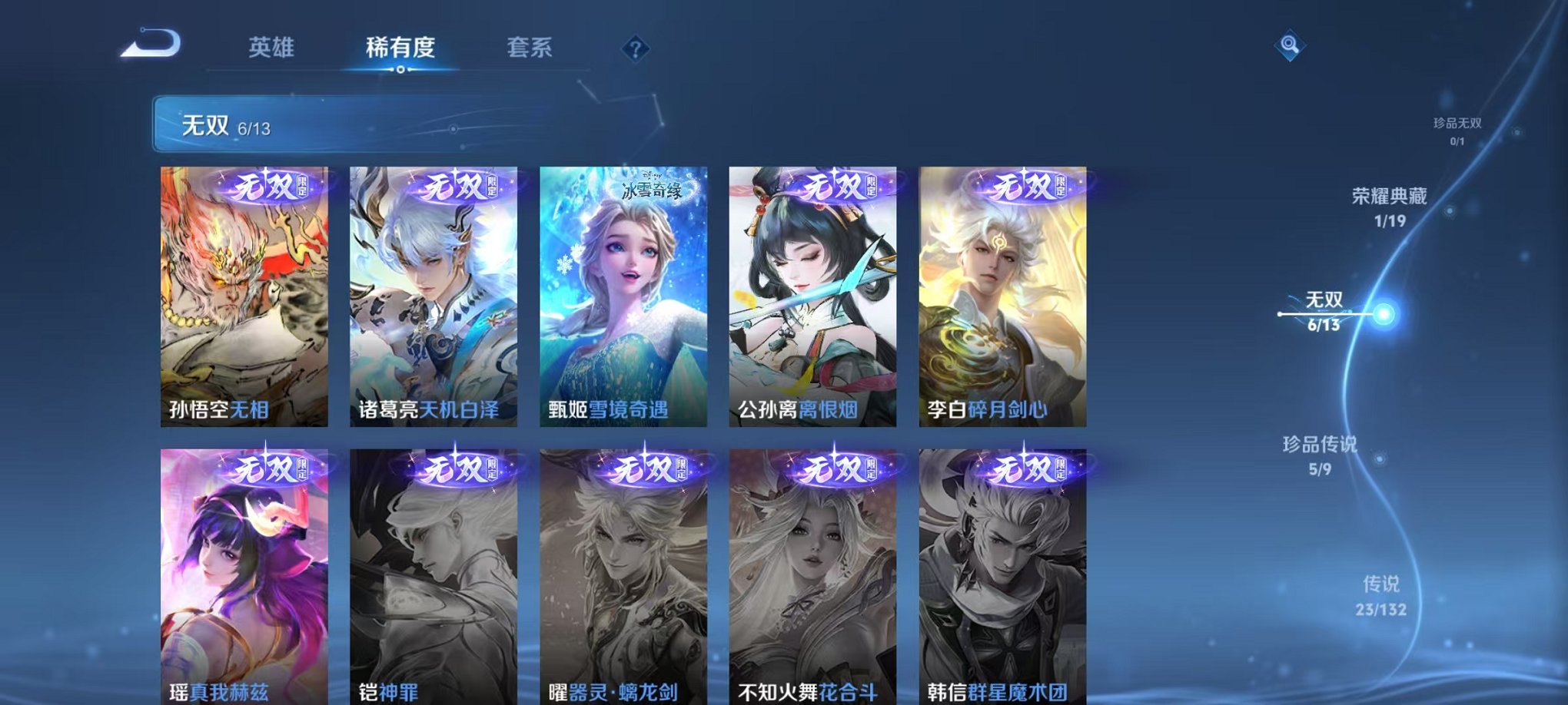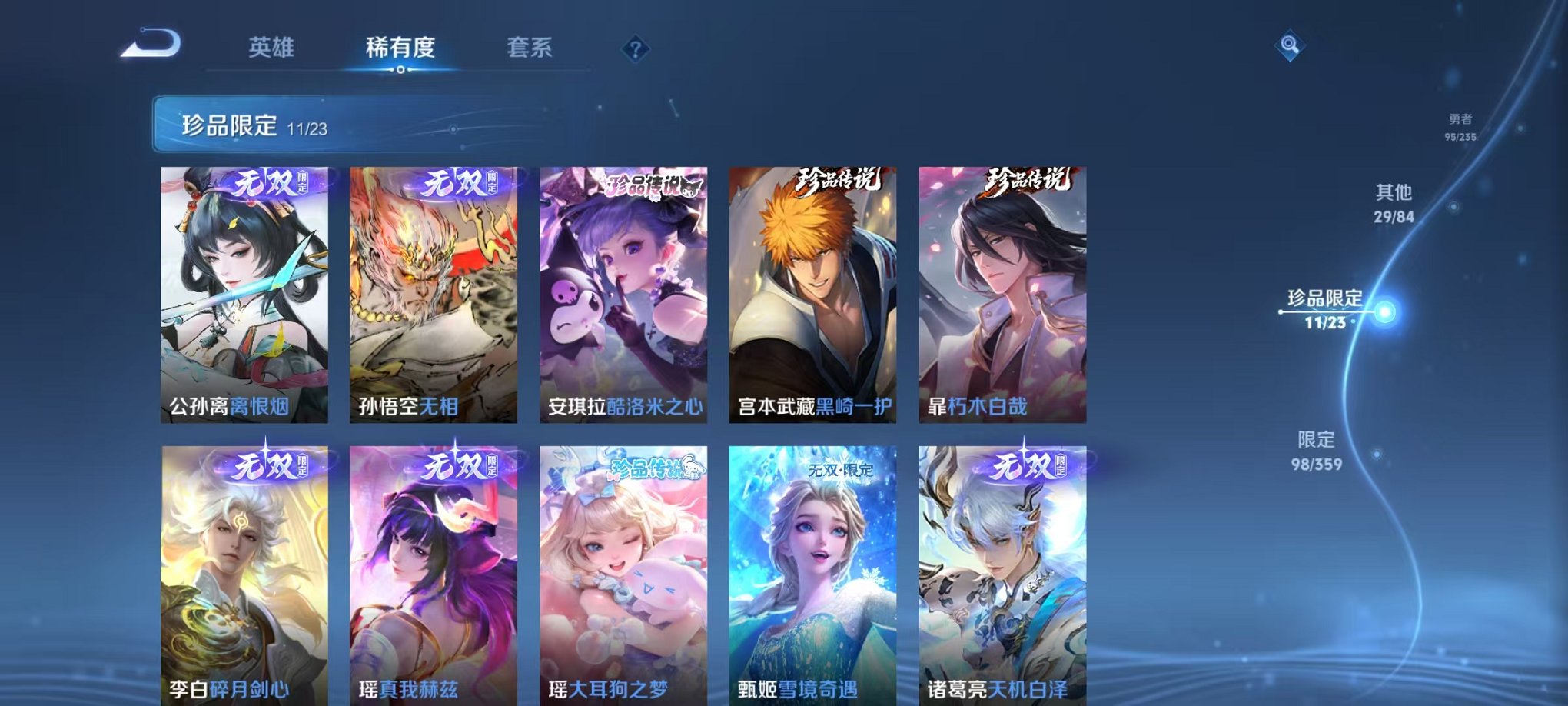 126英雄-244皮肤-【女号 1水晶6无双1星元5珍品23传说安全保护】安卓v区-126英雄-244皮肤【1水晶】大秦宣太后【无双皮肤】离恨烟 无相 真我赫兹 雪境奇遇 天机白泽 碎月剑心【珍品传说】酷洛米之心 大耳狗之梦 黑崎一护 朽木白哉 怪盗基德【星元皮肤】金色仲夏夜【传说皮肤】浮生妄 乘龙·问璇玑 神树通天 时之奇旅 霜月吟 云诺千山 鸣野蒿 妄想实况 记忆之芯 九山相柳 诡秘之主 霜北刀