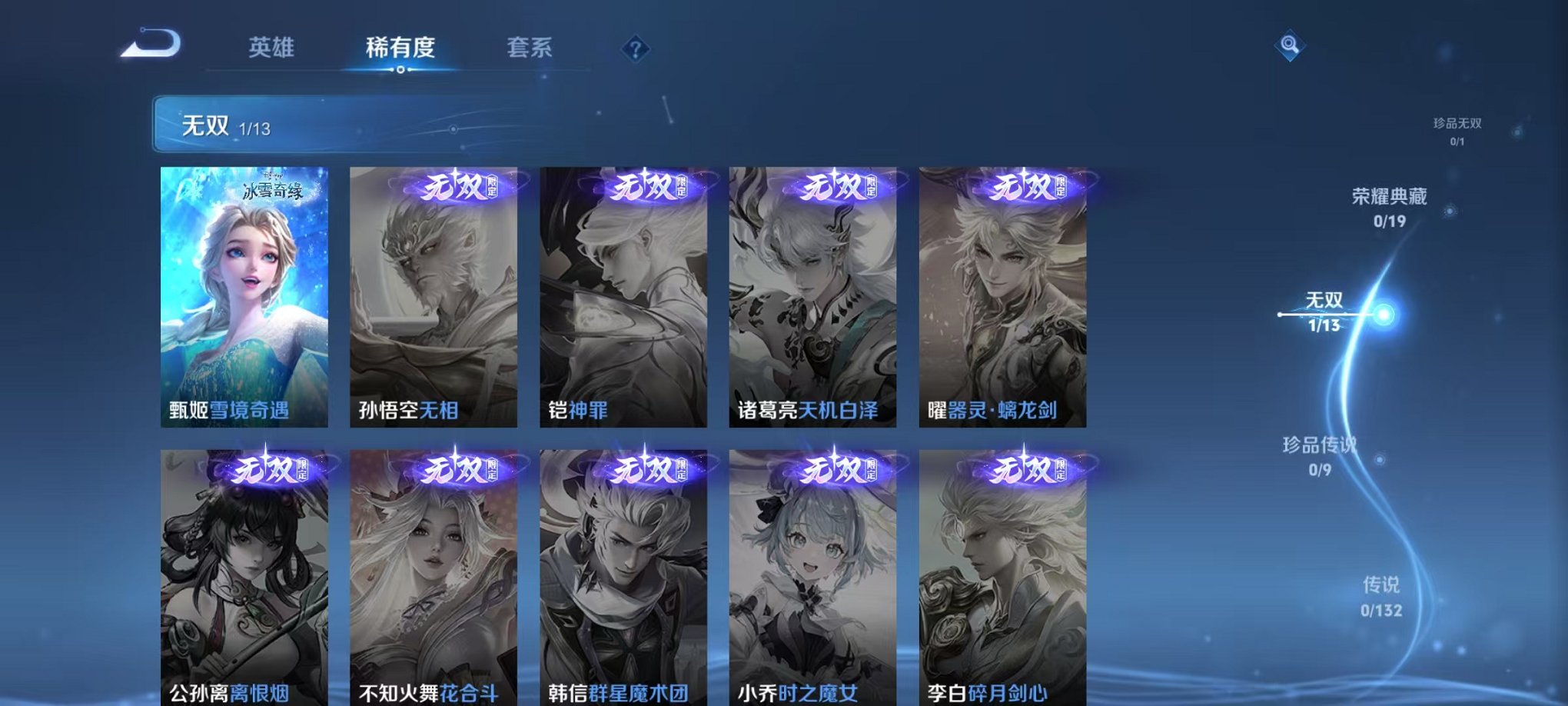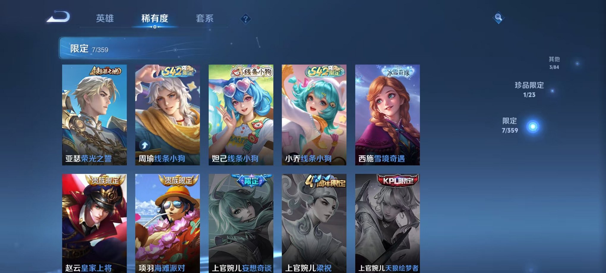 37英雄-20皮肤-可二次【雪境奇遇1无双可秒换绑】安卓qq-37英雄-20皮肤【无双皮肤】雪境奇遇【史诗皮肤】浮梦罗烟 线条小狗 完美假期 幽灵船长 魅力维加斯 圣诞恋歌 皇家上将 冰雪圆舞曲【勇者皮肤】线条小狗 荣光之誓 海滩派对 忍·炎影 掌控之力 玩偶对对碰 营地id: