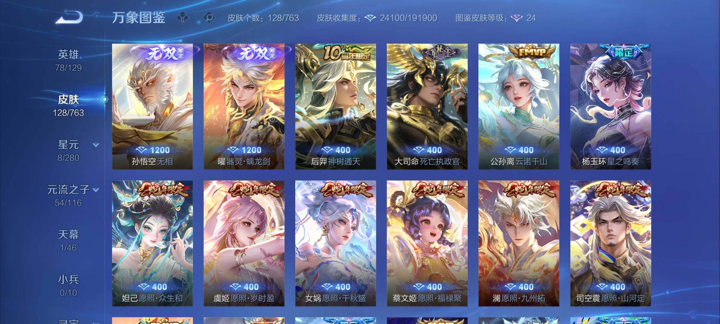 2445284-可换绑【高性价精品号·孙悟空无相·曜器灵螭龙剑·蛇年全套·落雪白狼·妄想奇谈·财神纳福天幕·多传说限定质量号】1天幕,47按键,8五级铭文,可二次cd17007,安卓q-v8-128皮肤-2无双-22传说-33史诗 【英雄全皮】:孙权全皮【无双皮肤】:曜器灵螭龙剑,孙悟空无相【天幕】:财神纳福天幕【传说皮肤】:后羿神树通天,大司命死亡执政官,公孙离云诺千山,杨玉环星之鸣奏,司