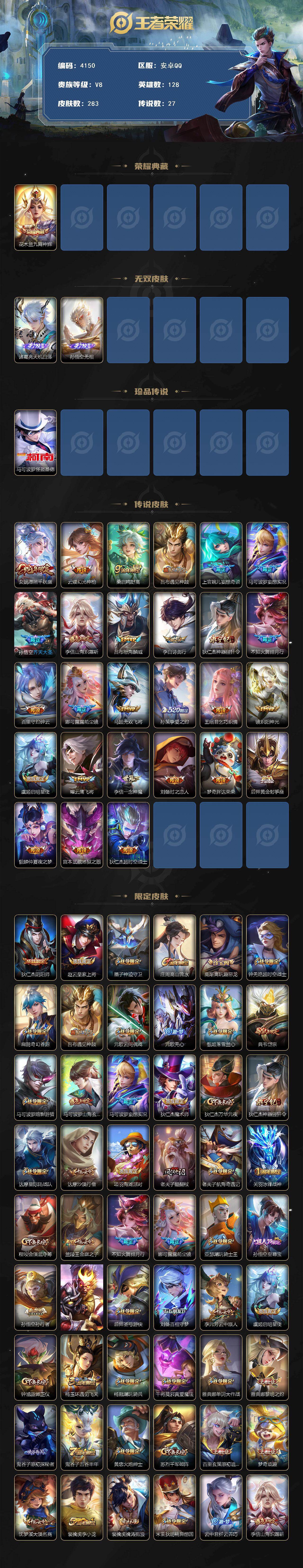 贵族8-贵族积分86032-283皮1典藏27传说2无双1珍品传说-5个英雄全皮 金标狂铁 安卓手q355区283皮1典藏27传说2无双1珍品传说v8