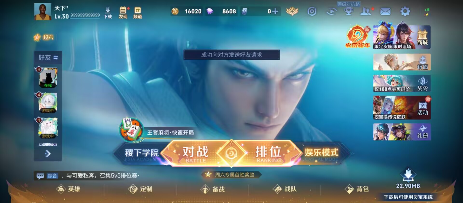 txwz30604 兰陵王情人节限定 v6-135皮肤-8传说-黄金射手座,鸣野蒿,音你心动,云霓雀翎,默契交锋,一念神魔,久胜战神,超时空战士-信用分低于100-可以加好友-可以发消息-可以正常排位