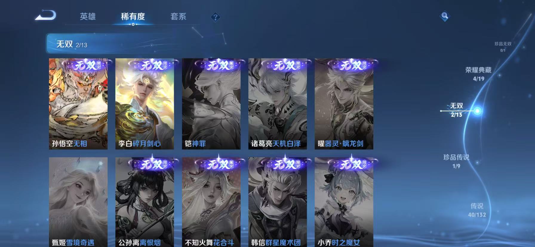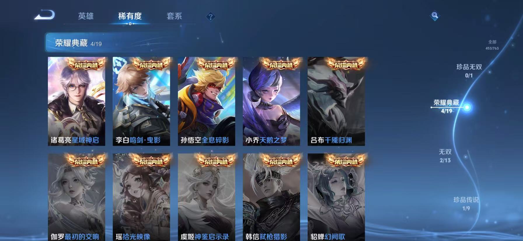 【王者荣耀】【lywz30267】珍品无双0 典藏4 无双2 珍品传说1 传说40 史诗135 英雄128 皮肤453 贵族9级 荣耀典藏:全息碎影|天鹅之梦|鸣剑·曳影|星域神启__无双皮肤:碎月剑心|无相__珍品传说:孙策-时之奇旅__传说皮肤:鸣野蒿|无双飞将|绛天战甲|启明星使|地狱之眼|地狱火|仲夏夜之梦|云霓雀翎|久胜战神|黄金狮子座|狄仁杰-超时空战士|黄金白羊座|猫影幻舞|刘备-时之恋人|一念神魔|云鹰飞将|冠军飞将|游龙清影|淬星耀世|瑶-时之祈愿|鹤羽星尊|记忆之芯|孙尚香-末日机甲|齐天大圣|白虎志|凤求凰|零号·赤焰|鲁班七号-时之奇旅|怒海麟威|诗剑行|碎云|太华|武圣|小乔-音你心动|遇见神鼓|冥王哈迪斯|幻光神呛|愿照·九州拓|神树通天|纵目迁山__稀有限定:御风骁将|至尊宝|朱雀志|虞姬-霸王别姬|大圣娶亲|飞衡|蔷薇恋人|傲雪梅呛|李小龙|梁祝|山海·碧波行|狮舞东方|拒霜思|暗影游猎|白昼王子|百解令|百里守约-真我赫兹|冰锋战神|大漠名商|地狱燃心|电玩高手|繁星吟游|高山流水|古海寻踪|海滩派对|海盐诗旅|胡桃夹子|胡桃异想国|皇家上将|辉光之辰|混沌棋|剑破天穹|江河有灵|金庭之子|狂想玩偶喵|黎明之约|美猴王|迷踪丽影|魔术师|女武神|千军破阵|擒涛扼浪|穷奇|驱傩正仪|荣光圣徽|沙漠行僧|朔风刀|死亡摇滚|探海日志|饕餮|醍醐杖|天穹祈灯|万华元夜|无心|五谷丰年|午后时光|纤云弄巧|星界游侠|星空之诺|驯魔猎人|演武夺筹|疑决卦|阴阳师|银河之约|游园惊梦|驭风魔法|遇见飞天|御旌|御銮|御狮|原初追逐者|云间偶戏|逐梦之翼|逐梦之音|暗夜贵公子|暗夜猫娘|暗隐猎兽者|暗渊魔法|白蛇|缤纷独角兽|冰冠公主|冰雪圆舞曲|苍穹之光|乘风破浪|大乔-猫狗日记|德古拉伯爵|地狱岩魂|电玩·爆裂旋风|电玩小子|浮梦罗烟|伽罗-琥珀纪元|功夫厨神|鬼剑武藏|唤灵魅影|黄金分割率|箭羽风息|节奏热浪|金属风暴|乐园奇幻夜|龙鼓争鸣|龙骑士|吕布-末日机甲|魅力维加斯|魅语|梦奇-顽趣|女仆咖啡|奇遇舞章|青蛇|热力回旋|赏金猎手|绅士熊喵|圣诞狂欢|圣诞恋歌|诗语江南|水果甜心|水晶猎龙者|孙策-猫狗日记|天才门将|天秀·幻梦|天秀·启明|晚萤|赵云-未来纪元|星夜王子|雪上飞焰|雪夜绮愿|摇滚巨星|鹰眼统帅|永昼|幽灵船长|遇见神鹿|月团寄思|云中君-时之祈愿|至美·乘鲤谣|钟无艳-超时空战士|逐浪之夏|紫霞仙子|百里守约-百相守梦|老夫子-百相守梦|谪仙醉月|星界特工|噬灭天穹|敬我三分|破空之剑|埋骨钱|蔡文姬-夏日便利店|虞姬-夏日便利店|天穹之誓|安琪拉-时之奇旅|修罗|曙光守护者|心灵战警|千年之狐|孙尚香-时之恋人|无限星赏官|舞动绿茵|特工魅影|心灵骇客|茶境仙|星界战将|谧流熔炉|器灵·浮梦炉|御霄|狰|烛龙|原初探秘者|重明|云中旅人|玲珑珍味|单词大作战|钟馗-神迹守卫|孙悟空-神迹守卫|达摩-星际陆战队|流音漫舞|访茗客|暖冬·兔眠|夺宝奇兵|灵蛊蚀心|龙之律动|布丁狗之约|虚灵犬护|石田雨龙|逆浪荇歌|黄忠-百相守梦|织梦人|百里玄策-罗小黑战记|荣光之誓|万灵启世|鹤鸣心笺|九幽镇关|小乔-线条小狗|周瑜-线条小狗__优质皮肤:尼罗河女神|一千零一夜|创世神祝|年年有余|埃及法老|孤猎|木偶奇遇记|熊喵少女|午夜歌剧院|露花倒影|未来旅行|激情绿茵|海之征途|天启骑士|碧珀绯影|秩序猎龙将|锦衣卫|冰刃幻境|森|超能战警|英喵野望|维京掠夺者|海军大将|绯红之刃|踏雪寻梅|启蛰|战争骑士|伊势巫女|画中游|生化警戒|威尼斯狂欢|第七人偶|潮流仙人|芝加哥教父|街头旋风|绝影神呛|地府判官|荷鲁斯之眼|幸存者|赤焰之缨|福禄兄弟|隐刃|前尘|特种部队|三太子|精灵王|剑舞者|范海辛|星航指挥官|龙域领主|爱与和平|占星师|花间舞|魇语军师|极冰防御线|花见巫女|棒球奇才|东海龙王|蔷薇王座|灼热之刃|精准探案法|圣殿之光|帝国元帅|战争女神|霓裳曲|加勒比小姐|阿摩司公爵|异域舞娘|精灵公主|修竹墨客|万圣前夜|动物派对|绒语心约|暗都幽影|功夫炙烤|暖冬絮语|幻夜行动|聚星闪耀|潮玩探月行|虎啸剑宗|瓷语鉴心|秘密基地|次元突破|鲨炮海盗猫|野性能量|丁香结|奇妙博物学|虹云星官|科学大爆炸|守护之力|坚韧之力|幻乐之宴|功夫老勺|命运角斗场|幻想奇妙夜|海滩丽影|阿尔法小队|兔女郎|死亡骑士|黄金武士|少女阿狸|天使之翼|玩偶对对碰|宫本武藏-未来纪元|东方不败|红桃皇后|忍·炎影|爱心护理|街头霸王|教廷特使|鸿运当头|金色潮汐|漠中幻影|时空谍影|决胜大满贯|破局者|王牌新星|零食大作战|西部游侠|太极少年|乐园追猎者|牛运亨通|幻泉雾影|潮玩造梦师|危途狂花|次元傲视|无尽征程|黑桃队长|幽兰居士|如懿|拳王|时尚教父|救世之瞳|白色死神|爱与正义|程咬金-星际陆战队|白执事|大发明家|哥特玫瑰|魅影绮裳|西施-雪境奇遇|金福满堂|星梦巡礼|灵卦秘语|爆裂喵拳|景韶洛都|浪漫序章|猪八戒-西部大镖客|缤纷绘卷|掌控之力|铁骨偃魂|纽约教父|龙腾万里|霸王丸|乱世虎臣|经纬探寻者|敏锐之力|西施-归虚梦演|孙悟空-西部大镖客|牛魔-西部大镖客|鲁班大师-归虚梦演|龙舞盛年|汉昭烈帝|乓乓大师|五福同心|盾山-圆桌骑士|猎兽之王|蒙犽-归虚梦演|万事如意|曜-归虚梦演|唤灵魔甲|太乙真人-圆桌骑士|沉稳之力|赤莲之焰|完美运算|化身博士|花好人间|春野之旅|潮玩骑士王|万象初新|苍林狼骑|蔚蓝守将|劲辣红锅|特工战影|炽热元素使|妄想