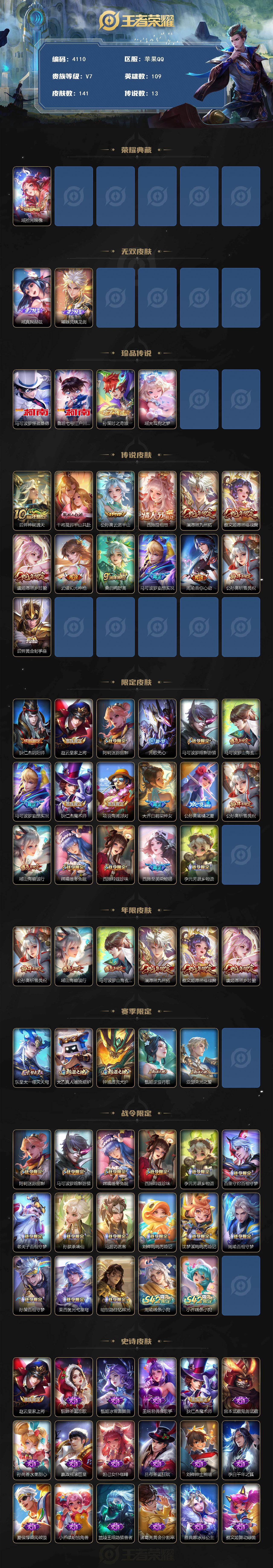 贵族7-贵族积分46969-141皮1典藏13传说2无双4珍品传说-1个英雄全皮 棉花糖聚会天幕 万战西施 还有343点卷 积分1510 苹果手q141区141皮1典藏13传说2无双4珍品传说v7