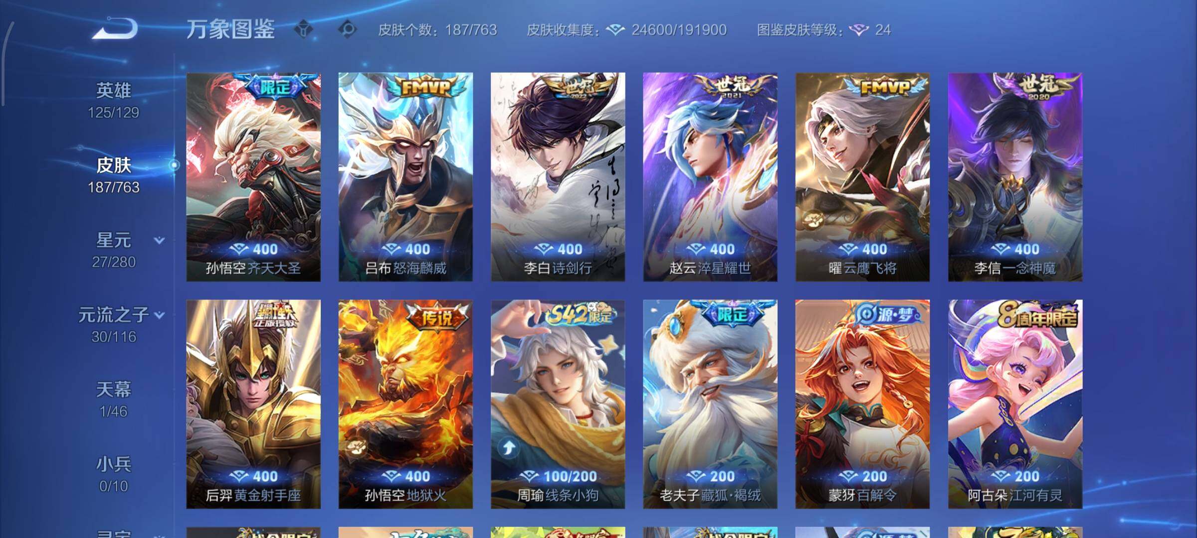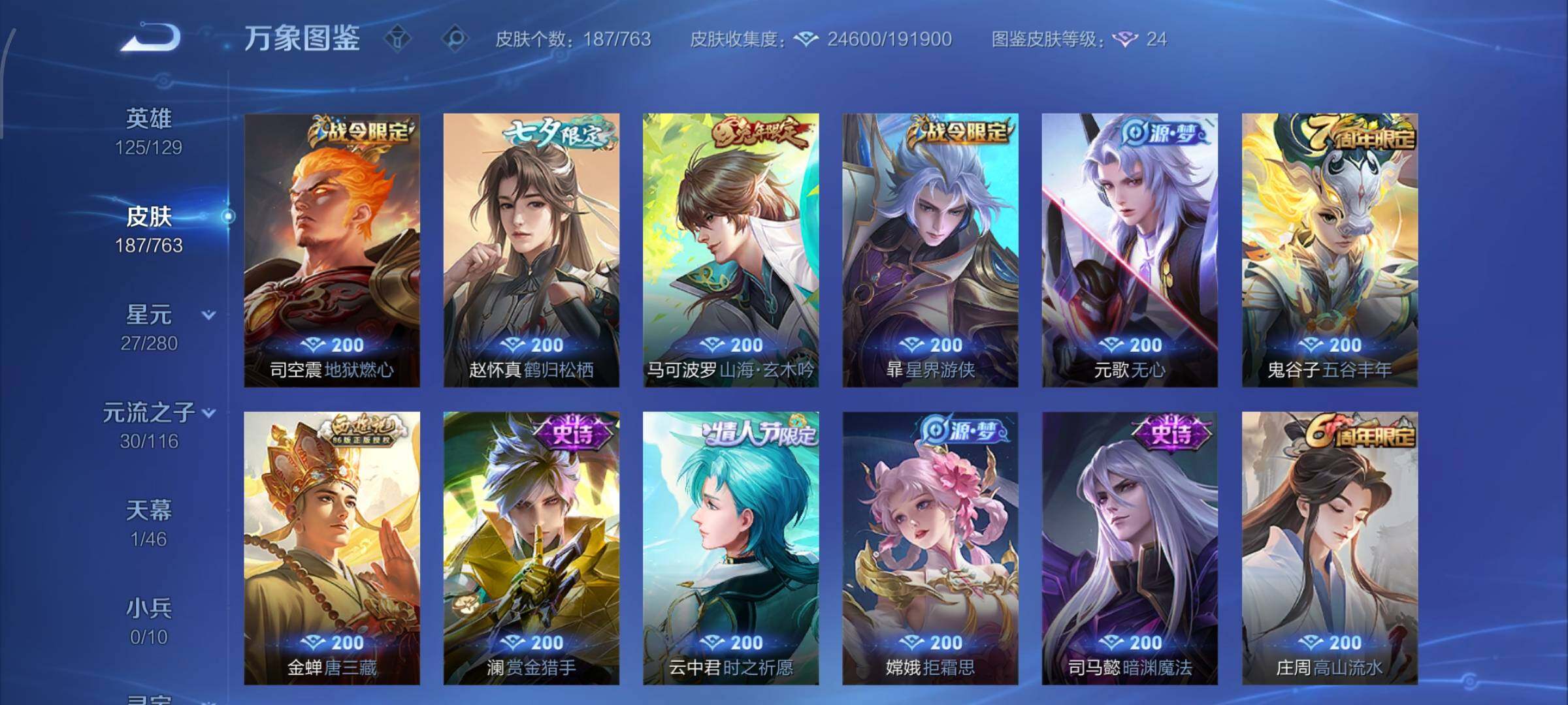 【高性价比·齐天大圣·怒海麟威·诗剑行·淬星耀世·曜云鹰飞将·一念神魔·幽冥火·可二次】yxw15000-安卓q-125英雄-187皮肤-4王者印记-200铭文-贵族积分3w【贵族7】【1星传说·8传说·1天幕·4按键·252幸运值】【因赛季更新游戏段付以上号为准!】 【星元皮肤】:孙悟空幽冥火 【天幕】:共赏芳华天幕 【传说皮肤】:孙悟空齐天大圣,吕布怒海麟威,李白诗剑行,赵云淬星耀世,曜云鹰飞将,李信一念神魔,后羿黄金射手座,孙悟空地狱火 【限定皮肤】:姜子牙天穹之誓,狄仁杰阴阳师,赵云皇家上将,赵云龙胆,孙尚香蔷薇恋人,庄周高山流水,阿轲迷踪丽影,元歌云间偶戏,元歌无心,曹操烛龙,马可波罗山海玄木吟,狄仁杰魔术师,狄仁杰万华元夜,达摩沙漠行僧,项羽海滩派对,老夫子醍醐杖,程咬金演武夺筹,刘邦夺宝奇兵,兰陵王金庭之子,亚瑟潮玩骑士王,孙悟空至尊宝,孙悟空齐天大圣,李元芳云中旅人,钟馗驱傩正仪,鬼谷子原初探秘者,鬼谷子五谷丰年,铠青龙志,苏烈千军破阵,弈星混沌棋,沈梦溪大漠名商,明世隐疑决卦,裴擒虎李小龙,裴擒虎擒涛扼浪,云中君纤云弄巧,云中君时之祈愿,猪八戒猪悟能,嫦娥拒霜思,嫦娥暖冬兔眠,鲁班大师探海日志,桑启海盐诗旅,金蝉唐三藏,暃星界游侠,艾琳流音漫舞,赵怀真鹤归松栖,司空震地狱燃心,阿古朵江河有灵,张良古海寻踪,蒙犽百解令,鬼谷子天穹祈灯,沈梦溪龙舞盛年,刘邦剑破天穹,周瑜熔金海岸 【年限皮肤】:铠青龙志,马可波罗山海玄木吟 【赛季限定】:曹操烛龙,弈星混沌棋,明世隐疑决卦,老夫子醍醐杖,鬼谷子原初探秘者,狄仁杰万华元夜,程咬金演武夺筹,钟馗驱傩正仪,苏烈千军破阵,达摩沙漠行僧,兰陵王金庭之子,沈梦溪大漠名商,李元芳云中旅人,桑启海盐诗旅,裴擒虎擒涛扼浪,鲁班大师探海日志,张良古海寻踪,鬼谷子天穹祈灯,刘邦剑破天穹,姜子牙天穹之誓,东皇太一噬灭天穹 【战令限定】:阿轲迷踪丽影,刘邦夺宝奇兵,元歌云间偶戏,亚瑟潮玩骑士王,暃星界游侠,嫦娥暖冬兔眠,司空震地狱燃心,艾琳流音漫舞,周瑜线条小狗 【史诗皮肤】:阿轲暗夜猫娘,赵云皇家上将,甄姬冰雪圆舞曲,王昭君偶像歌手,狄仁杰魔术师,廉颇地狱岩魂,宫本武藏鬼剑武藏,孙尚香蔷薇恋人,孙尚香水果甜心,妲己魅力维加斯,墨子金属风暴,吕布圣诞狂欢,刘禅绅士熊喵,曹操幽灵船长,李白千年之狐,韩信白龙吟,孙悟空至尊宝,兰陵王暗隐猎兽者,诸葛亮黄金分割率,亚瑟心灵战警,雅典娜冰冠公主,百里守约特工魅影,铠曙光守护者,蔡文姬舞动绿茵,刘禅天才门将,李元芳逐浪之夏,程咬金功夫厨神,白起星夜王子,孙策猫狗日记,大乔猫狗日记,铠青龙志,伽罗箭羽风息,狄仁杰鹰眼统帅,阿轲迷踪丽影,橘右京修罗,马超神威,赵云龙胆,裴擒虎李小龙,云中君纤云弄巧,元歌云间偶戏,猪八戒猪悟能,庄周高山流水,司马懿暗渊魔法,嫦娥拒霜思,云中君时之祈愿,澜赏金猎手,金蝉唐三藏,鬼谷子五谷丰年,元歌无心,暃星界游侠,马可波罗山海玄木吟,赵怀真鹤归松栖,司空震地狱燃心,阿古朵江河有灵,蒙犽百解令,老夫子藏狐褐绒,周瑜线条小狗 【其他皮肤】:项羽海滩派对,韩信教廷特使,阿轲爱心护理,达摩大发明家,芈月红桃皇后,白起白色死神,牛魔西部大镖客,扁鹊化身博士,宫本武藏未来纪元,安琪拉玩偶对对碰,妲己少女阿狸,典韦黄金武士,亚瑟死亡骑士,花木兰兔女郎,张飞五福同心,甄姬花好人间,刘备万事如意,宫本武藏万象初新,狄仁杰阴阳师,刘备纽约教父,关羽龙腾万里,钟无艳海滩丽影,曹操烛龙,狂铁命运角斗场,老夫子功夫老勺,孙尚香沉稳之力,鬼谷子幻乐之宴,苏烈坚韧之力,大乔守护之力,项羽科学大爆炸,明世隐虹云星官,小乔丁香结,吕布野性能量,沈梦溪鲨炮海盗猫,姜子牙炽热元素使,弈星混沌棋,哪吒次元突破,明世隐疑决卦,刘邦夺宝奇兵,盾山圆桌骑士,老夫子醍醐杖,狂铁特工战影,鬼谷子原初探秘者,狄仁杰万华元夜,亚瑟潮玩骑士王,刘禅秘密基地,露娜瓷语鉴心,程咬金演武夺筹,张良缤纷绘卷,钟馗驱傩正仪,鲁班大师乓乓大师,苏烈千军破阵,妲己紫罗兰之誓,达摩沙漠行僧,程咬金无双福将,兰陵王金庭之子,沈梦溪大漠名商,蒙恬蔚蓝守将,李元芳云中旅人,桑启海盐诗旅,嫦娥暖冬兔眠,海月幻泉雾影,猪八戒潮玩探月行,白起乐园追猎者,赵怀真太极少年,裴擒虎擒涛扼浪,太乙真人劲辣红锅,莱西奥西部游侠,鲁班大师探海日志,李元芳妄想特派,艾琳流音漫舞,张良古海寻踪,曹操决胜大满贯,后羿完美运算,鬼谷子天穹祈灯,廉颇功夫炙烤,沈梦溪龙舞盛年,刘邦剑破天穹,姜子牙天穹之誓,周瑜熔金海岸,东皇太一噬灭天穹,吕布逐霄战戟,苍苍林狼骑,姜子牙星梦巡礼,鲁班七号木偶奇遇记,高渐离金属狂潮,貂蝉异域舞娘,花木兰剑舞者,老夫子潮流仙人,狄仁杰锦衣卫,孙悟空西部大镖客,刘禅英喵野望,李白范海辛,李元芳特种部队,刘邦圣殿之光,关羽天启骑士,夏侯惇战争骑士,马可波罗激情绿茵,杨戬埃及法老,诸葛亮星航指挥官,黄忠芝加哥教父,铠龙域领主,百里守约绝影神呛,百里玄策威尼斯狂欢,梦奇美梦成真,明世隐占星师,杨玉环霓裳曲,裴擒虎街头旋风,弈星踏雪寻梅,孙策海之征途,司马懿魇语军师,伽罗花见巫女,李信灼热之刃,盘古创世神祝,曜归虚梦演,马超幸存者,蒙恬秩序猎龙将,澜孤猎,司空震启蛰,云缨赤焰之缨,暃碧珀绯影,桑启画中游 【内测皮肤】:孙尚香蔷薇恋人,狂铁