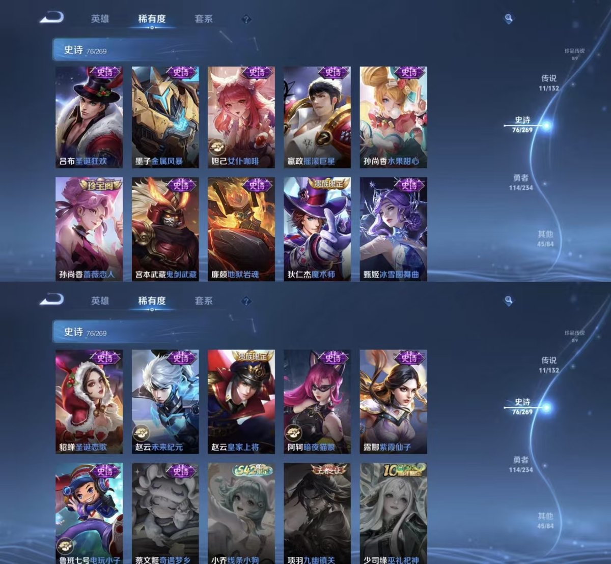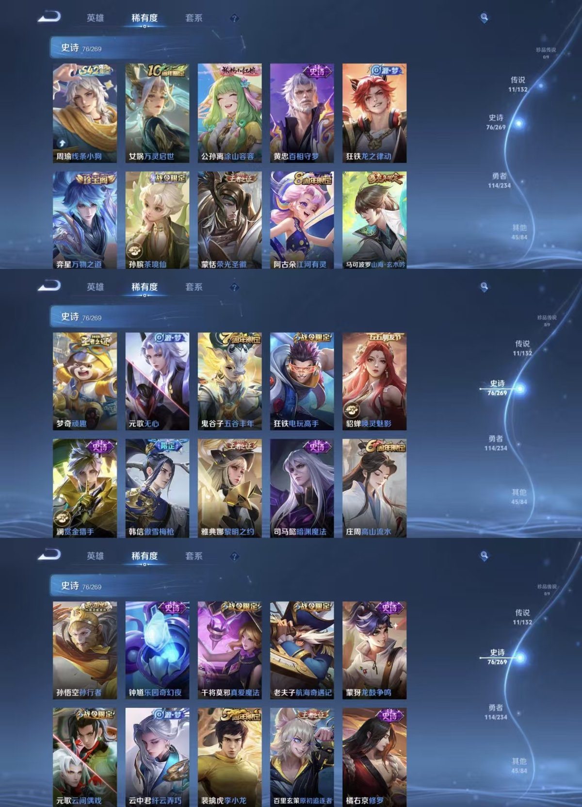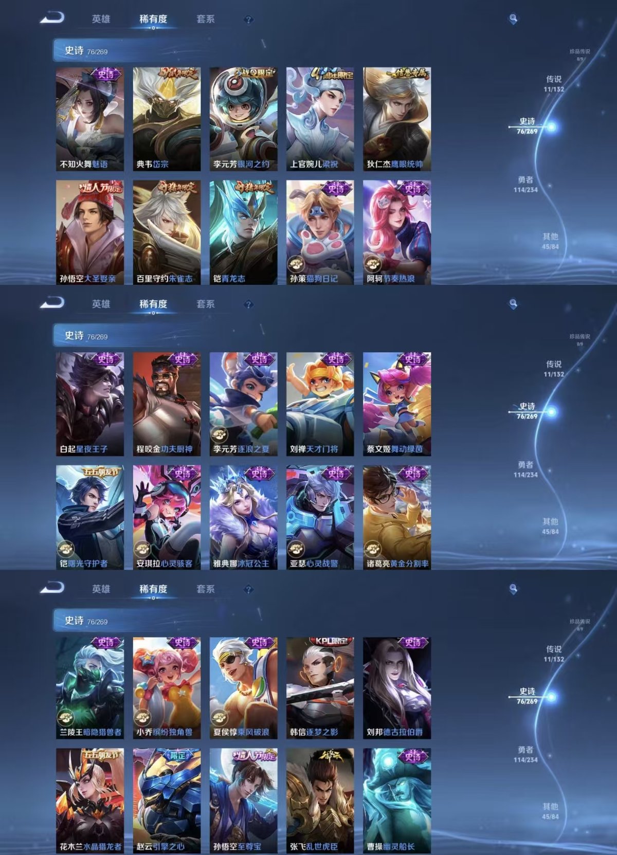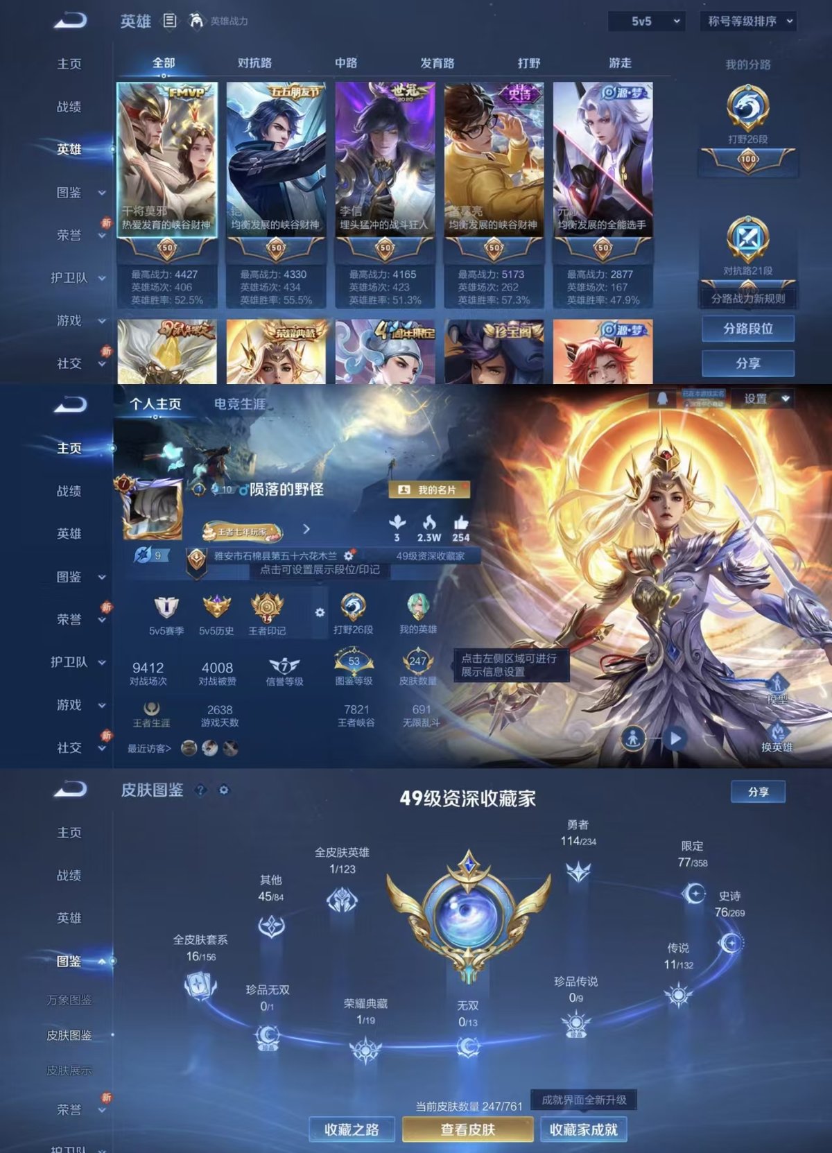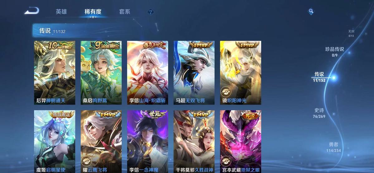 127英雄-247皮肤-实名: 可修改 贵族等级: v8 英雄数: 127 皮肤数: 247 荣耀水晶: 九霄神辉 传说皮: 云鹰飞将久胜战神炽阳神光一念神魔地狱火地狱之眼无双飞将山海·炽霜斩神树通天 限定皮: 李小龙梁祝引擎之心岱宗逐梦之影青龙志朱雀志至尊宝大圣娶亲高山流水孙行者傲雪梅呛五谷丰年山海·玄木吟鸣野蒿逐霄战戟