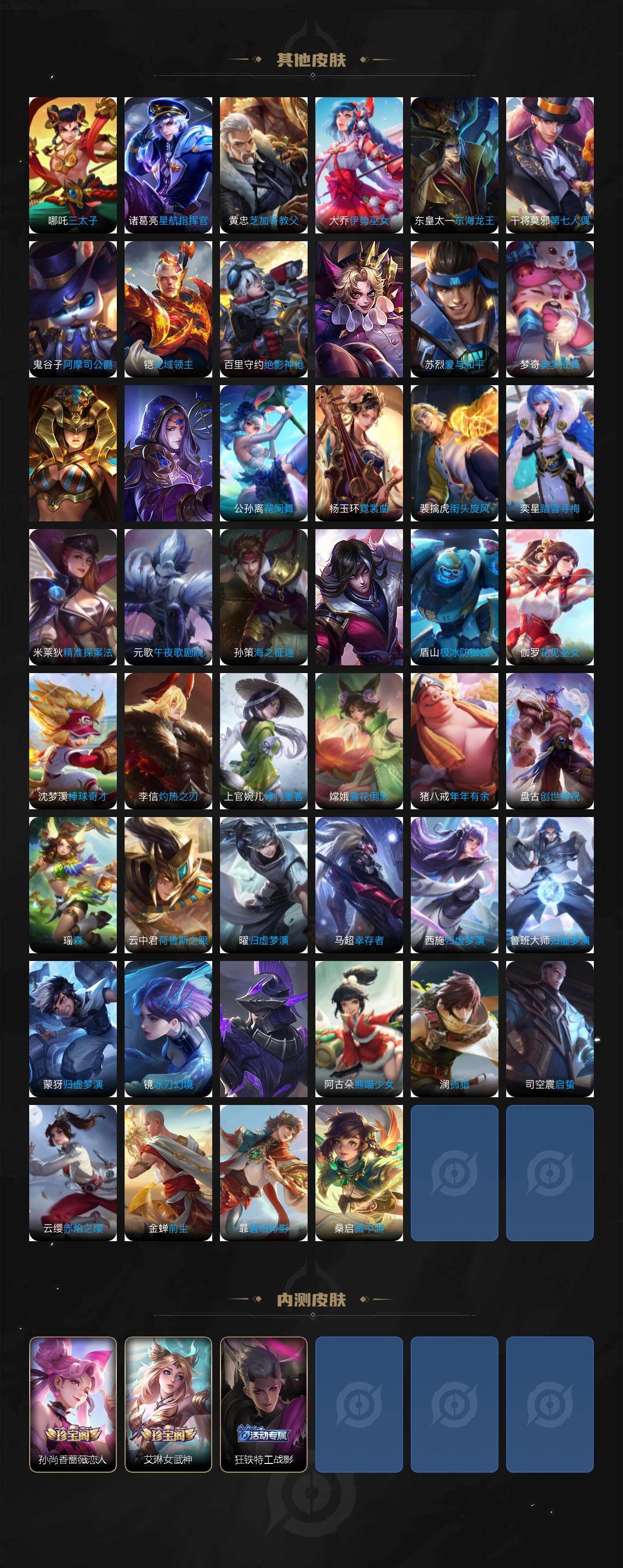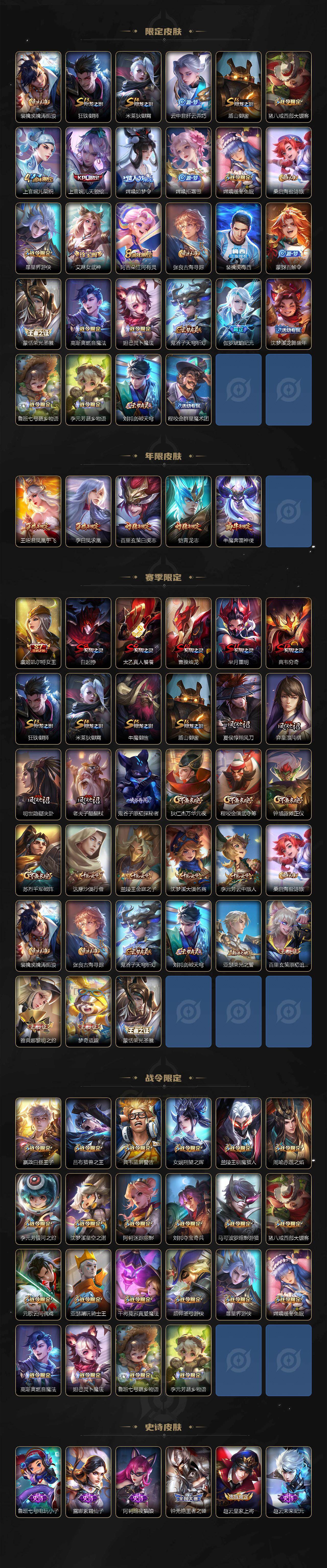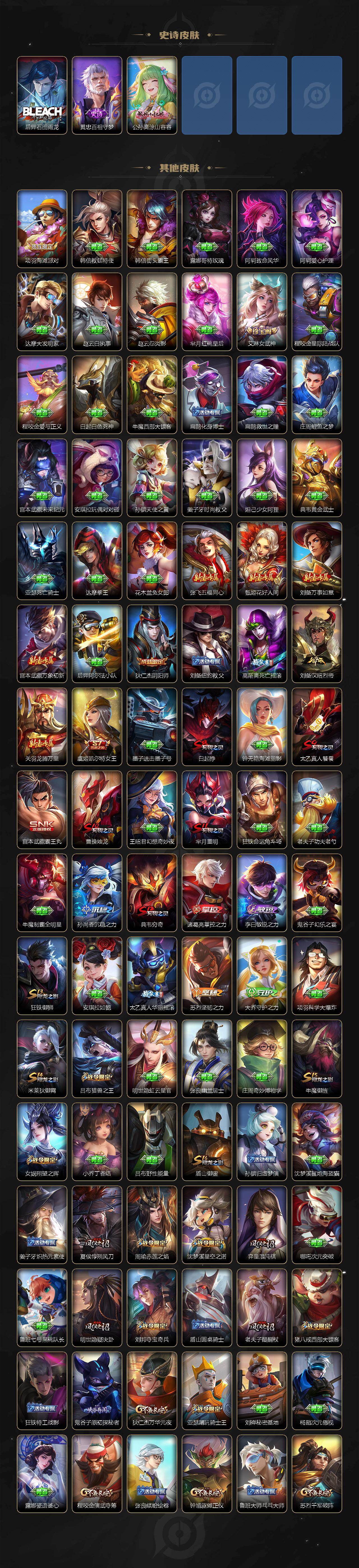 128英雄-370皮肤-贵族9/皮肤370/典藏2/传说14/史诗110/英雄128/刘邦全皮/空空儿全皮/武则天/天鹅之梦 小乔/幻阙歌 貂蝉/神树通天 后羿/默契交锋 兰陵王/启明星使 虞姬/零号·赤焰 孙悟空/一念神魔 李信/云霓雀翎 虞姬/白虎志 百里玄策/冠军飞将 花木兰/武陵仙君 诸葛亮/仲夏夜之梦 貂蝉/凤求凰 李白/末日机甲 孙尚香/海洋之心 武则天/超时空战士 狄仁杰/狰 白起/阴阳师 狄仁杰/凯尔