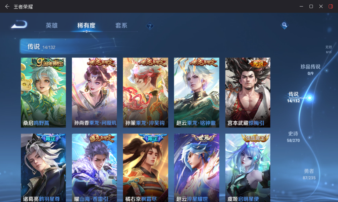 【王者荣耀】【lywz30228】珍品无双0 典藏6 无双0 珍品传说0 传说14 史诗57 英雄126 皮肤190 贵族8级 荣耀典藏:无限飓风号|银白咏叹调|幻阙歌|九霄神辉|鸣剑·曳影|弑呛猎影__传说皮肤:鸣野蒿|枫霜尽|启明星使|云霓雀翎|黄金狮子座|黄金白羊座|淬星耀世|鹤羽星尊|白虎志|惊梅引|乘龙·淬吴钩|乘龙·铭钟鼎|乘龙·问璇玑|山海·苍雷引__稀有限定:蔷薇恋人|神威|孙行者|傲雪梅呛|李小龙|梁祝|拒霜思|百解令|冰霜神祇|大漠名商|地狱燃心|高山流水|古海寻踪|海滩派对|海盐诗旅|皇家上将|混沌棋|剑破天穹|江河有灵|金庭之子|魔术师|奇幻香踪|千军破阵|擒涛扼浪|驱傩正仪|燃音魔法|荣光圣徽|沙漠行僧|探海日志|饕餮|醍醐杖|天穹祈灯|玩趣恶龙|无心|五谷丰年|星界游侠|演武夺筹|疑决卦|阴阳师|游园惊梦|暗夜猫娘|暗隐猎兽者|缤纷独角兽|冰冠公主|冰雪圆舞曲|苍穹之光|乘风破浪|乘龙·聚宝船|乘龙·忆丹青|德古拉伯爵|电玩小子|功夫厨神|箭羽风息|节奏热浪|金属风暴|龙骑士|吕布-末日机甲|魅力维加斯|魅语|女仆咖啡|偶像歌手|绅士熊喵|圣诞狂欢|水果甜心|水晶猎龙者|天才门将|赵云-未来纪元|星夜王子|摇滚巨星|鹰眼统帅|幽灵船长|逐浪之夏|紫霞仙子|噬灭天穹|心灵战警|特工魅影|心灵骇客|狰|原初探秘者|云中旅人|玲珑珍味|流音漫舞|暖冬·兔眠|灵卜魔法|周瑜-线条小狗__优质皮肤:尼罗河女神|埃及法老|孤猎|午夜歌剧院|激情绿茵|秩序猎龙将|超能战警|维京掠夺者|海军大将|踏雪寻梅|启蛰|第七人偶|潮流仙人|芝加哥教父|荷鲁斯之眼|幸存者|特种部队|精灵王|龙域领主|花见巫女|灼热之刃|精准探案法|帝国元帅|霓裳曲|修竹墨客|破阵·退雄兵|聚星闪耀|潮玩探月行|瓷语鉴心|秘密基地|次元突破|野性能量|丁香结|虹云星官|守护之力|功夫老勺|命运角斗场|海滩丽影|阿尔法小队|兔女郎|死亡骑士|黄金武士|少女阿狸|宫本武藏-未来纪元|红桃皇后|街头霸王|教廷特使|漠中幻影|时空谍影|破局者|零食大作战|西部游侠|太极少年|牛运亨通|潮玩造梦师|紫罗兰之誓|铁甲之心|拳王|程咬金-星际陆战队|白执事|致命风华|哥特玫瑰|缤纷绘卷|掌控之力|雾都夜雨|龙腾万里|龙舞盛年|乓乓大师|五福同心|盾山-圆桌骑士|万事如意|沉稳之力|程咬金-群星魔术团|完美运算|化身博士|花好人间|春野之旅|无尽旅途|万象初新|潮玩骑兵|蔚蓝守将|劲辣红锅|特工战影|炽热元素使|溯影追猎__贵族等级:无贵族等级__王者段位:永恒钻石精品捡漏典藏v8号【背包一颗荣耀水晶】【荣耀典藏】6 银白咏叹调,鸣剑·曳影,弑呛猎影,幻阙歌,九霄神辉,无限飓风号【传说皮肤】14 乘龙·淬吴钩,乘龙·铭钟鼎,乘龙·问璇玑,黄金狮子座,白虎志,山海·苍雷引,惊梅引,鹤羽星尊,淬星耀世,鸣野蒿,云霓雀翎,启明星使,枫霜尽,黄金白羊座等热门限定皮肤