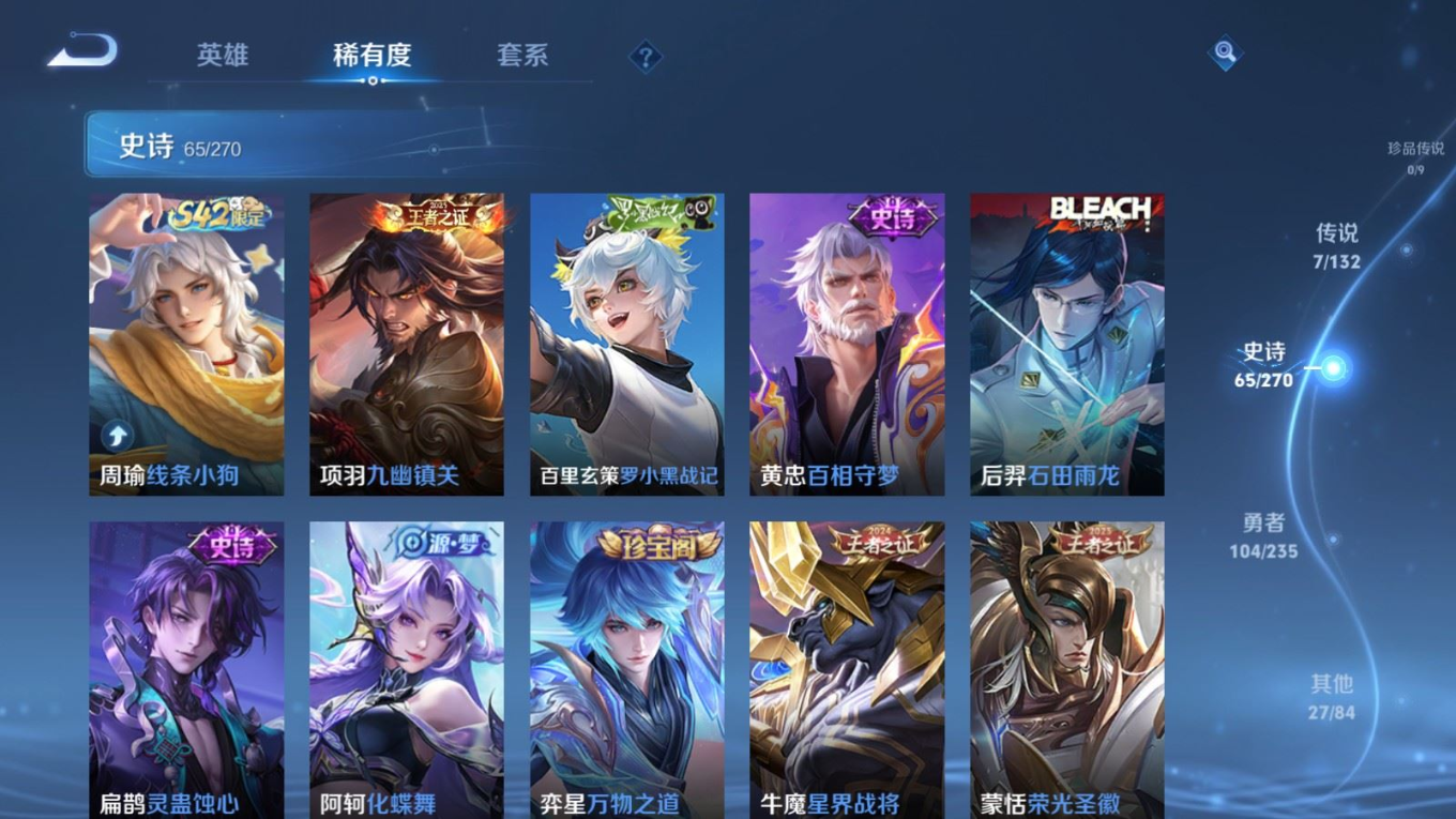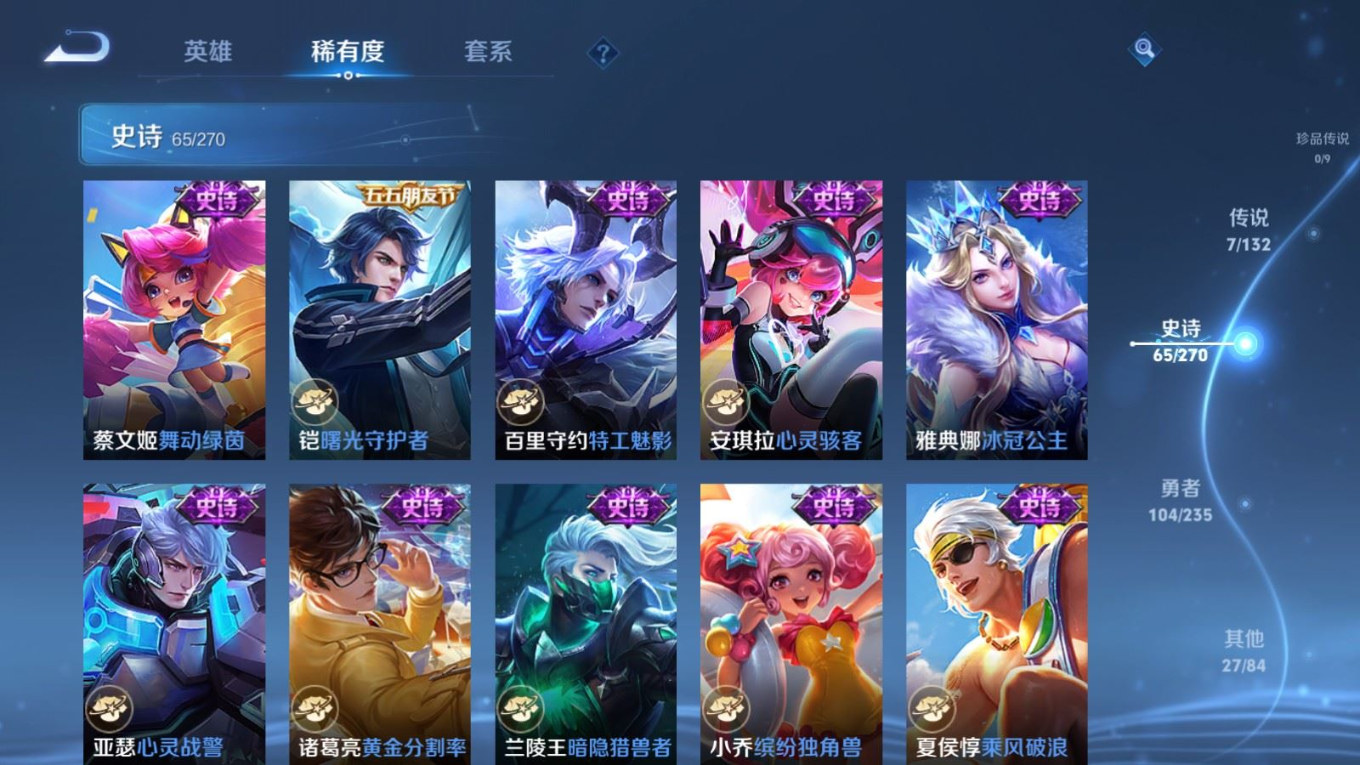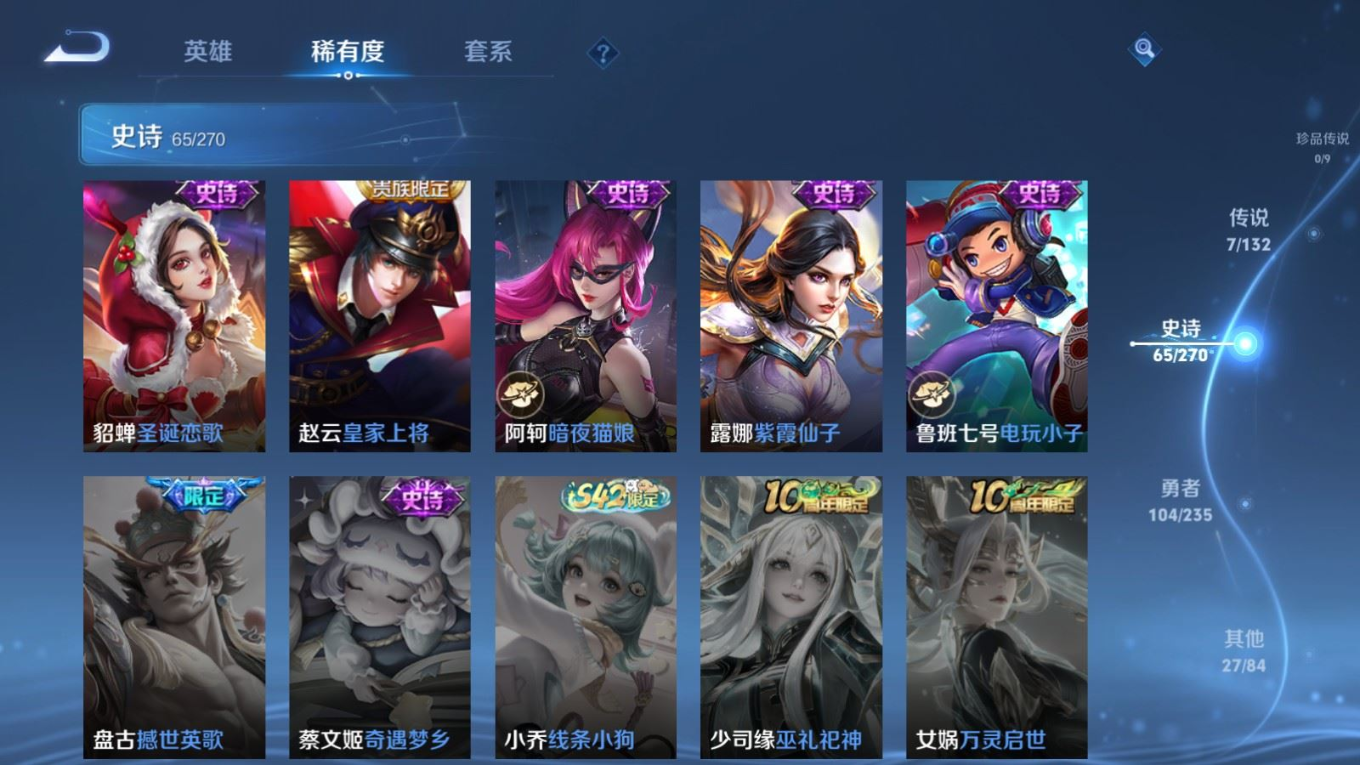 128英雄-204皮肤v7-1典藏7传说 2星传说 幽冥火 未来机甲【全皮英雄】 金蝉全皮 【典藏】 全息碎影 【传说】 鸣野蒿 齐天大圣 绛天战甲 诗剑行 地狱火 久胜战神 末日机甲女 【热门】至尊宝 白晶晶 热情桑巴 唐三藏 孙行者 猪悟能 冰冠公主 原初追逐者 梁祝 暗夜猫娘 电玩小子 黄