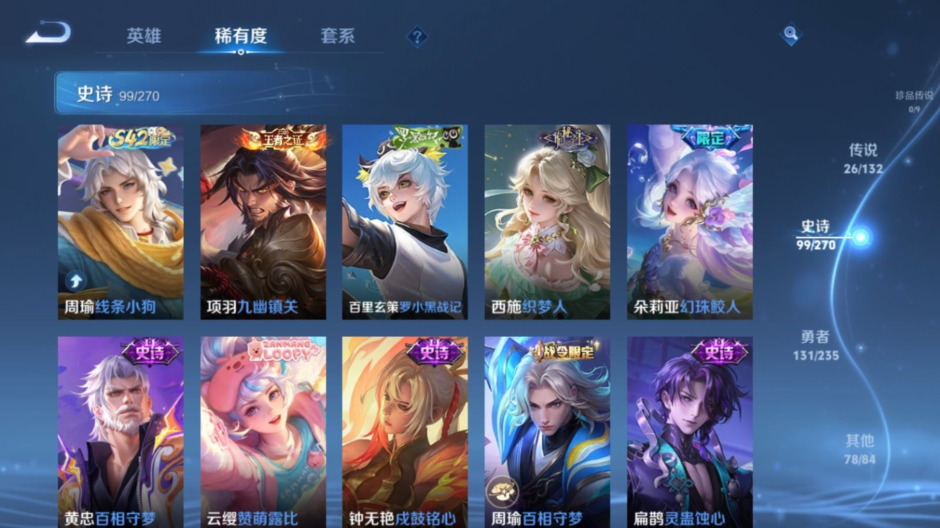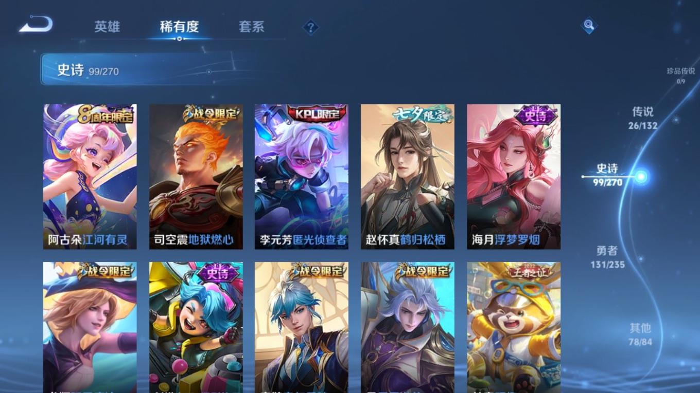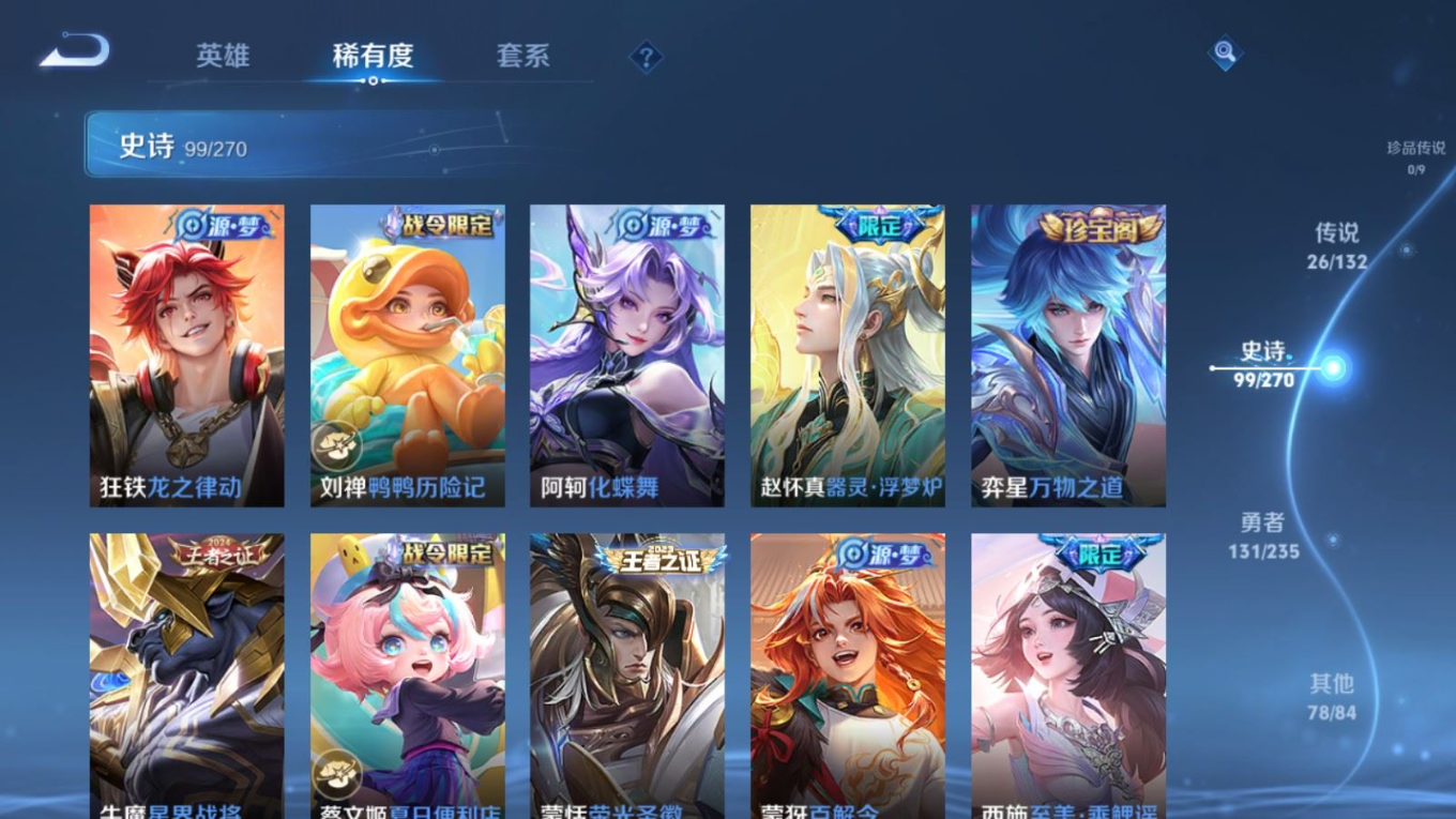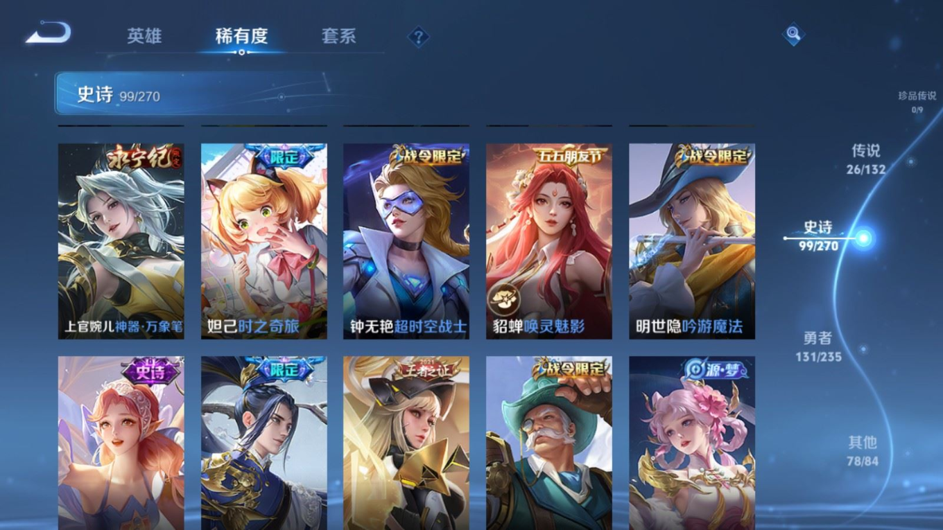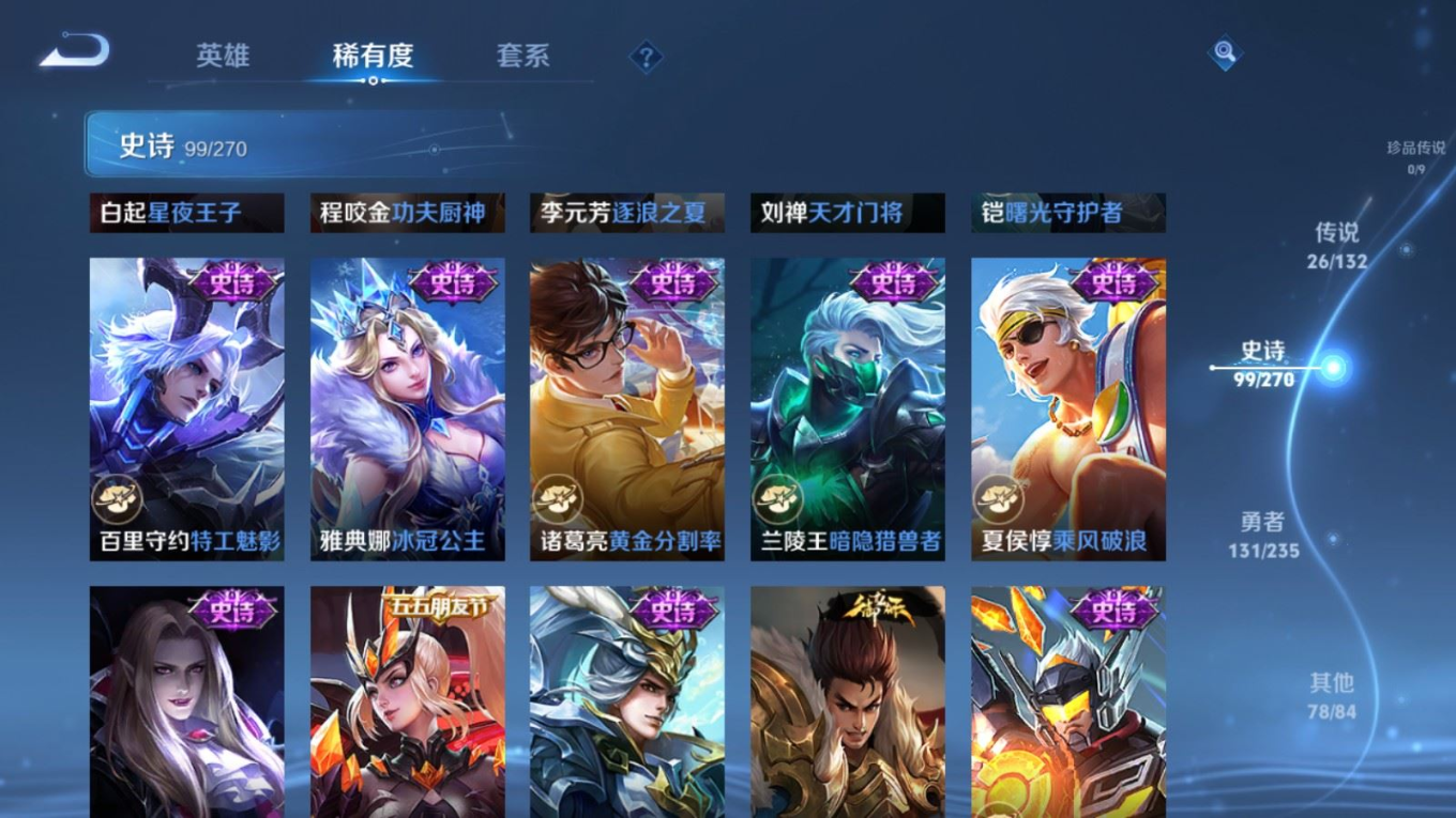128英雄-336皮肤v9-1典藏1无双26传说 2星传说 幽冥火 未来机甲【全皮英雄】 云缨全皮 李信全皮 达摩全皮 影全皮 【典藏】 弑呛猎影 【无双】 时之魔女 【传说】 惊梅引 九山相柳 幻光神呛 愿照九州拓 启明星使 山海苍雷引 山海炽霜斩 李 齐天大圣 鹤归松栖女 音你心动男 无