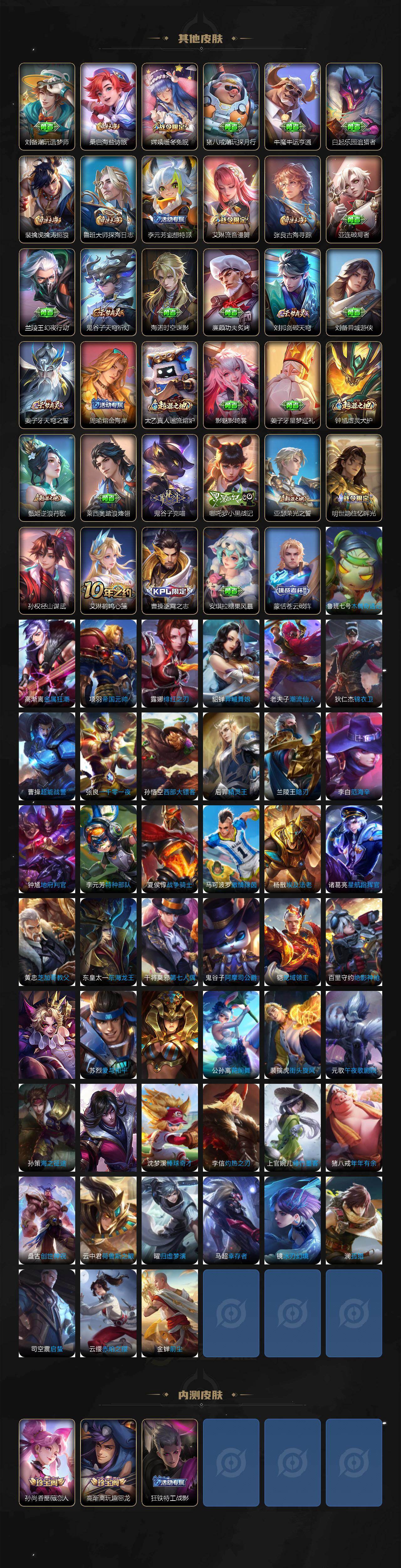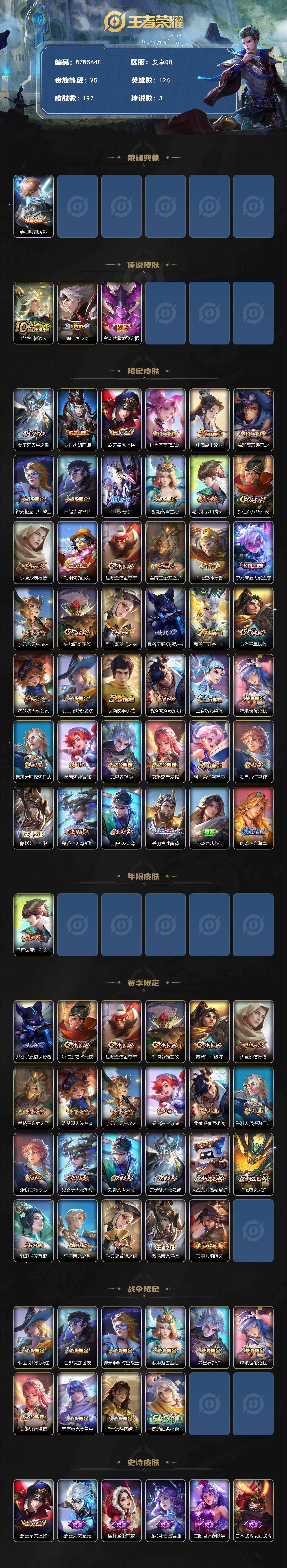 【wzn5648】贵族5/皮肤192/典藏1/传说3/史诗46/英雄126/孙权全皮/影全皮/李白鸣剑曳影/后羿神树通天/曜云鹰飞将/宫本武藏地狱之眼/姜子牙天穹之誓/狄仁杰阴阳师/赵云皇家上将/孙尚香蔷薇恋人/庄周高山流水/高渐离玩趣恶龙/钟无艳超时空战士/白起夜都怪侠/元歌无心/甄姬落雪兰心/马可波罗山海玄木吟/狄仁杰万华元夜/达摩沙漠行僧/项羽海滩派对/程咬金演武夺筹/兰陵王金庭之子/孙悟空孙行者/李元芳匿光侦查者/李元芳云中旅人/钟馗驱傩正仪/雅典娜黎明之约/鬼谷子原初探秘者/鬼谷子五谷丰年/苏烈千军破阵/沈梦溪大漠名商/明世隐吟游魔法/裴擒虎李小龙/裴擒虎擒涛扼浪/上官婉儿梁祝/嫦娥暖冬兔眠/鲁班大师探海日志/桑启海盐诗旅/暃星界游侠/艾琳流音漫舞/阿古朵江河有灵/张良古海寻踪/蒙恬荣光圣徽/鬼谷子天穹祈灯/刘邦剑破天穹/关羽决胜骁骑/刘备异域游侠/周瑜熔金海岸/太乙真人谧流熔炉/钟馗虚灵犬护/甄姬逆浪荇歌/亚瑟荣光之誓/项羽九幽镇关/莱西奥光弋星穹/明世隐往忆晖光/周瑜线条小狗/赵云未来纪元/貂蝉圣诞恋歌/甄姬冰雪圆舞曲/王昭君偶像歌手/宫本武藏鬼剑武藏/孙尚香水果甜心/墨子金属风暴/曹操幽灵船长/李白千年之狐/吕布末日机甲/刘邦德古拉伯爵/夏侯惇乘风破浪/兰陵王暗隐猎兽者/亚瑟心灵战警/铠曙光守护者/李元芳逐浪之夏/程咬金功夫厨神/白起星夜王子/孙策猫狗日记/狄仁杰鹰眼统帅/孙尚香时之恋人/百里玄策热力回旋/杨戬天秀启明/黄忠百相守梦/公孙离涂山容容/百里玄策罗小黑战记/女娲万灵启世/韩信教廷特使/韩信街头霸王/露娜哥特玫瑰/赵云白执事/赵云忍炎影/程咬金星际陆战队/白起白色死神/扁鹊化身博士/扁鹊救世之瞳/宫本武藏未来纪元/妲己少女阿狸/典韦黄金武士/亚瑟死亡骑士/达摩拳王/花木兰兔女郎/宫本武藏万象初新/后羿阿尔法小队/刘备纽约教父/刘备汉昭烈帝/关羽龙腾万里/墨子进击墨子号/钟无艳海滩丽影/王昭君幻想奇妙夜/狂铁命运角斗场/老夫子功夫老勺/孙尚香沉稳之力/诸葛亮掌控之力/李白敏锐之力/鬼谷子幻乐之宴/明世隐虹云星官/庄周奇妙博物学/吕布野性能量/孙膑归虚梦演/沈梦溪鲨炮海盗猫/哪吒次元突破/盾山圆桌骑士/狂铁特工战影/刘禅秘密基地/杨戬次元傲视/张良缤纷绘卷/鲁班大师乓乓大师/典韦铁甲之心/程咬金无双福将/刘邦虎啸剑宗/刘禅唤灵魔甲/蒙恬蔚蓝守将/刘备潮玩造梦师/猪八戒潮玩探月行/牛魔牛运亨通/白起乐园追猎者/李元芳妄想特派/亚连破局者/兰陵王幻夜行动/海诺时空谍影/廉颇功夫炙烤/影魅影绮裳/姜子牙星梦巡礼/莱西奥踏浪烽翎/鬼谷子克喵/哪吒罗小黑战记/孙权径山谋武/艾琳鹤鸣心笺/曹操逐霄之志/安琪拉糖果风暴/蒙恬苍云破阵/鲁班七号木偶奇遇记/高渐离金属狂潮/项羽帝国元帅/露娜绯红之刃/貂蝉异域舞娘/老夫子潮流仙人/狄仁杰锦衣卫/曹操超能战警/张良一千零一夜/孙悟空西部大镖客/后羿精灵王/兰陵王隐刃/李白范海辛/钟馗地府判官/李元芳特种部队/夏侯惇战争骑士/马可波罗激情绿茵/杨戬埃及法老/诸葛亮星航指挥官/黄忠芝加哥教父/东皇太一东海龙王/干将莫邪第七人偶/鬼谷子阿摩司公爵/铠龙域领主/百里守约绝影神呛/百里玄策威尼斯狂欢/苏烈爱与和平/女娲尼罗河女神/公孙离花间舞/裴擒虎街头旋风/元歌午夜歌剧院/孙策海之征途/司马懿魇语军师/沈梦溪棒球奇才/李信灼热之刃/上官婉儿修竹墨客/猪八戒年年有余/盘古创世神祝/云中君荷鲁斯之眼/曜归虚梦演/马超幸存者/镜冰刃幻境/澜孤猎/司空震启蛰/云缨赤焰之缨/金蝉前尘