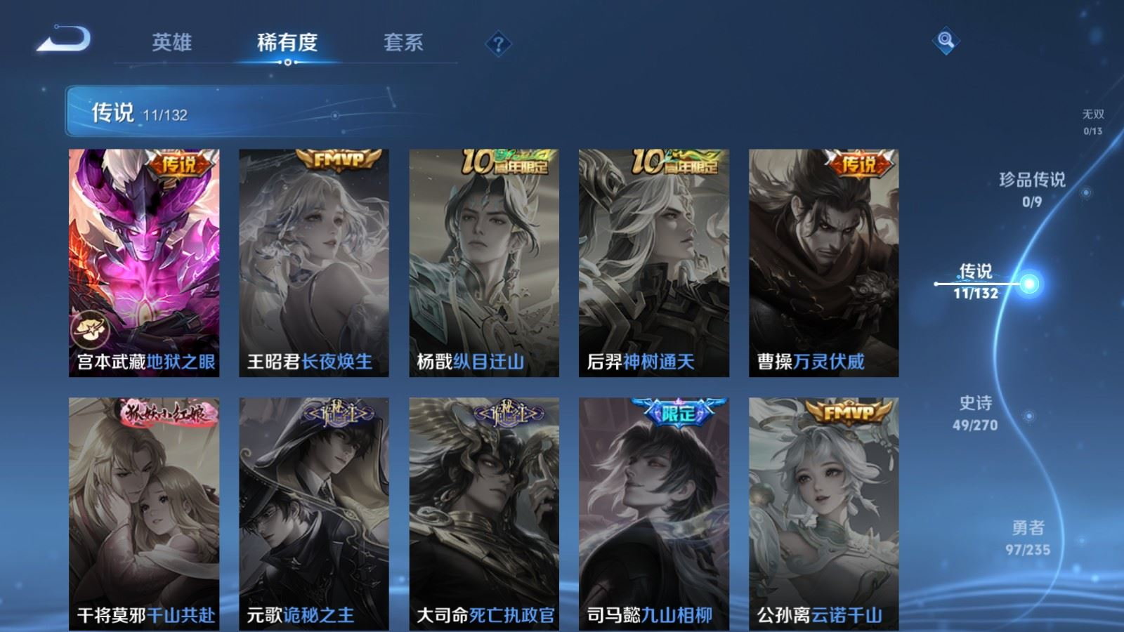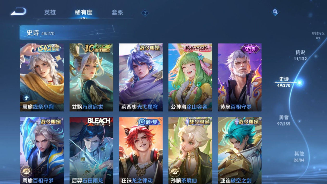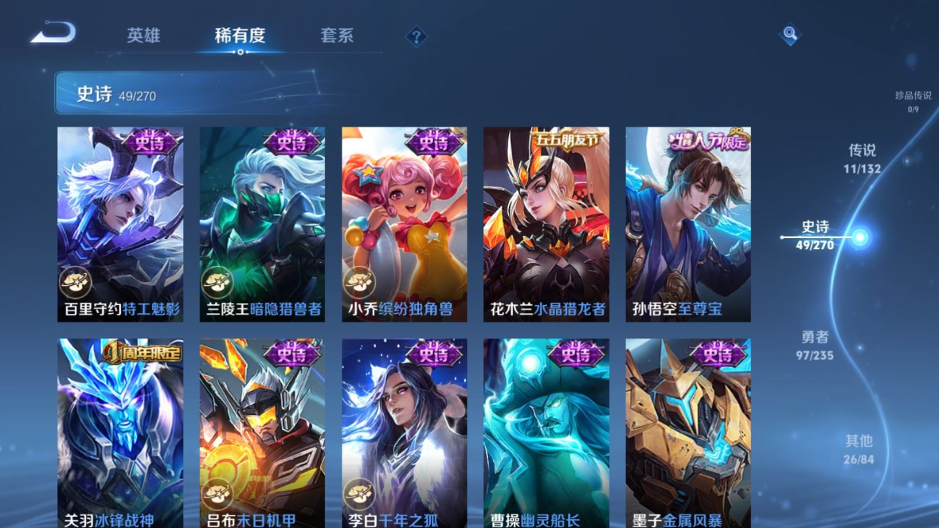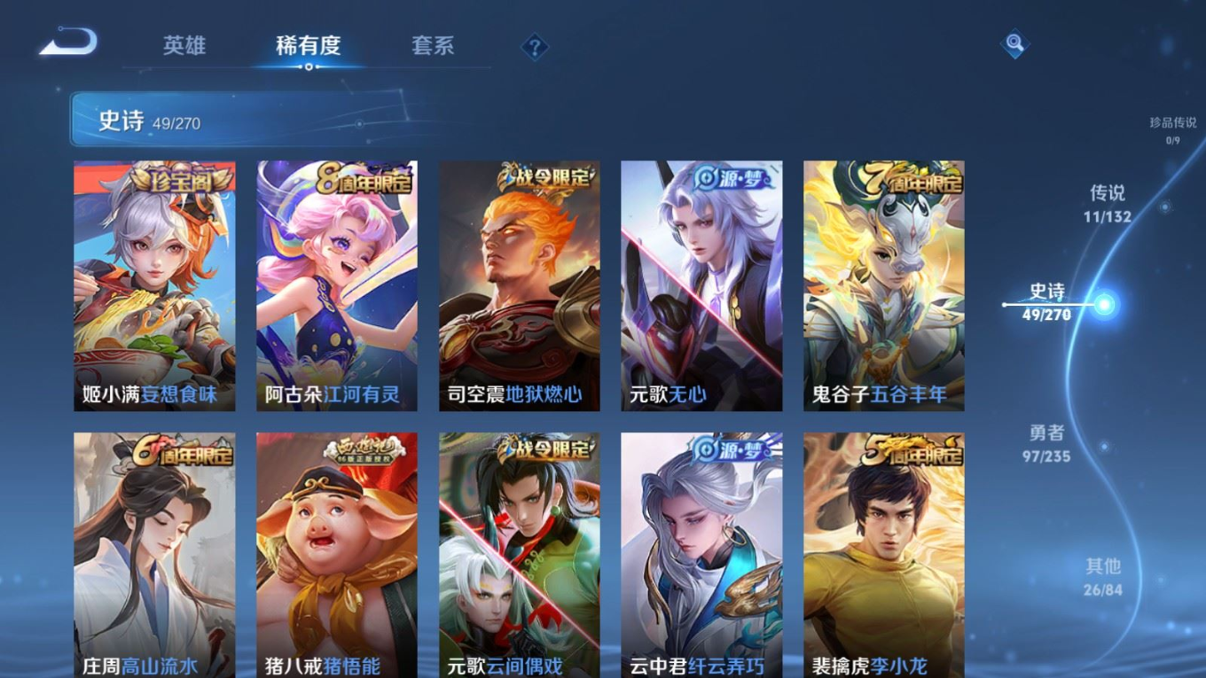 126英雄-183皮肤-126英雄-183皮肤v6-11传说 1星传说 幽冥之眼【全皮英雄】 司空震全皮 猪八戒全皮 【传说】 愿照山河定 鸣野蒿 浮生妄 永曜之星 绛天战甲 乞巧织情 久胜战神 一念神魔 黄金狮子座 黄金射手座 地狱之眼 【热门】万灵启世 涂山容容 神威 至尊宝 冰封战神 逐霄之志 猪悟能 云间偶戏