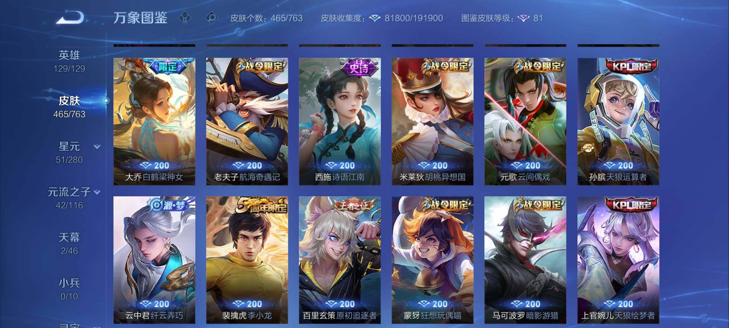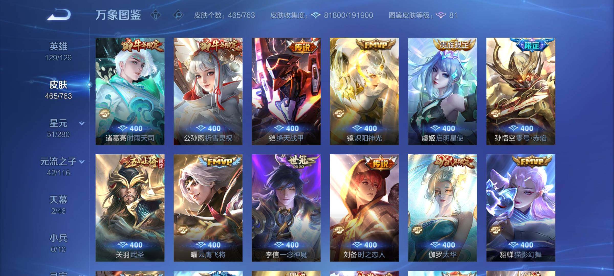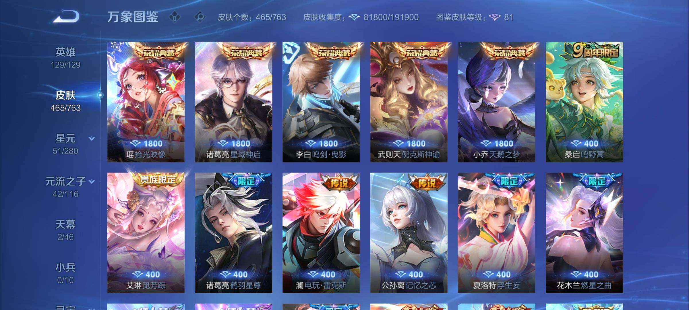 【精品v10·6典藏·拾光映像·倪克斯神谕·天鹅之梦·鸣剑曳影·玉鸾吟·寅虎焰心·虎年全限定·武圣·祈雪灵祝·太华·时雨天司·白虎志·补天·燃星之曲·狸尾假日天幕·可二次】w15073-安卓q-129英雄-465皮肤-17王者印记-300铭文-贵族积分30w【贵族10】【6典藏·6星传说·59传说·2天幕·17按键·14个性戳戳】【因赛季更新游戏段付以上号为准!】 【英雄全皮】:刘禅全皮,