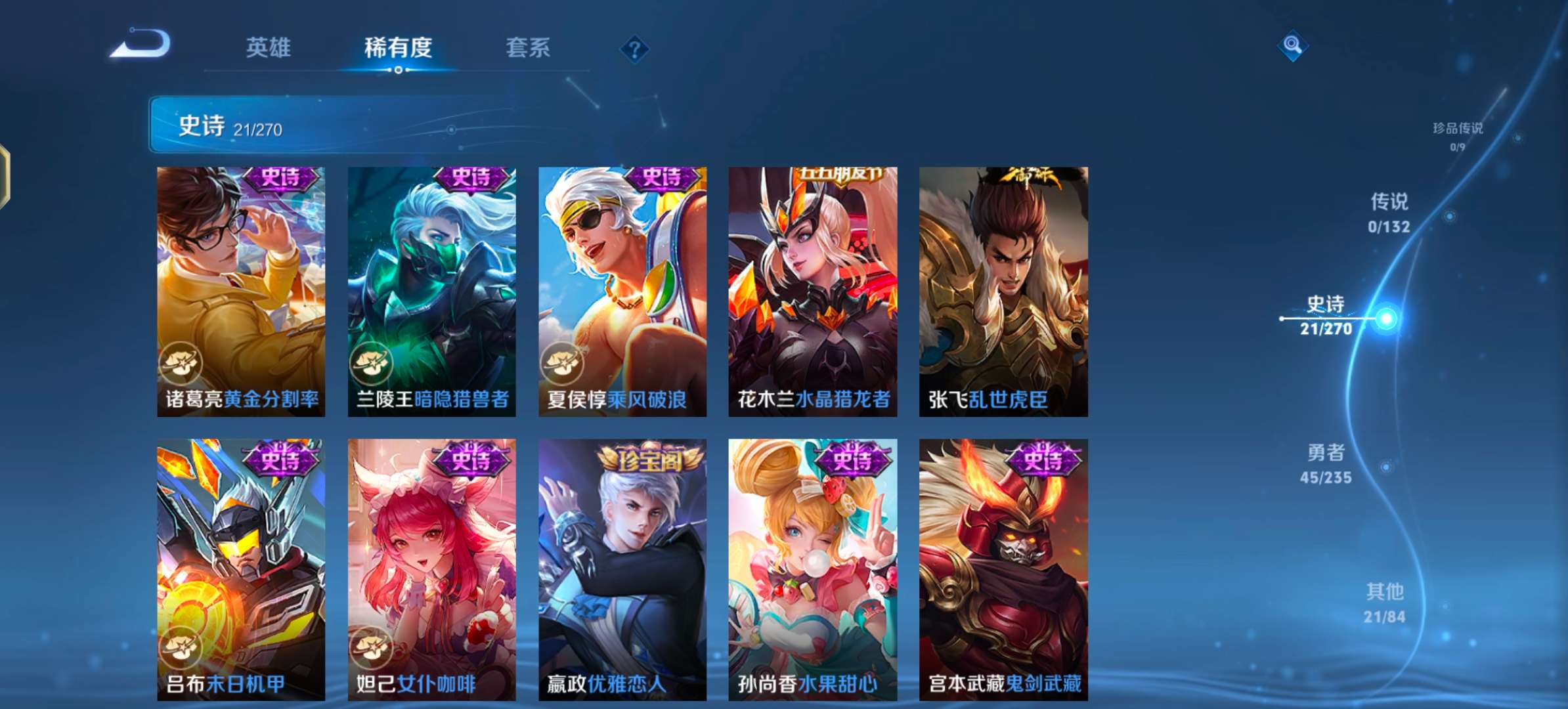 jj4086:安卓q-v3-尊贵铂金iii-99英雄-87皮肤-21史诗 【稀有英雄】 嬴政 不知火舞 橘右京 夏洛特 娜可露露 韩信 艾琳 赵云 【限定皮肤】 诗语江南 【史诗皮肤】 末日机甲 心灵战警 诗语江南 鬼剑武藏 星夜王子 顽趣 黄金分割率 荣光圣徽 女仆咖啡 舞动绿茵 鹰眼统帅 特工魅影 优雅恋人 圣诞恋歌 水晶猎龙者 星界战将 心灵骇客 乱世虎臣 水果甜心 乘风破浪 暗隐猎兽者