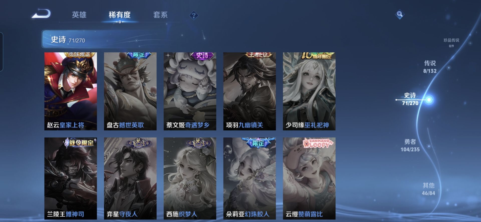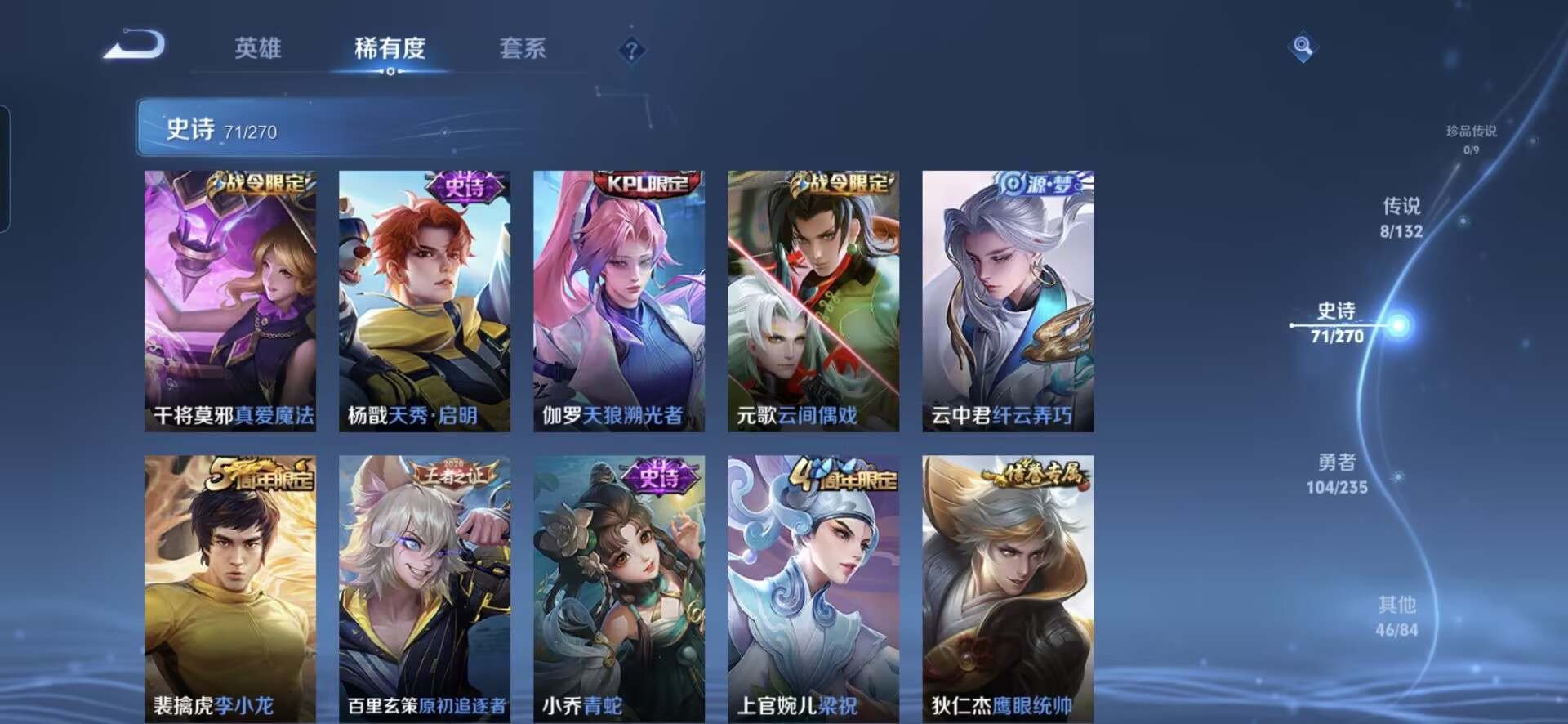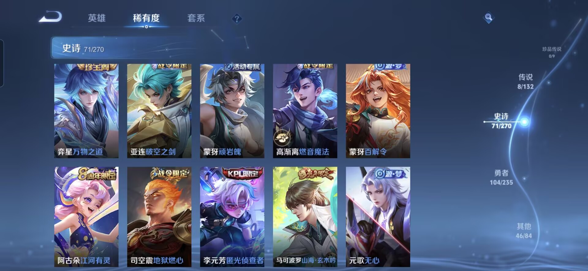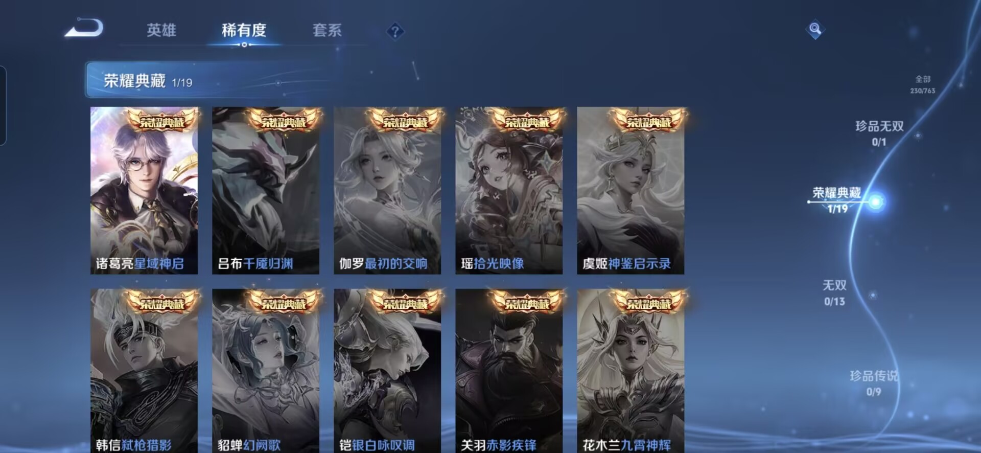 【230皮肤v7 传说8 典藏1 星传说1 幽冥之眼】安卓q-230皮肤-127英雄 【典藏皮肤】 星域神启 【传说皮肤】 鸣野蒿 九山相柳 愿照·九州拓 无双飞将 地狱之眼 炽阳神光 一念神魔 云鹰飞将 【史诗皮肤】 破空之剑 天狼溯光者 布丁狗之约 谧流熔炉 涂山容容 孙行者 龙之律动 地狱燃心 线条小狗 山海·玄木吟 百相守梦 踏浪烽翎 聚星闪耀 江河有灵 幻夜行动 决