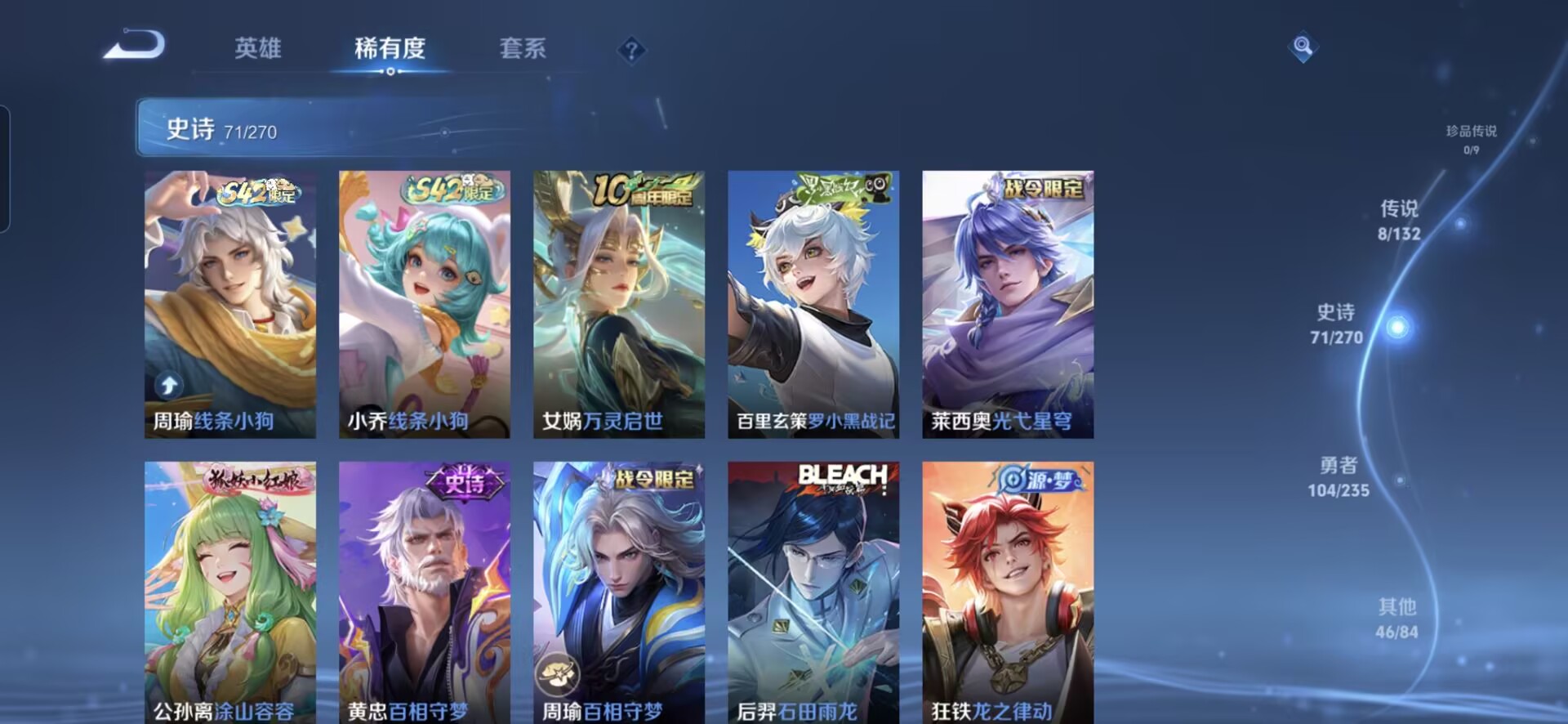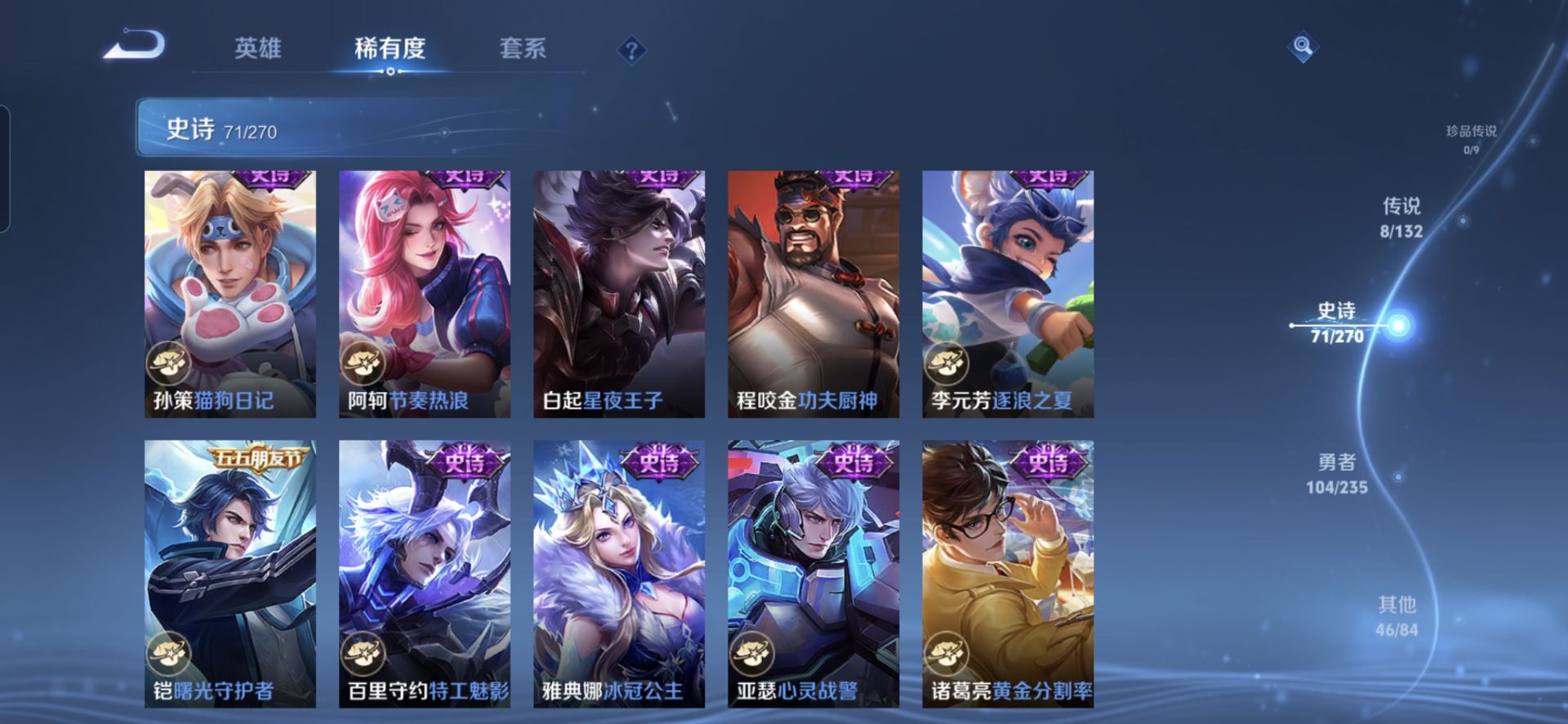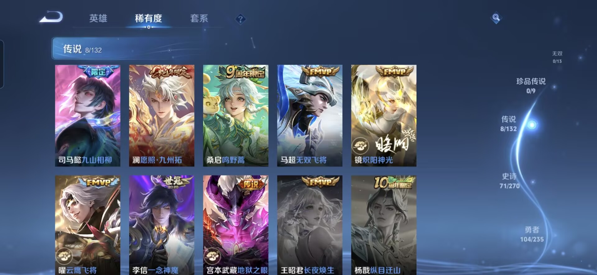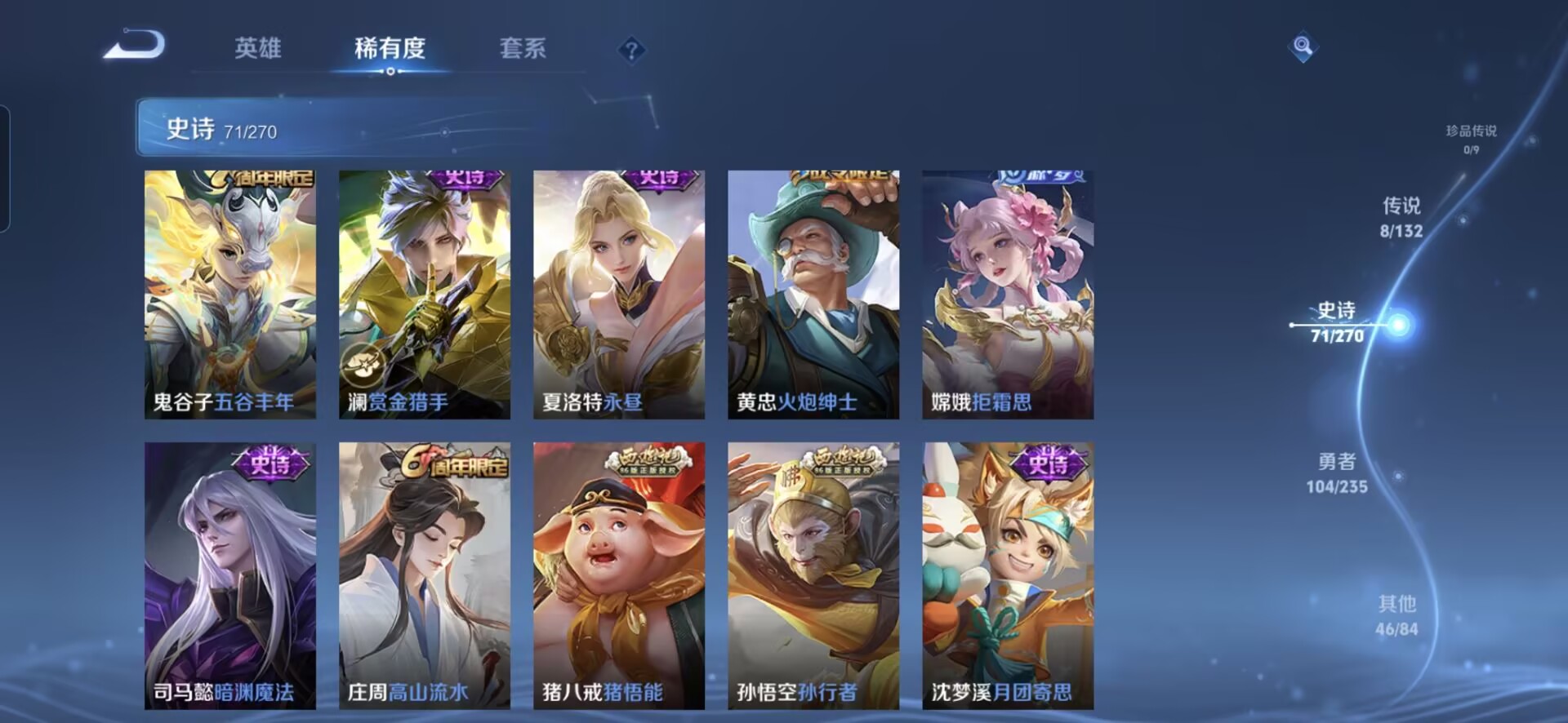 【230皮肤v7 传说8 典藏1 星传说1 幽冥之眼】安卓q-230皮肤-127英雄 【典藏皮肤】 星域神启 【传说皮肤】 鸣野蒿 九山相柳 愿照·九州拓 无双飞将 地狱之眼 炽阳神光 一念神魔 云鹰飞将 【史诗皮肤】 破空之剑 天狼溯光者 布丁狗之约 谧流熔炉 涂山容容 孙行者 龙之律动 地狱燃心 线条小狗 山海·玄木吟 百相守梦 踏浪烽翎 聚星闪耀 江河有灵 幻夜行动 决