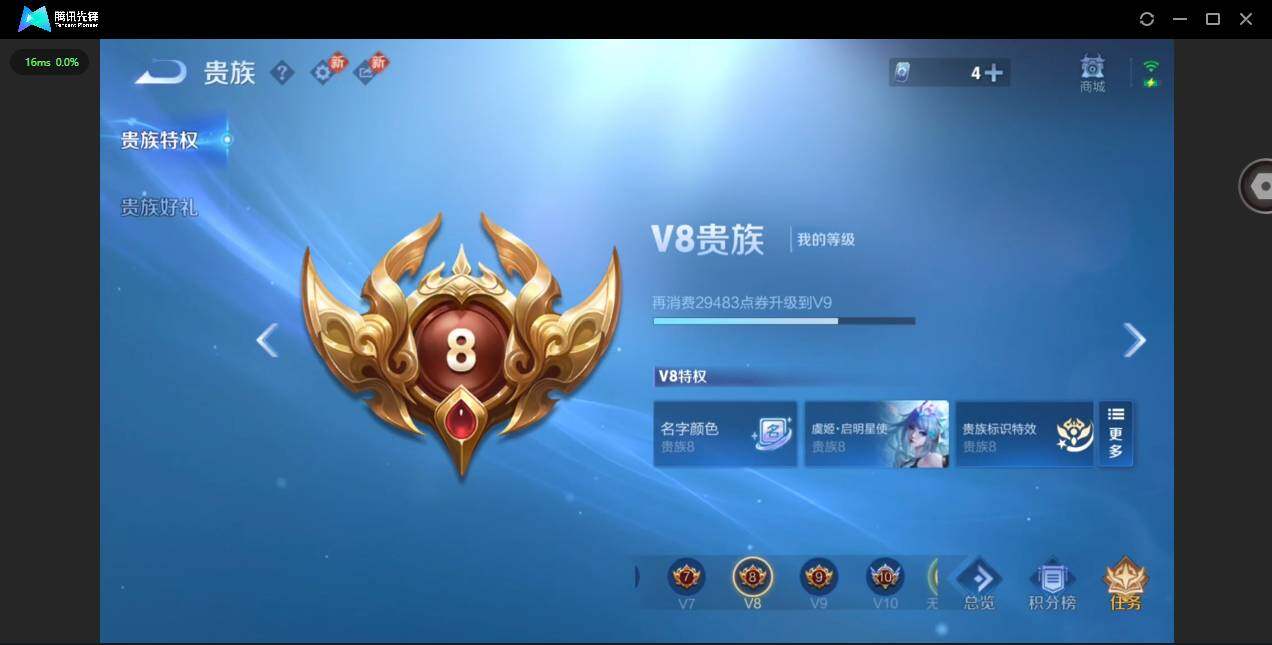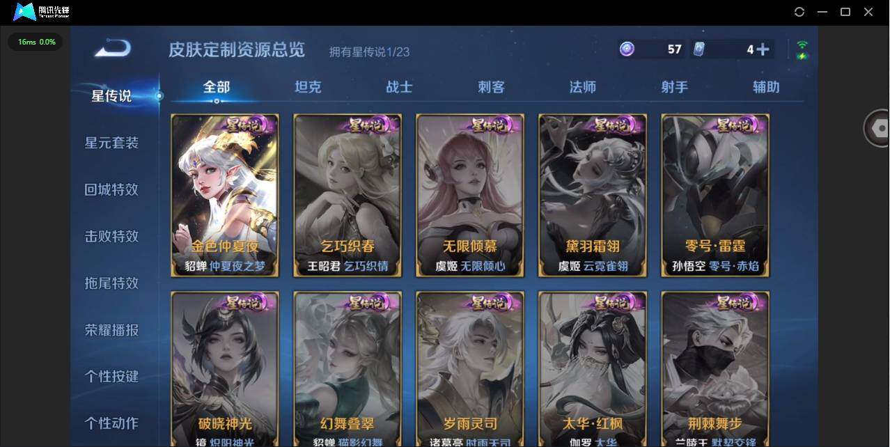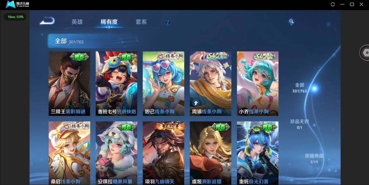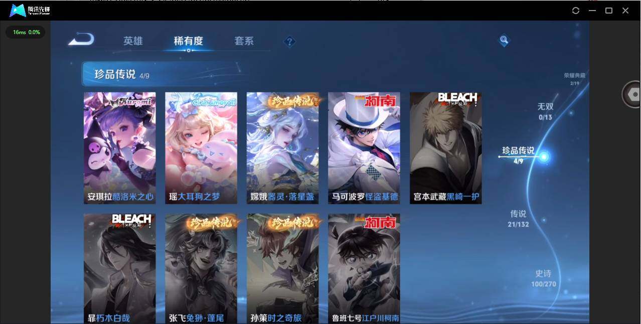 2447099-贵族等级: v8 英雄数: 128 皮肤数: 301 荣耀水晶: 天鹅之梦拾光映像 珍品传说: 怪盗基德器灵·落星盏酷洛米之心大耳狗之梦 星传说: 金色仲夏夜 传说皮: 黄金狮子座久胜战神仲夏夜之梦音你心动-小乔飞鸢探春山海·炽霜斩黄金天蝎座朵莉亚心动手记铠冥王哈迪斯牧神诗旅幻光神呛祥瑞亨通星之鸣奏续相思云诺千山诡秘之主神树通天 限定皮