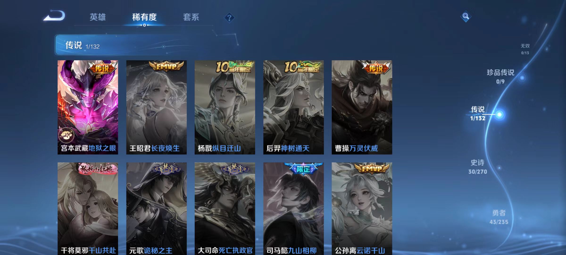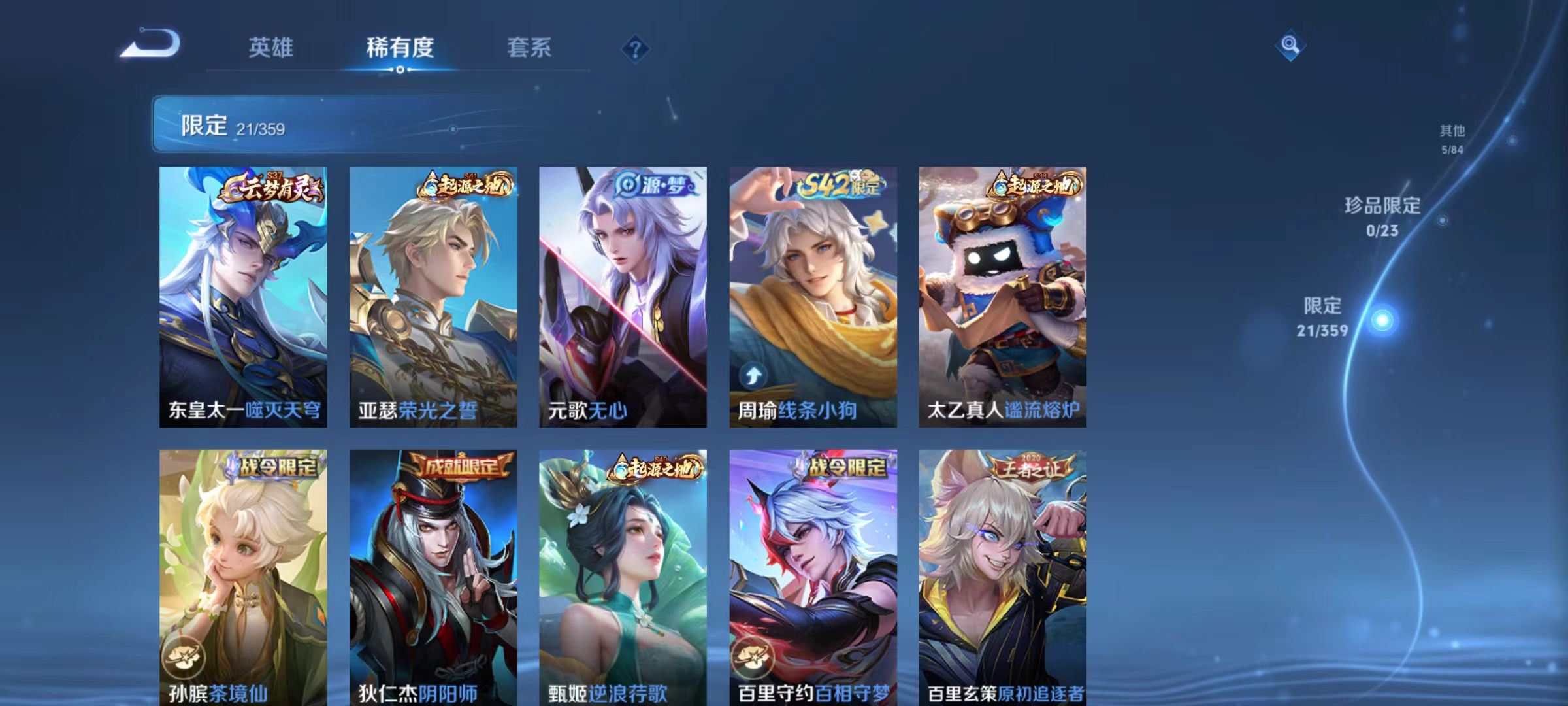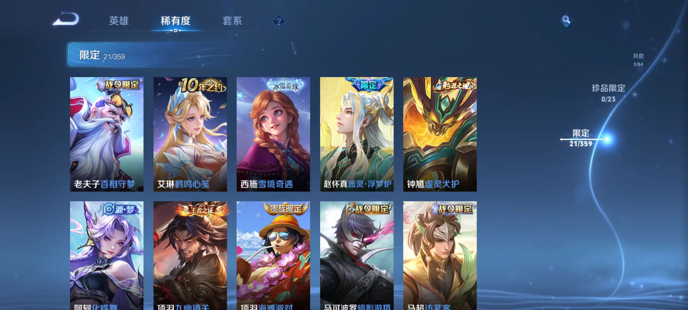 8【v4 1典藏 1传说 打野25段】安卓q-80皮肤-103英雄 【典藏皮肤】 弑呛猎影 【传说皮肤】 地狱之眼 【史诗皮肤】 茶境仙 百相守梦 器灵·浮梦炉 谧流熔炉 线条小狗 九幽镇关 踏浪烽翎 百相守梦 化蝶舞 幽灵船长 功夫厨神 魅力维加斯 猫狗日记 鹰眼统帅 暗隐猎兽者 千年之狐 德古拉伯爵 绅士熊喵 圣诞狂欢 暗影游猎 晚萤 偶像歌手 冰冠公主 天秀·启明 乱世虎