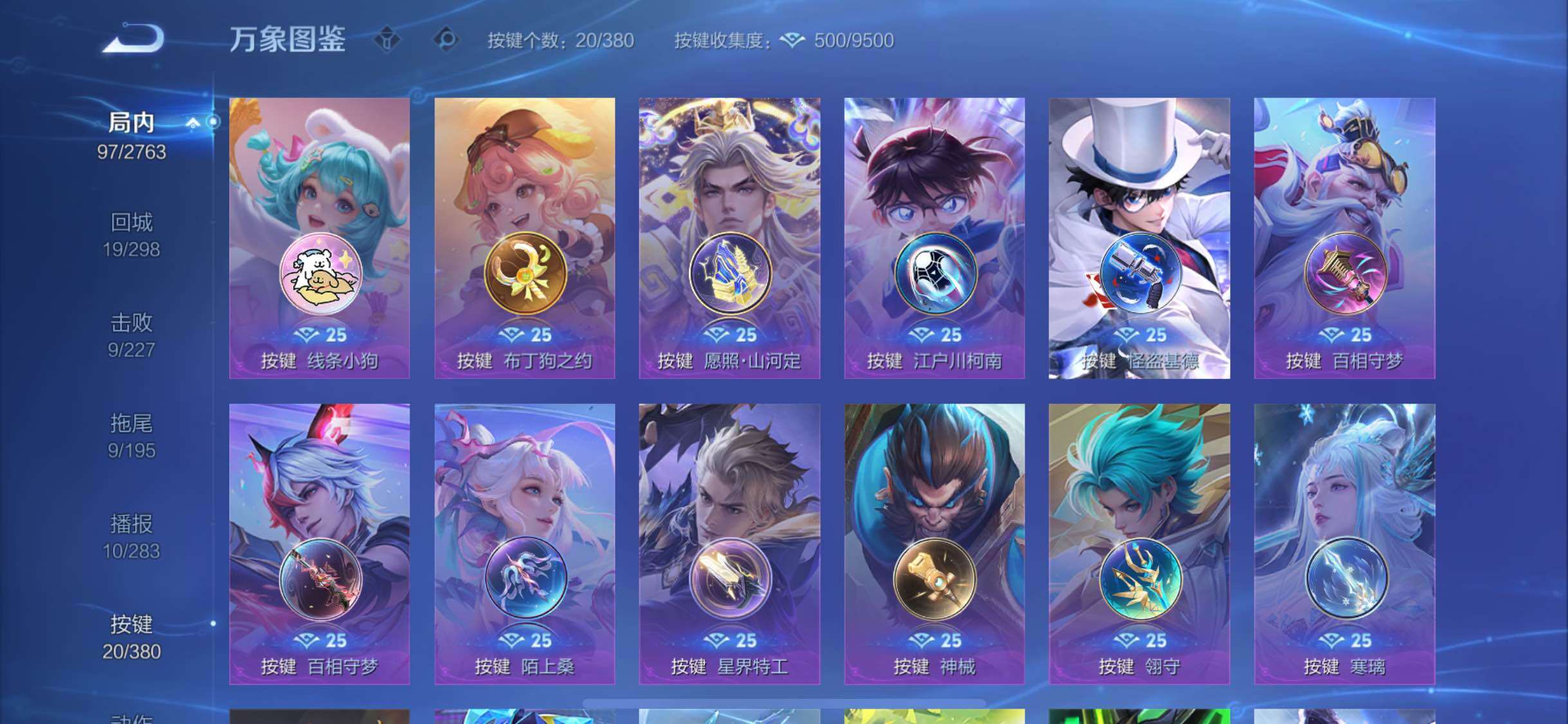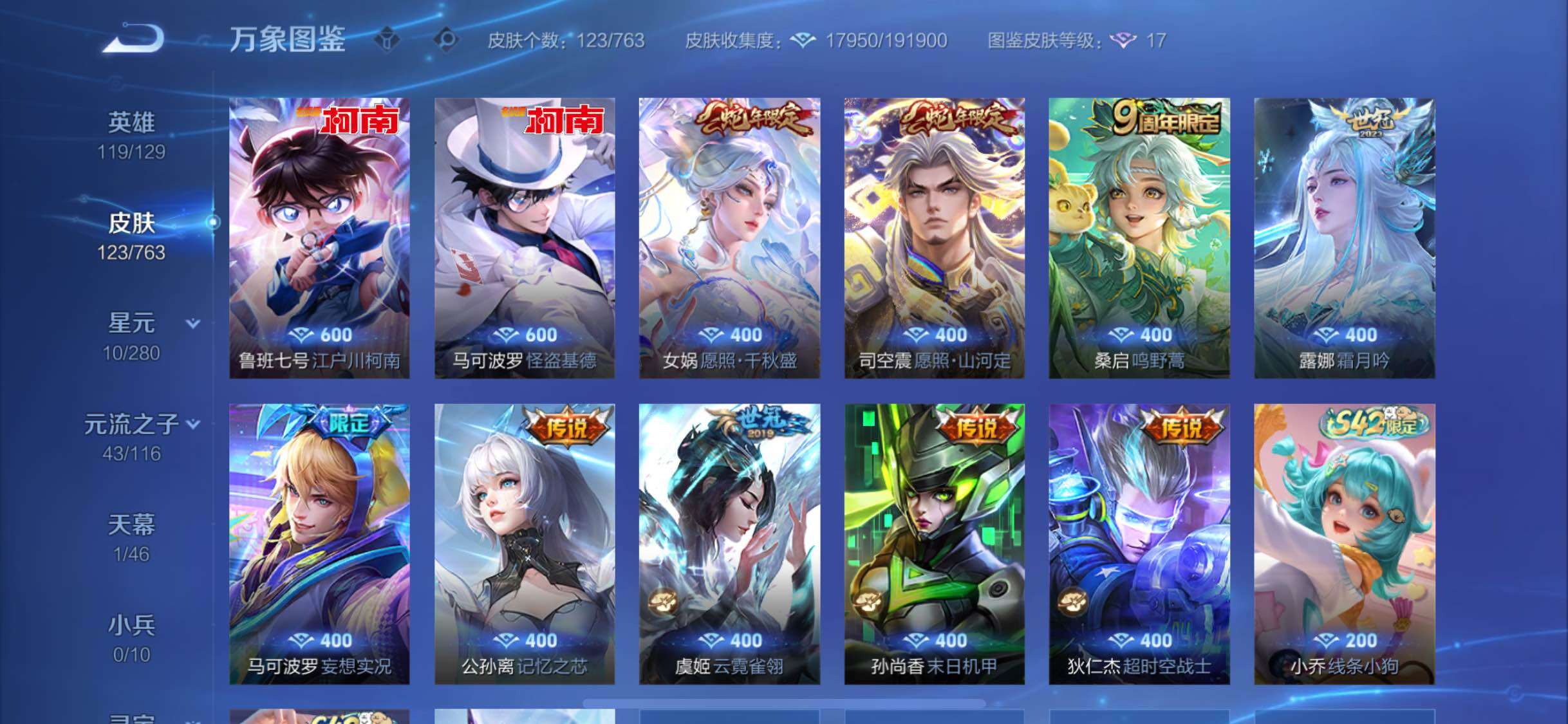 【精品射手战力号·52段发育路·万战金标孙尚香·万战金标李元芳·金标莱西奥·金标狄仁杰·怪盗基德天幕·全皮司空震·怪盗基德·江户川柯南·愿照山河定·愿照千秋盛·霜月吟·妄想实况·记忆之芯·云霓雀翎·可二次】w15121-苹果q-119英雄-123皮肤-6王者印记-160铭文-贵族积分3w【贵族7】【2珍品·1星传说·9传说·1天幕·20按键】【因赛季更新游戏段付以上号为准!】 【英雄全皮】
