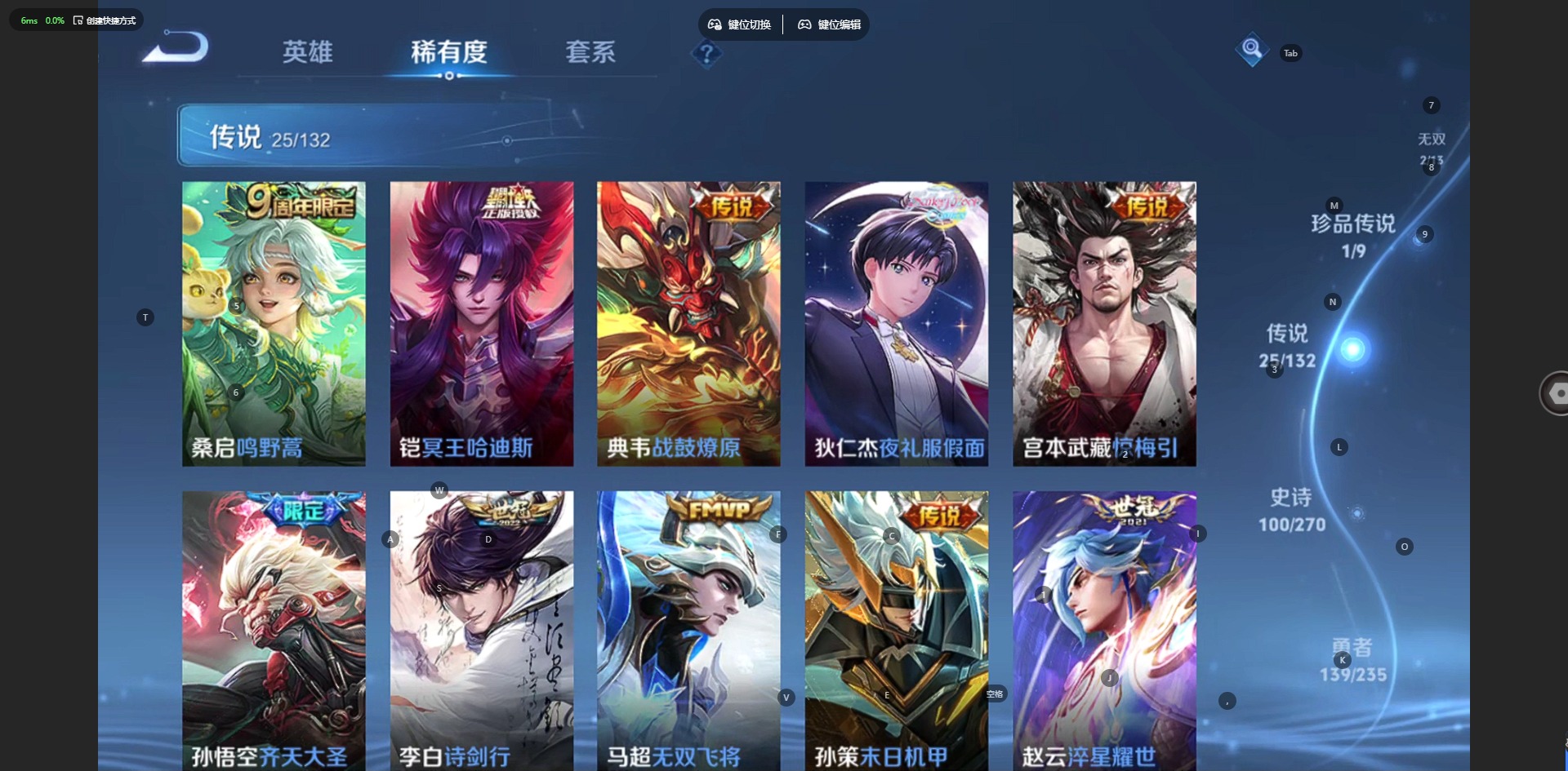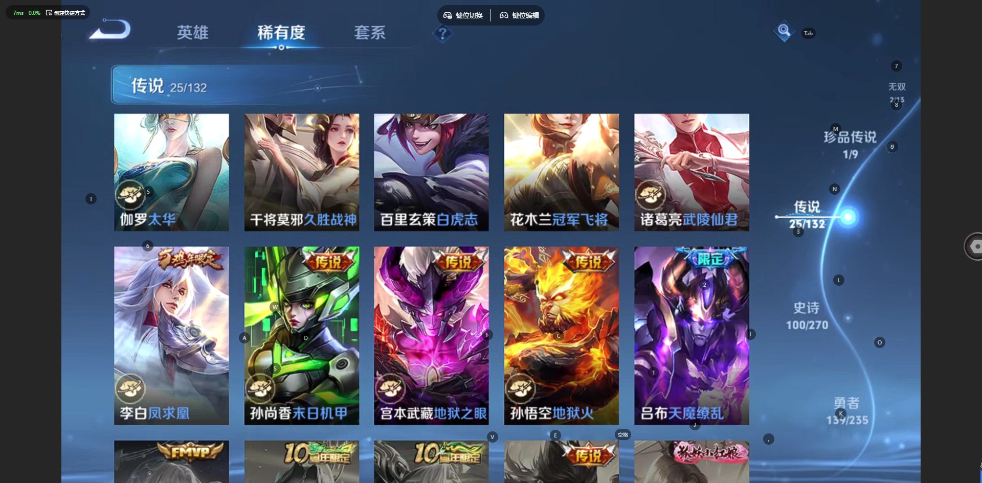 v8 1典藏 2无双 1珍品传说 25传说 127英雄 332皮肤 可修改实名 男号 【英雄全皮】敖隐全皮孙权全皮狂铁全皮猪八戒全皮 【稀有英雄】敖隐小龙人大司命嬴政始皇帝韩信韩跳跳夏洛特夏师傅艾琳橘右京橘子娜可露露鸟人不知火舞赵云金蝉唐僧戈