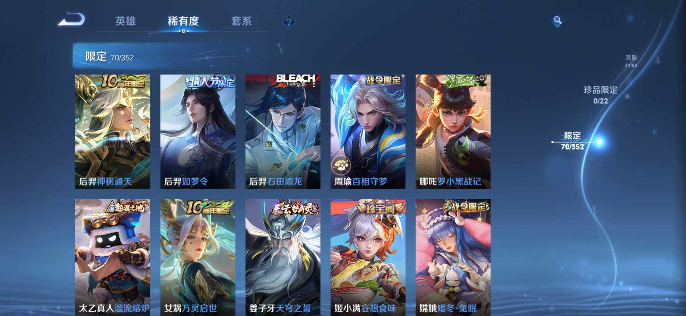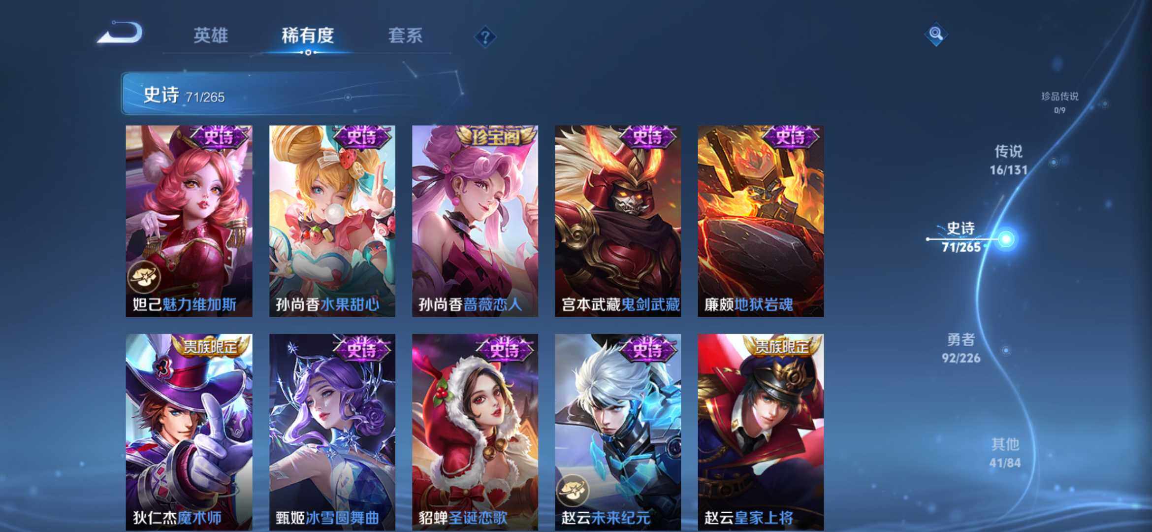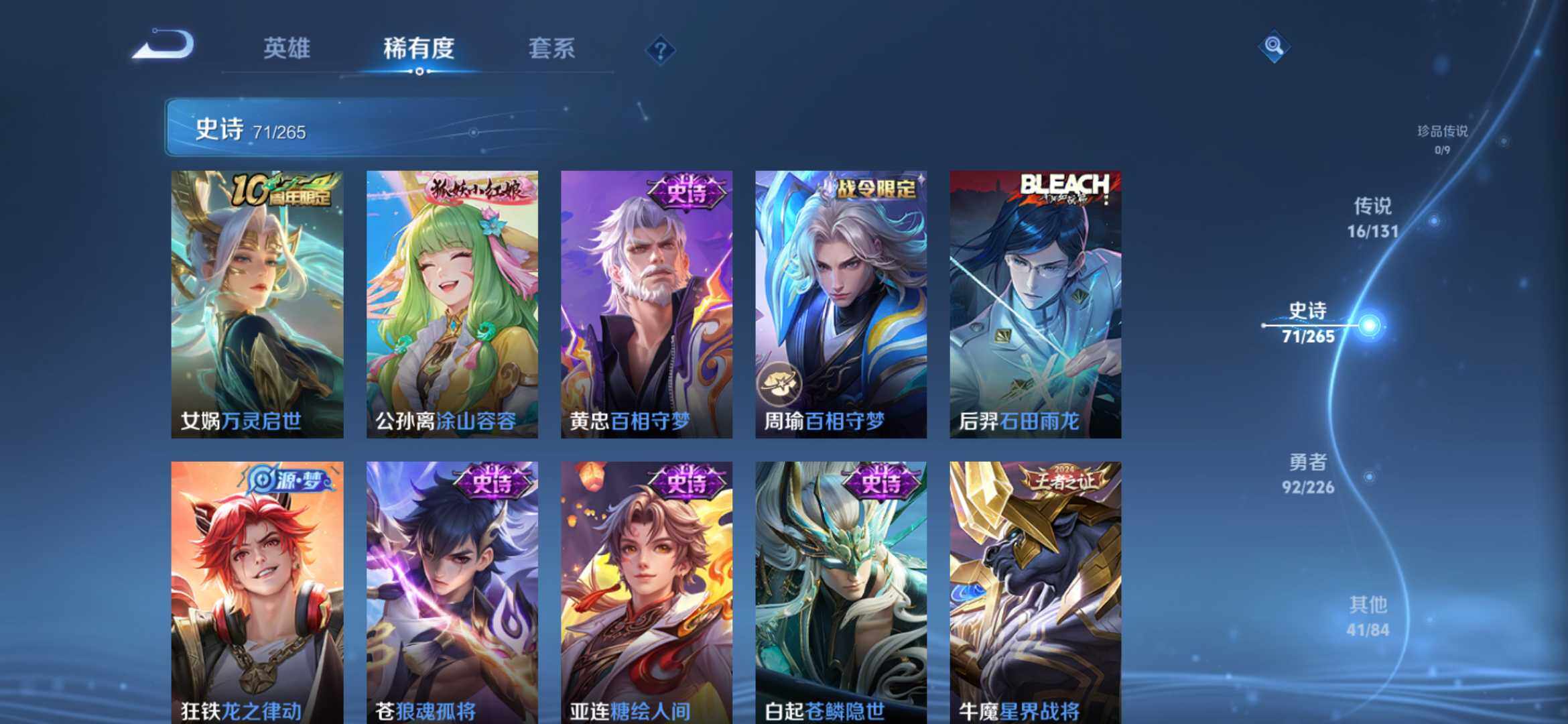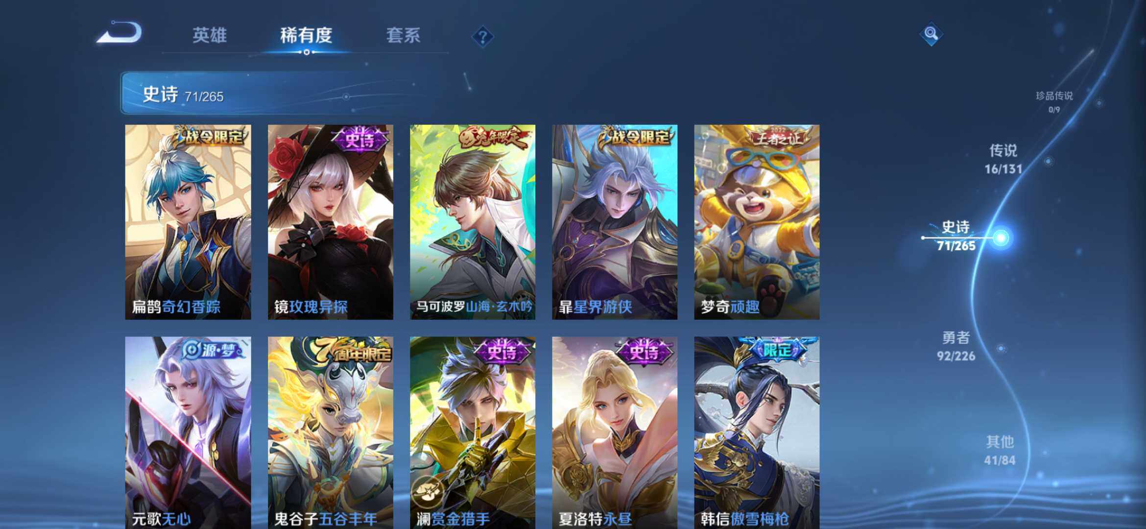 2274277-【时之思念 鸣剑 齐天大圣 16传说1典藏221皮精品号】安卓q-v8-125英雄-221皮肤-1典藏-0珍品无双-0无双-0珍品传说-16传说-71史诗 【英雄全皮】:孙权全皮,苍全皮,李信全皮,蒙恬全皮,司空震全皮,影全皮 【荣耀典藏】:李白鸣剑曳影 【传说皮肤】:后羿神树通天,司空震愿照山河定,澜愿照九州拓,云缨幻光神呛,桑启鸣野蒿,赵云乘龙铭钟鼎,孙悟空齐天大圣,李
