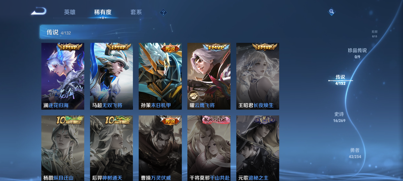 【王者荣耀】【lywz28923】珍品无双0 典藏0 无双0 珍品传说0 传说4 史诗16 英雄102 皮肤78 贵族0级 传说皮肤:无双飞将|孙策-末日机甲|云鹰飞将|逐花归海__稀有限定:蔷薇恋人|超元猎域|古海寻踪|海滩派对|海盐诗旅|皇家上将|剑破天穹|江河有灵|擒涛扼浪|探海日志|天穹祈灯|阴阳师|乘风破浪|金属风暴|赏金猎手|圣诞恋歌|水果甜心|孙策-猫狗日记|天才门将|摇滚巨星|鹰眼统帅|紫霞仙子|噬灭天穹|天穹之誓|修罗|舞动绿茵|云中旅人|虚灵犬护|逆浪荇歌__优质皮肤:尼罗河女神|孤猎|午夜歌剧院|激情绿茵|绯红之刃|潮流仙人|绝影神呛|幸存者|星航指挥官|龙域领主|花间舞|东海龙王|灼热之刃|战争女神|异域舞娘|潮玩探月行|瓷语鉴心|秘密基地|次元突破|鲨炮海盗猫|守护之力|幻乐之宴|功夫老勺|命运角斗场|海滩丽影|兔女郎|死亡骑士|天使之翼|忍·炎影|街头霸王|漠中幻影|太极少年|拳王|白色死神|哥特玫瑰|缤纷绘卷|纽约教父|西施-归虚梦演|牛魔-西部大镖客|汉昭烈帝|乓乓大师|万事如意|劲辣红锅|特工战影|妄想特派__贵族等级:无贵族等级__王者段位:荣耀黄金4传说末日机甲,无双飞将,云鹰飞将,逐花归海