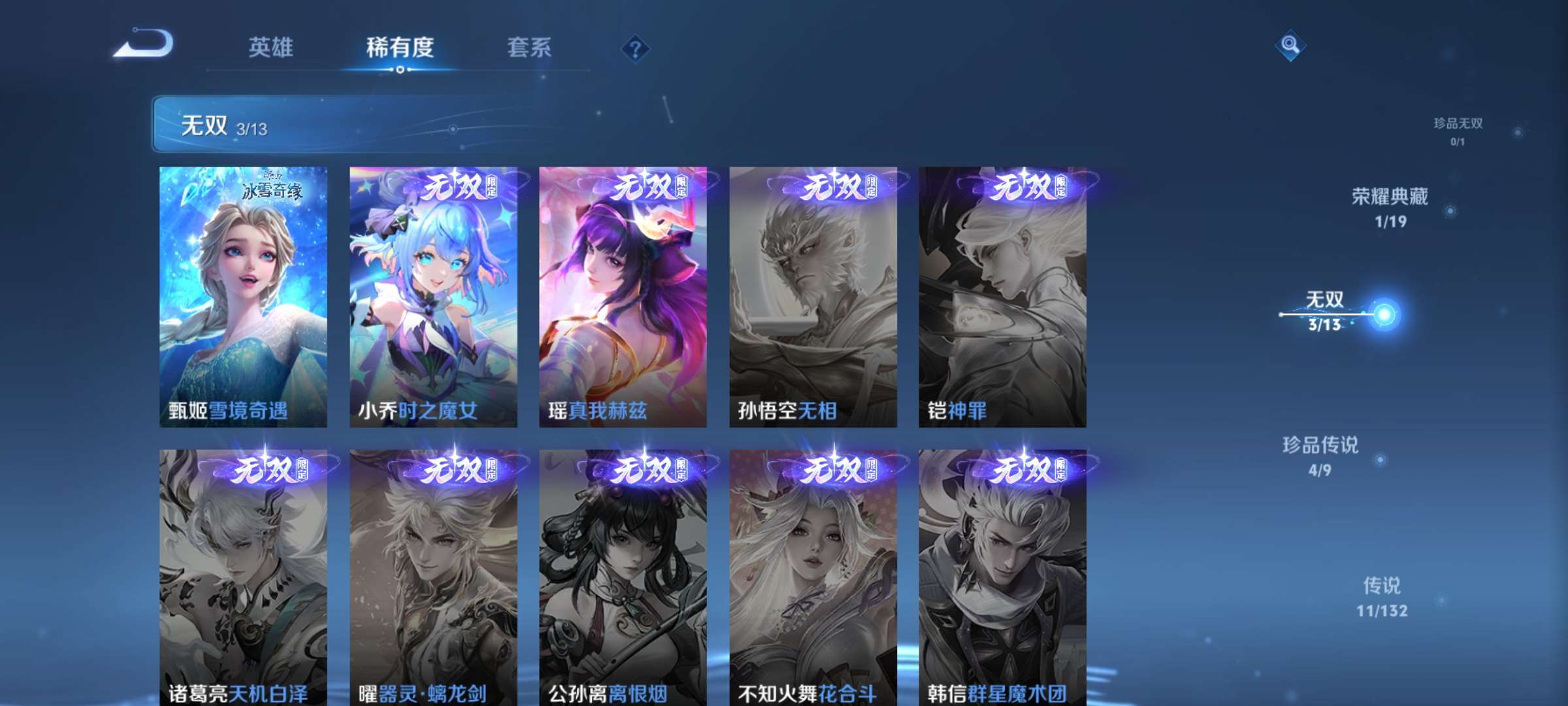 2434252-1【秒换绑,无需等三天】【女号】v8-222皮肤 8印记 游走30段 中路26段 安卓q-v-222皮肤2典藏3无双4珍品传说11传说 【典藏】 拾光映像 武则天 【无双】 雪境奇遇 时之魔女 真我赫兹瑶 【珍品传说】 大耳狗之梦 酷洛米之心 器灵落星盏 时之奇旅孙策 【传说】 星之鸣奏 愿照众生和 愿照福禄聚 千劫归真 鸣野蒿 映山客 启明星使 星穹之声 挚爱花嫁 音你心动