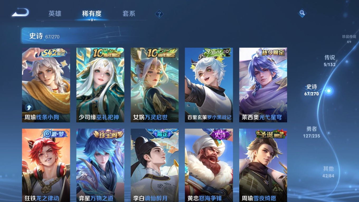 127英雄-242皮肤v7-1典藏5传说 2星传说 幽冥之眼 金色仲夏夜【全皮英雄】 狂铁全皮 【典藏】 弑呛猎影 【传说】 马超琥珀纪元 万灵伏威 鸣野蒿 仲夏夜之梦 地狱之眼 【热门】万灵启世 巫礼祀神 冰封战神 御风骁将 谪仙醉月 山海玄木吟 逐梦之影 逐霄之志 拒霜思 匿光侦查者 孙行者