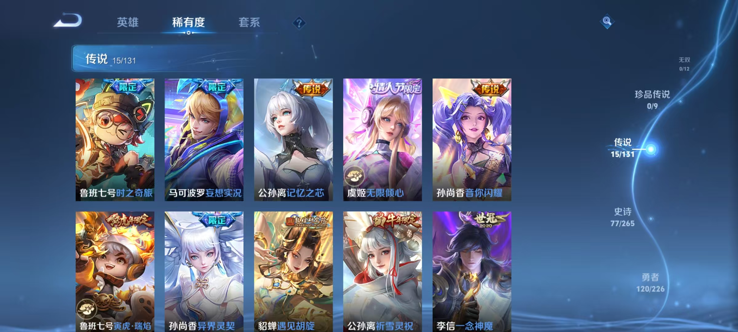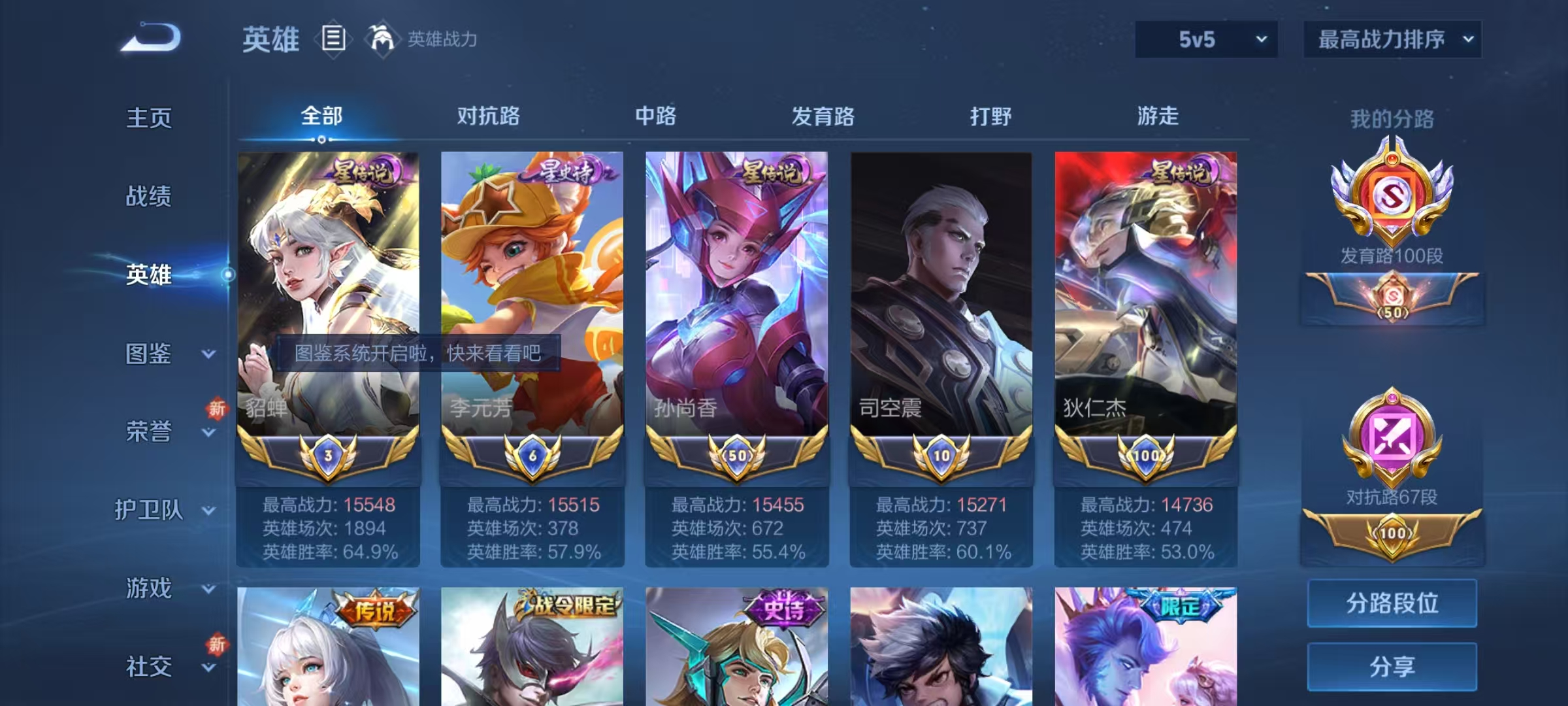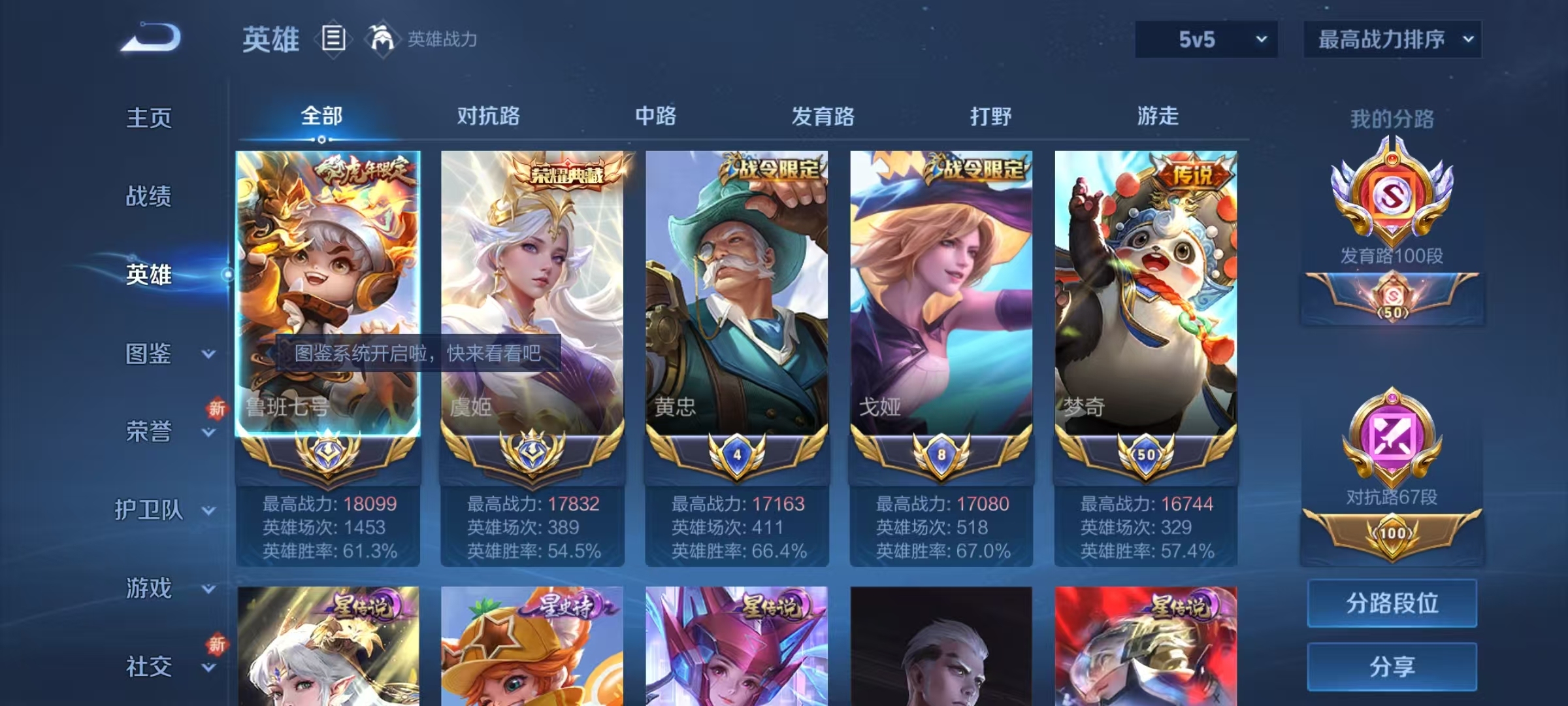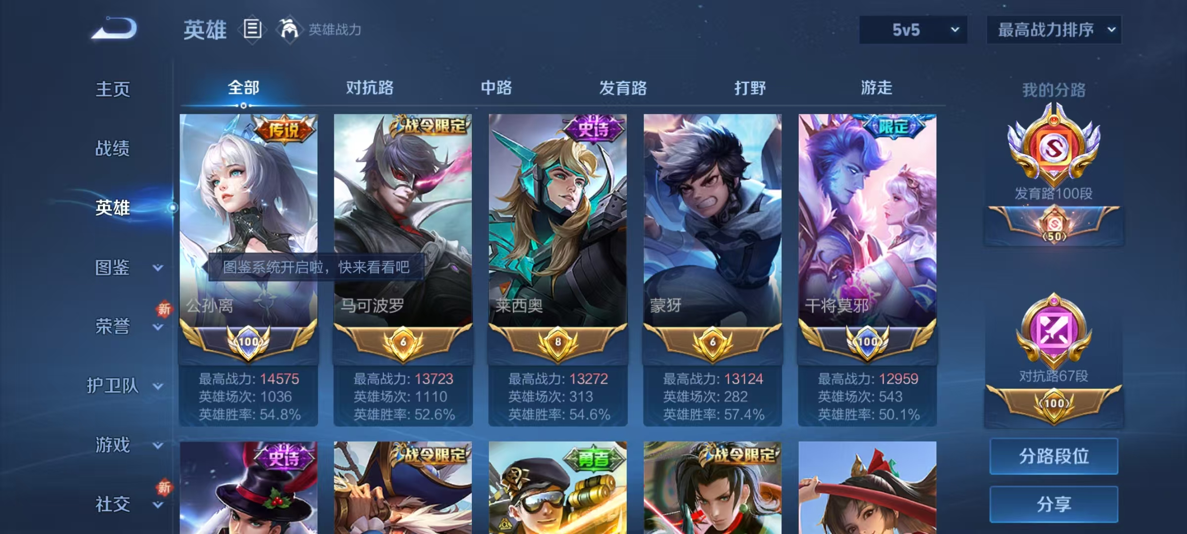 发育路100段 小魔方 百星印记 大国标鲁班七号1.8w战力 大国标虞姬1.7w战力 国4小国标1.7w战力 国8小国标戈娅1.7w战力 国6小国标李元芳1.5w战力 小国标孙尚香1.5w战力 小国标公孙离1.4w战力 小国标狄仁杰1.4w战力 国3小国标貂蝉1.5w战力 国10小国标司空震1.5w战力 小国标梦奇1.6w战力 小国标干将莫邪1.2w战力 266皮 1典藏 15传说 2星传说