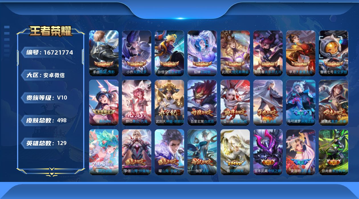 [16721774]v10 8典藏 3无双 67传说 129英雄 498皮肤 典藏英雄武则天 可修改实名 女号 【英雄全皮】李信全皮武则天全皮敖隐全皮空空儿全皮孙权全皮蚩奼全皮鲁班大师全皮钟馗全皮金蝉全皮夏洛特全皮猪八戒全皮影全皮大禹全皮 【稀有英雄】敖隐小龙人大司命嬴政始皇帝韩信韩跳跳夏洛特夏师傅艾琳橘右京橘子娜可露露鸟人不知火舞赵云金蝉唐僧戈娅 【荣耀水晶】鸣剑·曳影幻阙歌貂蝉典藏全息碎影猴子典藏杀手不太冷天鹅之梦小乔典藏星空梦想太空人大秦宣太后倪克斯神谕宇宙婆娘武则天 【无双皮】真我赫兹瑶瑶无双青丘·九尾妲己无双神器·明辉仪 【传说皮】遇见胡旋游龙清影小青龙山海·炽霜斩李信年限山海·琳琅生小乔年限黄金狮子座黄金白羊座零号·赤焰仲夏夜之梦大飞蛾海洋之心地狱之眼末日机甲-孙尚香绿蚂蚱云霓雀翎一念神魔淬星耀世久胜战神猫影幻舞云鹰飞将小将军炽阳神光音你心动-周瑜乞巧织情时之恋人-刘备电焊工飞鸢探春绛天战甲鸡嘴战神超时空战士-狄仁杰末日机甲-孙策花朝如约花篮子挚爱之约挚爱花嫁音你闪耀rap皮神器·狴犴令神器·明辉仪山海·苍雷引电光曜子炽翼辉光娃娃菜牛角包燃星之曲画中仙浮生妄记忆之芯机甲兔青丘·九尾百相守梦张飞追逃游戏安琪拉追逃游戏亚瑟电玩·雷克斯鹤羽星尊灼幽烈阳妄想实况妄想奇谈鹤归松栖云缨艾琳觅芳踪天秀幻梦 【珍宝阁皮】优雅恋人女武神 【赛季/战令皮】噬灭天穹s37古海寻踪s33星界游侠海盐诗旅s30擒涛扼浪s31潮玩骑兵奇幻香踪探海日志s32驭风魔法玲珑珍味流音漫舞顽趣-梦奇天穹祈灯s34暖冬·兔眠朔风刀s17混沌棋s18疑决卦s19醍醐杖s20原初探秘者s21万华元夜s22演武夺筹s23驱傩正仪s24千军破阵s25朔望之晖蓝屏警告神迹守卫-钟馗狮舞东方赤莲之焰驯魔猎人星空之诺银河之约夺宝奇兵迷踪丽影西部大镖客-猪八戒单词大作战狂想玩偶喵潮玩骑士王云间偶戏星际陆战队