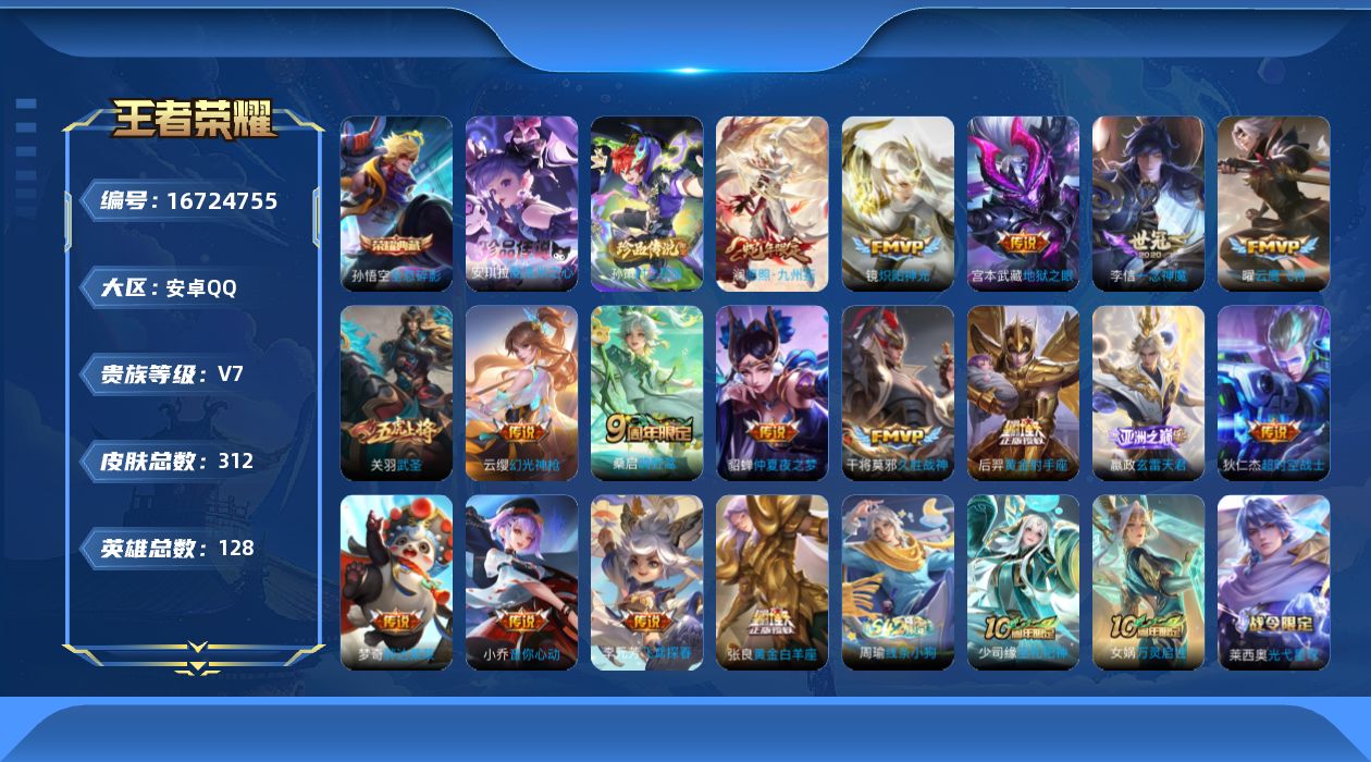 [16724755]v7 1典藏 2珍品传说 18传说 128英雄 312皮肤 可修改实名 男号 【英雄全皮】敖隐全皮空空儿全皮孙权全皮蚩奼全皮刘邦全皮钟馗全皮影全皮大禹全皮 【稀有英雄】敖隐小龙人大司命嬴政始皇帝韩信韩跳跳夏洛特夏师傅艾琳橘右京橘子娜可露露鸟人不知火舞赵云金蝉唐僧戈娅 【荣耀水晶】全息碎影猴子典藏 【珍品传说】时之奇旅-孙策酷洛米之心 【传说皮】玄雷天君神树通天幻光神呛黄金射手座黄金白羊座仲夏夜之梦大飞蛾地狱之眼一念神魔久胜战神云鹰飞将小将军炽阳神光音你心动-小乔胖达荣荣飞鸢探春超时空战士-狄仁杰 【珍宝阁皮】万物之道蔷薇恋人 【赛季/战令皮】噬灭天穹s37顽趣-梦奇剑破天穹s35青焰无极苍威无极天穹之誓s36蔡文姬夏日便利店虞姬夏日便利店暖冬·兔眠烛龙s10穷奇s12御狮s13御霄s14御旌s15御銮s16朔风刀s17混沌棋s18疑决卦s19醍醐杖s20原初探秘者s21万华元夜s22演武夺筹s23驱傩正仪s24神迹守卫-钟馗狮舞东方夺宝奇兵迷踪丽影西部大镖客-猪八戒暗影游猎游乐娃子单词大作战狂想玩偶喵潮玩骑士王云间偶戏星际陆战队-达摩胡桃异想国神迹守卫-墨子航海奇遇记午后时光落雪兰心 【史诗皮】线条小狗-周瑜化蝶舞鸭鸭历险记-刘禅灵蛊蚀心龙之律动石田雨龙光弋星穹破空之剑器灵·浮梦炉茶境仙百相守梦-百里守约谪仙醉月撼地雄心战舞者东方月初蒙犽顽岩魄巫礼祀神万灵启世紫霞仙子电玩小子小书包黄金分割率特工魅影千年之狐龙骑士小龙虾冰冠公主青蛇晚萤无限星赏官暗夜猫娘猫狗日记-孙策猫狗日记-大乔乱世虎臣节奏热浪修罗女仆咖啡摇滚巨星水果甜心绅士熊喵天才门将星夜王子心灵骇客功夫厨神德古拉伯爵暗隐猎兽者幽灵船长鬼剑武藏心灵战警乐园奇幻夜天秀·启明地狱岩魂纤云弄巧繁星吟游呼啦呼啦缤纷独角兽乘风破浪逐浪之夏月团寄思水晶猎龙者曙光守护者金属风暴圣诞恋歌鹰眼统帅暗夜贵公子魅力维加斯无心未来纪元-赵云 【限