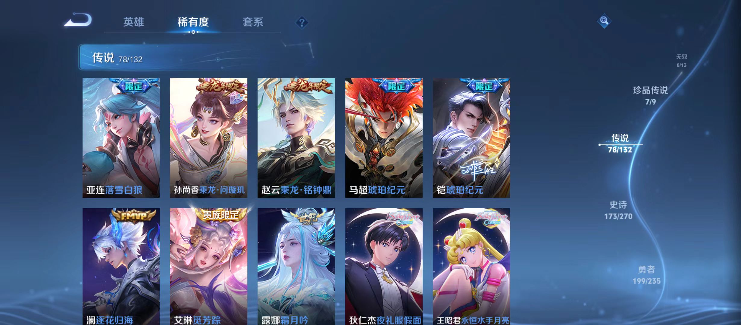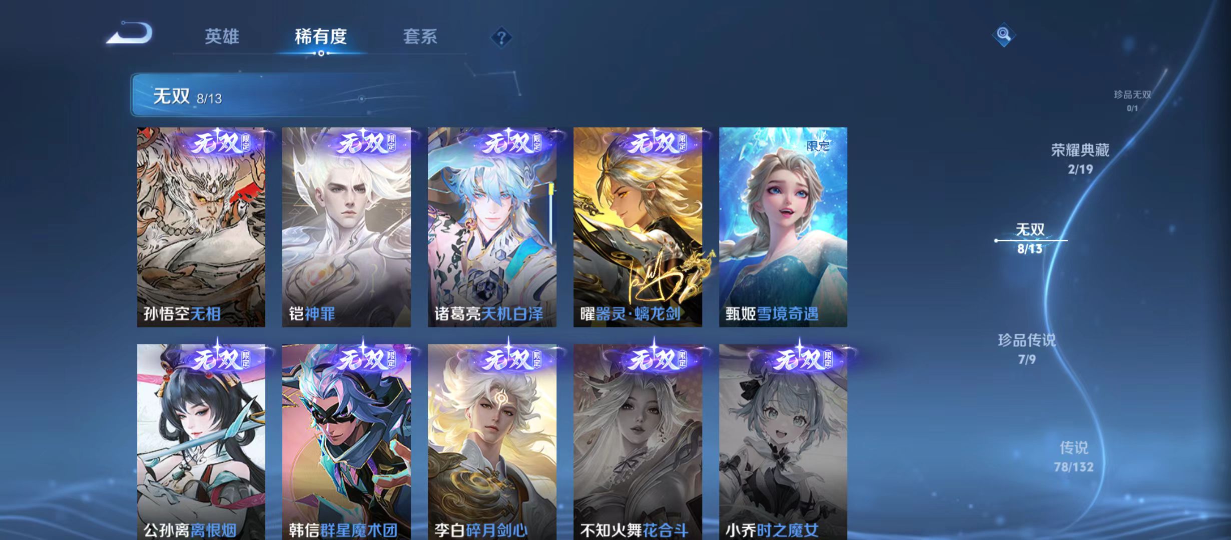 txwz30839-v10差3百块钱无双v10 538皮 全皮 公孙离 李白 曜 2典藏 银白咏叹调,鸣剑·曳影 8无双 雪境奇遇,无相,神罪,天机白泽,群星魔术团,器灵·螭龙剑,离恨烟,碎月剑心 7珍品 黑崎一护,朽木白哉,酷洛米之心,兔狲·蓬尾,时之奇旅,怪盗基德,江户川柯南 78传说 祥瑞亨通,群星魔术团,纵目迁山,琥珀纪元,霜北刀,神树通天,千山共赴,诡秘之主,死亡执政官,九山相柳,黄金白羊座,永曜之星,记忆之芯,觅芳踪,碎云,超时空战士,绛天战甲,云诺千山,冠军飞将,久胜战神,愿照·福禄聚,幻光神呛,愿照·众生和,愿照·千秋盛,愿照·山河定,愿照·岁时盈,愿照·九州拓,玄雷天君,云鹰飞将,妄想实况,齐天大圣,鸣野蒿,冥王哈迪斯,凤求凰,地狱之眼,神器·狴犴令,末日机甲,黄金狮子座,落雪白狼,乘龙·铭钟鼎,乘龙·问璇玑,琥珀纪元,逐花归海,至美·化雀舞,霜月吟,白虎志,夜礼服假面,永恒水手月亮,影龙天霄,时之奇旅,祈雪灵祝,遇见神鼓,鹤归松栖,鹤羽星尊,浮生妄,炽阳神光,山海·炽霜斩,山海·苍雷引,诗剑行,无双飞将,枫霜尽,深海之息,无尽星芒,武陵仙君,仲夏夜之梦,寅虎·瑞焰,寅虎·赤拳,启明星使,一念神魔,淬星耀世,异界灵契,李 ,默契交锋,时雨天司,零号·赤焰,云霓雀翎,太华,黄金射手座 172史诗
