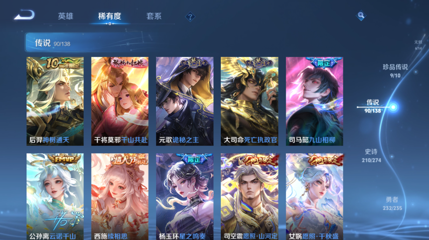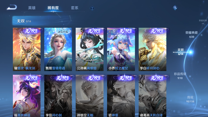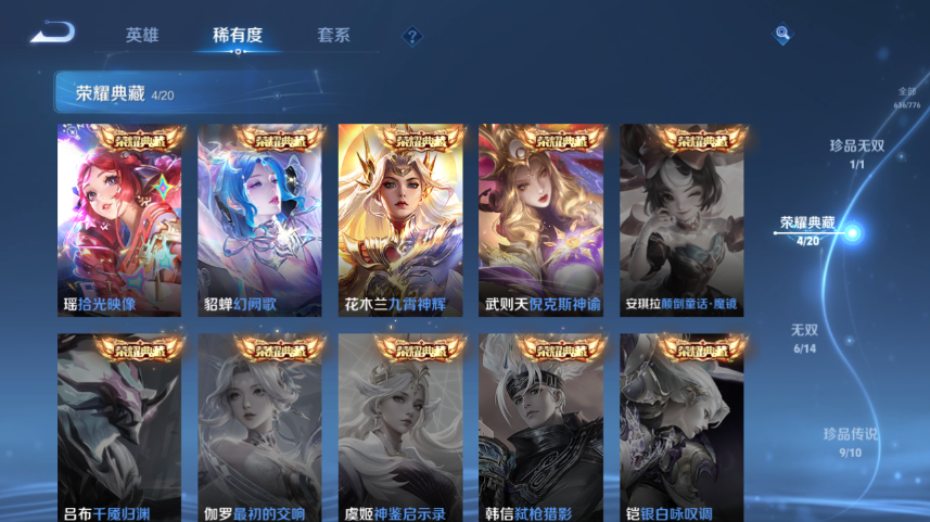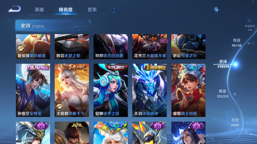 【王者荣耀】【lywz30706】珍品无双1 典藏5 无双6 珍品传说9 传说90 史诗209 英雄129 皮肤636 贵族无双级 珍品无双:馥梦繁花__荣耀典藏:武则天|幻阙歌|九霄神辉|倪克斯神谕|拾光映像__无双皮肤:时之魔女|碎月剑心|真我赫兹|离恨烟|雪境奇遇|器灵·螭龙剑__珍品传说:江户川柯南|怪盗基德|孙策-时之奇旅|器灵·落星盏|兔狲·蓬尾|大耳狗之梦|酷洛米之心|朽木白哉|黑崎一护__传说皮肤:鸣野蒿|前尘镜|深海之息|无双飞将|挚爱花嫁|挚爱之约|补天|孙尚香-异界灵契|炽阳神光|启明星使|地狱之眼|地狱火|海洋之心|仲夏夜之梦|云霓雀翎|久胜战神|黄金狮子座|黄金射手座|黄金白羊座|猫影幻舞|刘备-时之恋人|一念神魔|云鹰飞将|冠军飞将|飞鸢探春|游龙清影|乞巧织情|瑶-时之祈愿|绯月行|浮生妄|鹤羽星尊|画中仙|记忆之芯|孙尚香-末日机甲|齐天大圣|白虎志|大乔-时之奇旅|凤求凰|惊梅引|鲁班七号-时之奇旅|落雪白狼|马超-琥珀纪元|怒海麟威|祈雪灵祝|诗剑行|时雨天司|霜月吟|太华|天魔缭乱|妄想实况|武圣|貂蝉-曦玄引|星穹之声|夜礼服假面|永恒水手月亮|虞姬-无限倾心|遇见胡旋|周瑜-音你心动|逐花归海|乘龙·淬吴钩|乘龙·铭钟鼎|乘龙·问璇玑|云缨-鹤归松栖|觅芳踪|山海·炽霜斩|山海·琳琅生|朵莉亚-心动手记|寅虎·赤拳|至美·化雀舞|灼幽烈阳|映山客|牧神诗旅|玄雷天君|幻光神呛|祥瑞亨通|愿照·岁时盈|愿照·山河定|愿照·九州拓|愿照·众生和|愿照·福禄聚|星之鸣奏|愿照·千秋盛|续相思|云诺千山|九山相柳|死亡执政官|诡秘之主|千山共赴|神树通天__稀有限定:寅虎·展翼|寅虎·心曲|奔雷神使|御风骁将|白晶晶|至尊宝|瑞麟志|玄武志|朱雀志|虞姬-霸王别姬|大圣娶亲|一生所爱|引擎之心|纯白花嫁|飞衡|奇迹圣诞|蜜橘之夏|神威|烈魂|青春决赛季|白鹤梁神女|孙行者|猪悟能|傲雪梅呛|玉兔公主|李小龙|梁祝|山海·碧波行|山海·玄木吟|神器·万象笔|狮舞东方|拒霜思|暗影游猎|白昼王子|百解令|冰锋战神|冰霜恋舞曲|嫦娥-如梦令|妲己-时之奇旅|大漠名商|地狱燃心|电玩高手|繁星吟游|凤凰于飞|高山流水|古海寻踪|海滩派对|海盐诗旅|航海奇遇记|后羿-如梦令|胡桃夹子|胡桃异想国|华丽摇滚|幻夜卜梦|皇家上将|辉光之辰|混沌棋|火炮绅士|剑破天穹|江河有灵|金庭之子|镜-真我赫兹|凯尔特女王|狂想玩偶喵|蓝屏警告|黎明之约|炼金王|美猴王|迷踪丽影|魔术师|花木兰-默契交锋|匿光追影者|女武神|奇幻香踪|千军破阵|擒涛扼浪|青焰无极|穷奇|驱傩正仪|燃音魔法|热情桑巴|荣光圣徽|沙漠行僧|蜃楼王|狮心王|朔风刀|死亡摇滚|探海日志|饕餮|醍醐杖|天狼绘梦者|天狼狩猎者|天狼溯光者|天穹祈灯|阿古朵-顽趣|万华元夜|无心|五谷丰年|午后时光|纤云弄巧|星界游侠|星空之诺|驯魔猎人|演武夺筹|妖精王|夜都怪侠|疑决卦|阴阳师|吟游魔法|银河之约|优雅恋人|游园惊梦|驭风魔法|遇见飞天|御旌|御銮|御狮|原初追逐者|云端筑梦师|云间偶戏|真爱魔法|逐梦之光|逐梦之星|逐梦之翼|逐梦之音|逐梦之影|暗夜贵公子|暗夜猫娘|暗隐猎兽者|暗渊魔法|白龙吟|白蛇|缤纷独角兽|冰冠公主|冰雪圆舞曲|苍穹之光|乘风破浪|乘龙·聚宝船|乘龙·忆丹青|大乔-猫狗日记|德古拉伯爵|地狱岩魂|电玩·爆裂旋风|电玩小子|伽罗-琥珀纪元|功夫厨神|鬼剑武藏|唤灵魅影|黄金分割率|箭羽风息|节奏热浪|金属风暴|乐园奇幻夜|李元芳-蔬乡物语|龙鼓争鸣|龙骑士|吕布-末日机甲|玫瑰异探|魅力维加斯|魅语|梦奇-顽趣|女仆咖啡|偶像歌手|奇遇星旅|千筹问战|青蛇|赏金猎手|绅士熊喵|圣诞狂欢|圣诞恋歌|诗语江南|鲁班七号-蔬乡物语|水果甜心|水晶猎龙者|孙策-猫狗日记|天才门将|天秀·启明|晚萤|赵云-未来纪元|星夜王子|雪上飞焰|雪夜绮愿|摇滚巨星|鹰眼统帅|永昼|幽灵船长|遇见神鹿|月团寄思|至美·乘鲤谣|钟无艳-超时空战士|周瑜-真爱至上|逐浪之夏|紫霞仙子|赵怀真-鹤归松栖|百里守约-百相守梦|老夫子-百相守梦|陌上桑|谪仙醉月|星界特工|噬灭天穹|敬我三分|炽弈燎原|撼地雄心|破空之剑|战舞者|东方月初|涂山红红|霜北刀|埋骨钱|顽岩魄|蔡文姬-夏日便利店|虞姬-夏日便利店|天穹之誓|怒海争锋|海诺-心动手记|安琪拉-时之奇旅|修罗|曙光守护者|心灵战警|千年之狐|孙尚香-时之恋人|无限星赏官|舞动绿茵|特工魅影|心灵骇客|飞车小橘子|茶境仙|星界战将|谧流熔炉|万物之道|器灵·浮梦炉|化蝶舞|御霄|狰|烛龙|原初探秘者|重明|云中旅人|玲珑珍味|单词大作战|朔望之晖|钟馗-神迹守卫|孙悟空-神迹守卫|达摩-星际陆战队|流音漫舞|访茗客|暖冬·兔眠|灵卜魔法|夺宝奇兵|苍威无极|圣弓游侠|墨子-神迹守卫|落雪兰心|死神来了|天堂福音|仙境爱丽丝|华尔街大亨|刘禅-鸭鸭历险记|沈梦溪-鸭鸭历险记|灵蛊蚀心|藏狐·褐绒|雪豹·霜爪|龙之律动|布丁狗之约|虚灵犬护|布丁狗之誓|小牛鸭|石田雨龙|逆浪荇歌|孙策-百相守梦|周瑜-百相守梦|戍鼓铭心|赞萌露比|幻珠鲛人|黄忠-百相守梦|织梦人|守夜人|涂山容容|光弋星穹|傩神司|往忆晖光|百里玄策-罗小黑战记|荣光之誓|万灵启世|巫礼祀神|鹤鸣心笺|九幽镇关|周瑜-线条小狗__优质皮肤:尼罗河女神|一千零一夜|创世神祝|年年有余|埃及法老|孤猎|木偶奇遇记|熊喵少女|午夜歌剧院|火炮千金|露花倒影|未来旅行|激情绿茵|海之征途|天启骑士|碧珀绯影|秩序猎龙将|锦衣
