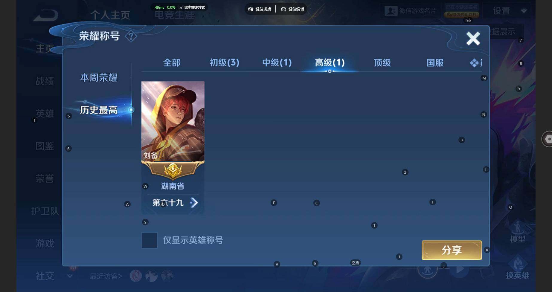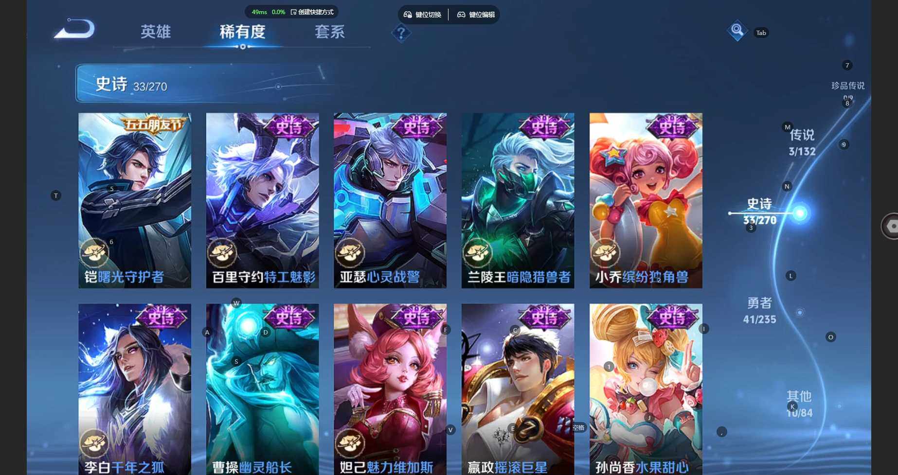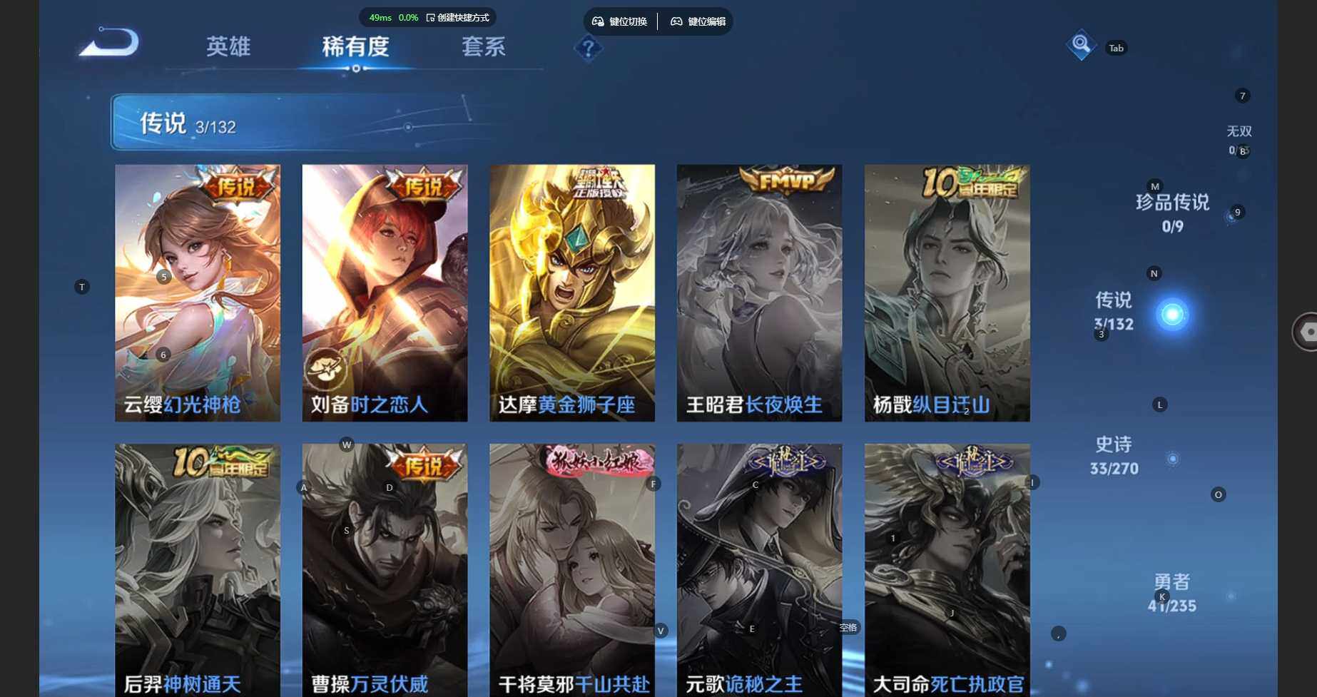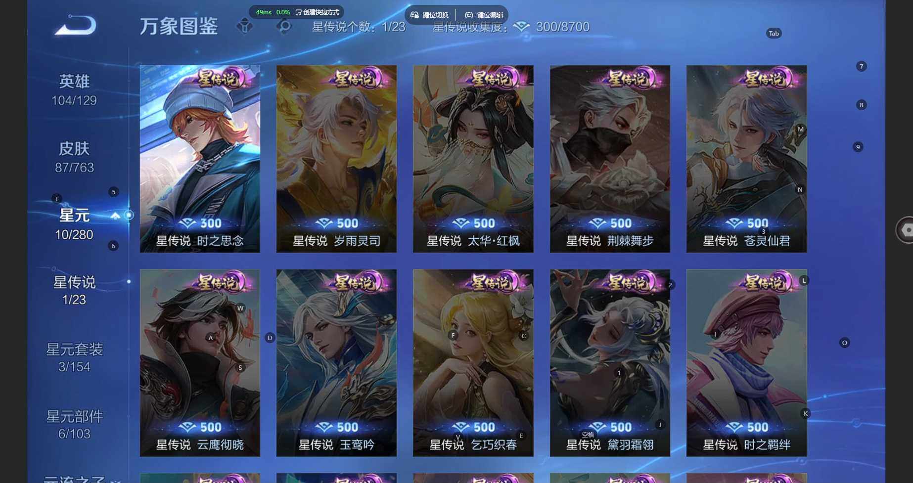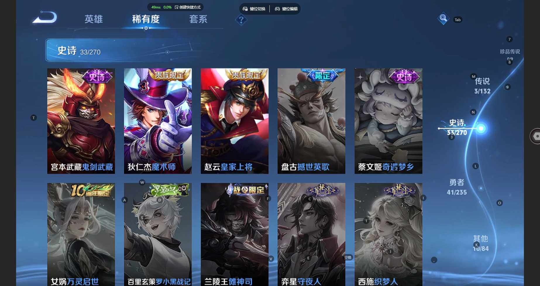 104英雄-87皮肤-安卓wx-v6-至尊星耀iv段位-104英雄-87皮肤-3传说-32史诗 【传说皮肤】:云缨幻光神呛,刘备时之恋人,达摩黄金狮子座 【限定皮肤】:狄仁杰阴阳师,赵云皇家上将,元歌无心,狄仁杰魔术师,项羽海滩派对,刘备百相守梦,裴擒虎李小龙,李元芳蔬乡物语 【赛季限定】:太乙真人谧流熔炉,钟馗虚灵犬护,甄姬逆浪荇歌,亚瑟荣光之誓,项羽九幽镇关 【战令限定】:李元芳蔬乡物语,孙膑茶境仙,马超访茗客