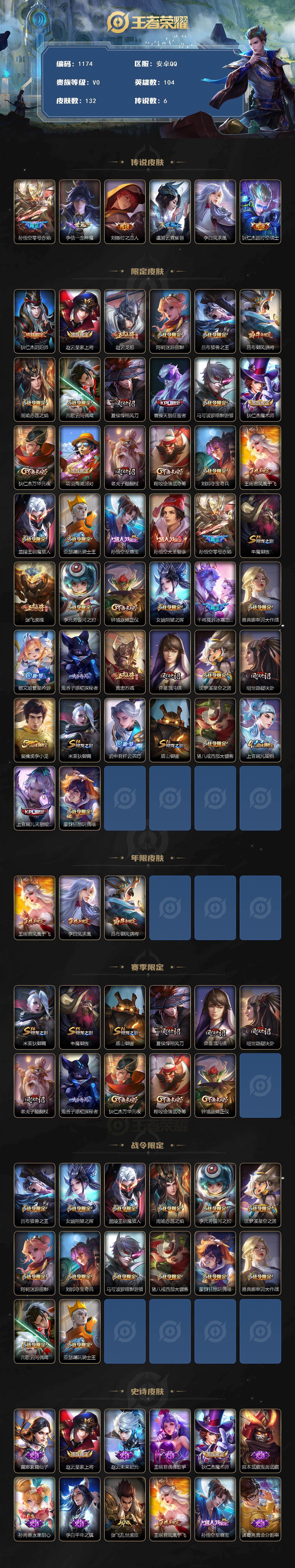 2242016 王者荣耀账号 安卓q-v0-秩序白银iii段位-104英雄-132皮肤-6传说-36史诗 【传说皮肤】:孙悟空零号赤焰,李信一念神魔,刘备时之恋人,虞姬云霓雀翎,李白凤求凰,狄仁杰超时空战士 【限定皮肤】:狄仁杰阴阳师,赵云皇家上将,赵云龙胆,阿轲迷踪丽影,吕布猎兽之王,吕布御风骁将,周瑜赤莲之焰,元歌云间偶戏,夏侯惇朔风刀,曹操天狼征服者,马可波罗暗影游猎,狄仁杰魔术师,狄仁杰万华元夜,项羽海滩派对,老夫子醍醐杖,程咬金演武夺筹,刘邦夺宝奇兵,王昭君凤凰于飞,兰陵王驯魔猎人,亚瑟潮玩骑士王,孙悟空至尊宝,孙悟空大圣娶亲,孙悟空零号赤焰,牛魔御旌,张飞虎魄,李元芳银河之约,钟馗驱傩正仪,女娲朔望之晖,干将莫邪冰霜恋舞曲,雅典娜单词大作战,蔡文姬繁星吟游,鬼谷子原初探秘者,黄忠烈魂,弈星混沌棋,沈梦溪星空之诺,明世隐疑决卦,裴擒虎李小龙,米莱狄御霄,云中君纤云弄巧,盾山御銮,猪八戒西部大镖客,上官婉儿梁祝,上官婉儿天狼绘梦者,蒙犽狂想玩偶喵 【年限皮肤】:王昭君凤凰于飞,李白凤求凰,吕布御风骁将 【赛季限定】:米莱狄御霄,牛魔御旌,盾山御銮,夏侯惇朔风刀,弈星混沌棋,明世隐疑决卦,老夫子醍醐杖,鬼谷子原初探秘者,狄仁杰万华元夜,程咬金演武夺筹,钟馗驱傩正仪 【战令限定】:吕布猎兽之王,女娲朔望之晖,兰陵王驯魔猎人,周瑜赤莲之焰,李元芳银河之约,沈梦溪星空之诺,阿轲迷踪丽影,刘邦夺宝奇兵,马可波罗暗影游猎,猪八戒西部大镖客,蒙犽狂想玩偶喵,雅典娜单词大作战,元歌云间偶戏,亚瑟潮玩骑士王 【史诗皮肤】:露娜紫霞仙子,赵云皇家上将,赵云未来纪元,王昭君偶像歌手,狄仁杰魔术师,宫本武藏鬼剑武藏,孙尚香水果甜心,李白千年之狐,张飞乱世虎臣,王昭君凤凰于飞,孙悟空至尊宝,诸葛亮黄金分割率,铠曙光守护者,干将莫邪冰霜恋舞曲,孙悟空大圣娶亲,狄仁杰鹰眼统帅,兰陵王驯魔猎人,上官婉儿梁祝,曹操天狼征服者,蔡文姬繁星吟游,李元芳银河之约,不知火舞魅语,阿轲迷踪丽影,橘右京修罗,马超神威,赵云龙胆,黄忠烈魂,孙尚香时之恋人,上官婉儿天狼绘梦者,马可波罗暗影游猎,张飞虎魄,蒙犽狂想玩偶喵,裴擒虎李小龙,云中君纤云弄巧,元歌云间偶戏,吕布御风骁将 【其他皮肤】:项羽海滩派对,韩信教廷特使,韩信街头霸王,露娜哥特玫瑰,达摩大发明家,赵云忍炎影,扁鹊救世之瞳,安琪拉玩偶对对碰,妲己少女阿狸,典韦黄金武士,亚瑟死亡骑士,宫本武藏万象初新,狄仁杰阴阳师,关羽龙腾万里,钟无艳海滩丽影,李白敏锐之力,苏烈坚韧之力,大乔守护之力,项羽科学大爆炸,米莱狄御霄,吕布猎兽之王,明世隐虹云星官,庄周奇妙博物学,牛魔御旌,女娲朔望之晖,小乔丁香结,吕布野性能量,盾山御銮,夏侯惇朔风刀,周瑜赤莲之焰,沈梦溪星空之诺,弈星混沌棋,哪吒次元突破,鲁班七号黑桃队长,明世隐疑决卦,刘邦夺宝奇兵,盾山圆桌骑士,老夫子醍醐杖,猪八戒西部大镖客,鬼谷子原初探秘者,雅典娜单词大作战,狄仁杰万华元夜,亚瑟潮玩骑士王,刘禅秘密基地,杨戬次元傲视,露娜瓷语鉴心,程咬金演武夺筹,张良缤纷绘卷,钟馗驱傩正仪,鲁班大师乓乓大师,鲁班七号福禄兄弟,鲁班七号木偶奇遇记,露娜绯红之刃,钟无艳生化警戒,花木兰剑舞者,程咬金华尔街大亨,狄仁杰锦衣卫,曹操超能战警,小乔万圣前夜,孙膑未来旅行,孙悟空西部大镖客,后羿精灵王,刘禅英喵野望,李白范海辛,李元芳特种部队,虞姬加勒比小姐,关羽天启骑士,夏侯惇战争骑士,太乙真人圆桌骑士,哪吒三太子,干将莫邪第七人偶,铠龙域领主,百里守约绝影神呛,百里玄策威尼斯狂欢,明世隐占星师,裴擒虎街头旋风,元歌午夜歌剧院,司马懿魇语军师,盾山极冰防御线,李信灼热之刃,上官婉儿修竹墨客,盘古创世神祝,瑶森,云中君荷鲁斯之眼,曜归虚梦演,马超幸存者,西施归虚梦演,蒙恬秩序猎龙将,阿古朵熊喵少女,澜孤猎 【