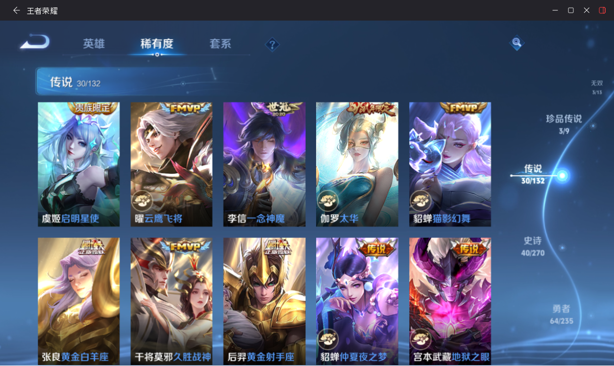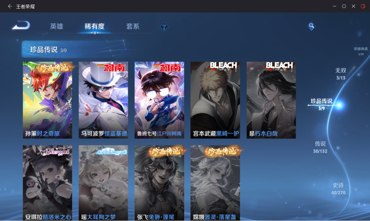 【王者荣耀】【lywz30669】珍品无双0 典藏1 无双3 珍品传说3 传说30 史诗40 英雄125 皮肤158 贵族8级 荣耀典藏:幻阙歌__无双皮肤:时之魔女|离恨烟|雪境奇遇__珍品传说:江户川柯南|怪盗基德|孙策-时之奇旅__传说皮肤:鸣野蒿|音你闪耀|无双飞将|炽阳神光|启明星使|地狱之眼|仲夏夜之梦|久胜战神|黄金射手座|黄金白羊座|猫影幻舞|一念神魔|云鹰飞将|游龙清影|乞巧织情|淬星耀世|画中仙|大乔-时之奇旅|太华|妄想奇谈|小乔-音你心动|战鼓燎原|逐花归海|山海·琳琅生|映山客|牧神诗旅|愿照·九州拓|愿照·众生和|愿照·千秋盛__稀有限定:御风骁将|至尊宝|烈魂|白鹤梁神女|神器·万象笔|大漠名商|古海寻踪|海滩派对|海盐诗旅|皇家上将|金庭之子|魔术师|千军破阵|擒涛扼浪|驱傩正仪|沙漠行僧|探海日志|天穹祈灯|妄想食味|五谷丰年|阴阳师|暗夜猫娘|暗隐猎兽者|暗渊魔法|缤纷独角兽|冰冠公主|冰雪圆舞曲|苍穹之光|大乔-猫狗日记|德古拉伯爵|地狱岩魂|节奏热浪|金属风暴|乐园奇幻夜|龙骑士|女仆咖啡|偶像歌手|水果甜心|孙策-猫狗日记|晚萤|摇滚巨星|鹰眼统帅|幽灵船长|逐浪之夏|紫霞仙子|陌上桑|噬灭天穹|霜北刀|蔡文姬-夏日便利店|虞姬-夏日便利店|无限星赏官|舞动绿茵|特工魅影|心灵骇客|谧流熔炉|云中旅人|天堂福音|虚灵犬护|石田雨龙|逆浪荇歌__优质皮肤:埃及法老|木偶奇遇记|碧珀绯影|绯红之刃|伊势巫女|第七人偶|绝影神呛|地府判官|花间舞|蔷薇王座|战争女神|阿摩司公爵|精灵公主|暗都幽影|功夫炙烤|潮玩探月行|秘密基地|鲨炮海盗猫|野性能量|丁香结|守护之力|幻乐之宴|功夫老勺|幻想奇妙夜|海滩丽影|阿尔法小队|兔女郎|宫本武藏-未来纪元|东方不败|红桃皇后|爱心护理|街头霸王|教廷特使|时空谍影|破局者|幻泉雾影|拳王|时尚教父|救世之瞳|白色死神|哥特玫瑰|西施-雪境奇遇|星梦巡礼|景韶洛都|雾都夜雨|铁骨偃魂|纽约教父|龙腾万里|敏锐之力|西施-归虚梦演|牛魔-西部大镖客|乓乓大师|蒙犽-归虚梦演|曜-归虚梦演|沉稳之力|苍林狼骑|妄想特派|命运加冕|小满鸭|死霸装|锦麟游梦|踏浪烽翎__贵族等级:贵族1级__王者段位:永恒钻石精品高质量v8号【荣耀典藏】1 幻阙歌【无双皮肤】3 时之魔女,雪境奇遇,离恨烟【珍品传说】3 时之奇旅,江户川柯南,怪盗基德【传说皮肤】30 愿照·众生和,愿照·千秋盛,愿照·九州拓,无双飞将,逐花归海,山海·琳琅生,太华,霜北刀,地狱之眼,炽阳神光,黄金射手座,淬星耀世,至尊宝等热门限定皮肤
