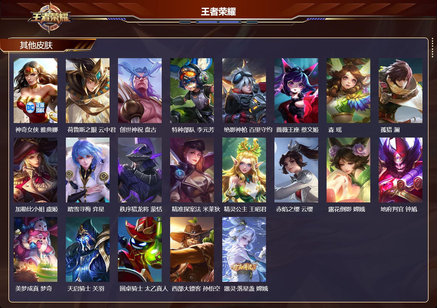 安卓qq/永恒钻石/300皮肤/128英雄/2典藏/0珍品无双/3无双/1珍品传说/19传说/71史诗/9稀有英雄【1 珍品传说】器灵·落星盏 嫦娥【2 典藏皮肤】天鹅之梦 小乔拾光映像 瑶【3 无双皮肤】雪境奇遇 甄姬时之魔女 小乔真我赫兹 瑶【19 传说皮肤】启明星使 虞姬云霓雀翎 虞姬地狱火 孙悟空永曜之星 杨戬凤求凰 李白浮生妄 夏洛特猫影幻舞 貂蝉仲夏夜之梦 貂