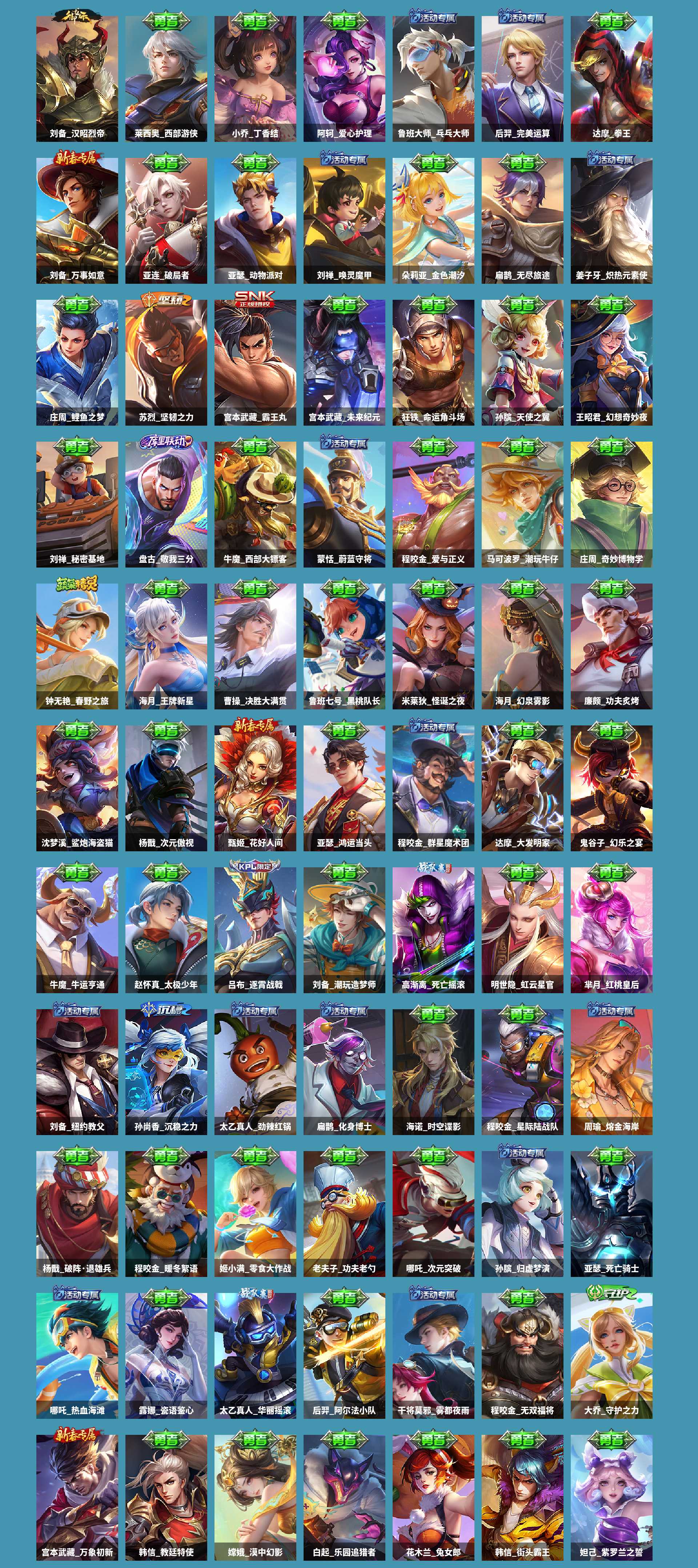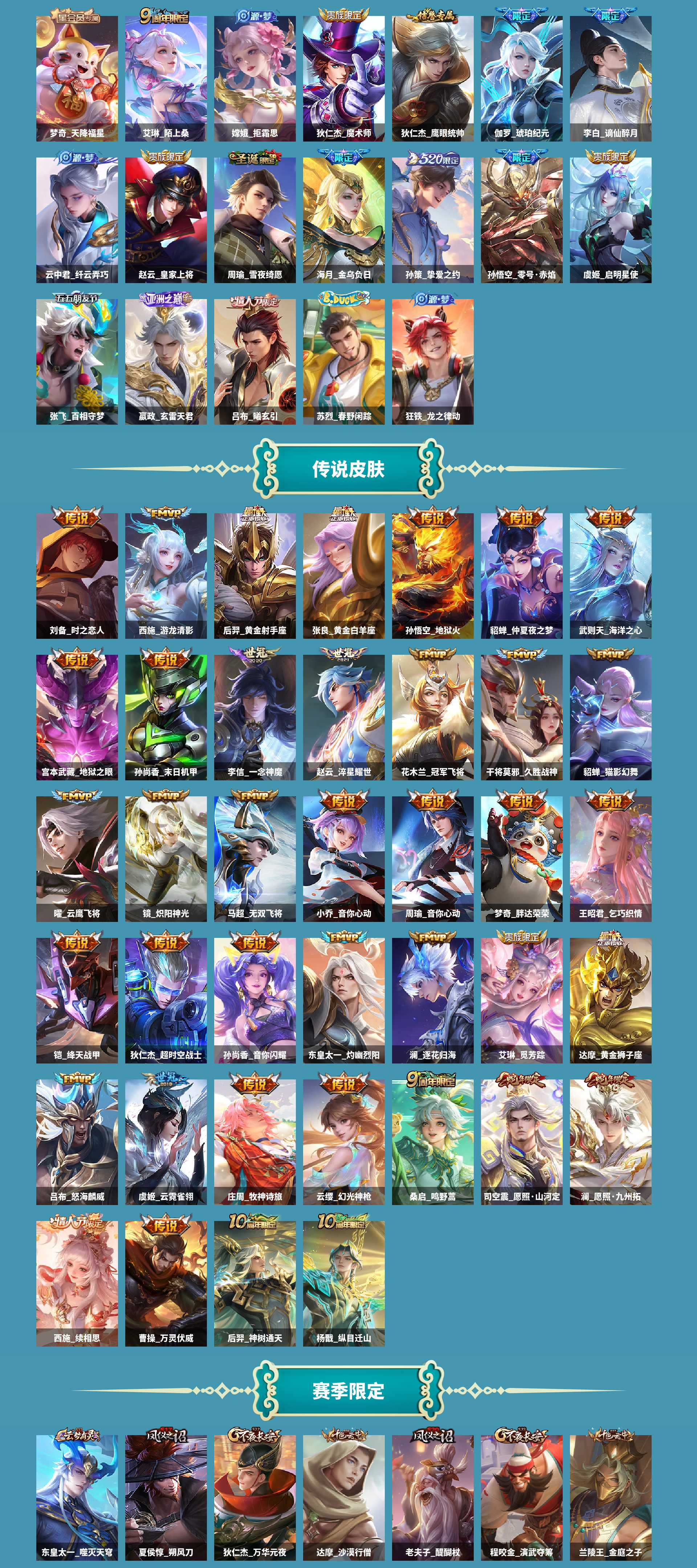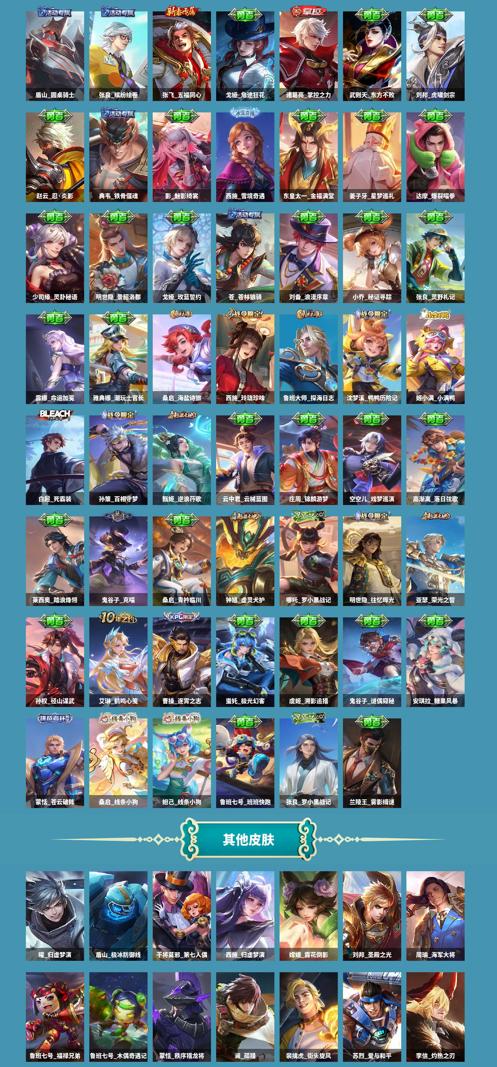 al677239 【9顶配账号:典藏年限kpl星元皮肤9 荣耀典藏9 无双皮肤3 珍品传说9顶配账号:典藏年限kpl,诚意可刀】 皮肤数559 无双皮肤数3 传说皮肤数55 珍品传说皮数9 星传说皮肤数8 史诗皮肤数191 英雄数129 营地id545596180 贵族等级【文本】贵族10级 【贵族10级】 星元皮肤9 荣耀典藏9 无双皮肤3 珍品传说9 内测皮肤3 年限皮肤25 限定皮肤201 赛季限定34 史诗皮肤193 战令限定64 勇者皮肤209 其他皮肤80 天幕1 星元皮肤:镜破晓神光,狄仁杰星际治安官,刘备时之思念,孙悟空零号雷霆,孙尚香未来机甲,武则天幻海之心,孙悟空幽冥火,宫本武藏幽冥之眼,貂蝉金色仲夏夜; 荣耀典藏:吕布千魇归渊,韩信弑呛猎影,虞姬神鉴启示录,李白鸣剑曳影,铠银白咏叹调,关羽赤影疾锋,芈月大秦宣太后,夏侯惇无限飓风号,小乔天鹅之梦; 无双皮肤:孙悟空无相,铠神罪,妲己青丘九尾; 珍品传说:宫本武藏黑崎一护,暃朽木白哉,瑶大耳狗之梦,安琪拉酷洛米之心,张飞兔狲蓬尾,嫦娥器灵落星盏,孙策时之奇旅,马可波罗怪盗基德,鲁班七号江户川柯南; 内测皮肤:姬小满妄想食味,孙尚香蔷薇恋人,嬴政优雅恋人; 年限皮肤:司空震愿照山河定,妲己愿照众生和,蔡文姬愿照福禄聚,澜愿照九州拓,虞姬愿照岁时盈,女娲愿照千秋盛,韩信飞衡,杨玉环寅虎心曲,大乔乘龙忆丹青,安琪拉乘龙聚宝船,赵云乘龙铭钟鼎,孙策乘龙淬吴钩,孙尚香乘龙问璇玑,王昭君凤凰于飞,黄忠烈魂,伽罗炽翼辉光,马超神威,马可波罗山海玄木吟,孙膑寅虎展翼,廉颇寅虎御盾,吕布御风骁将,诸葛亮时雨天司,牛魔奔雷神使,甄姬幽恒,典韦岱宗; 限定皮肤:海诺心动手记,百里玄策罗小黑战记,曹操逐霄之志,少司缘巫礼祀神,杨戬纵目迁山,女娲万灵启世,张良罗小黑战记,大乔白鹤梁神女,西施织梦人,公孙离涂山容容,鬼谷子克喵,朵莉亚幻珠鲛人,白起死霸装,宫本武藏黑崎一护,暃朽木白哉,后羿石田雨龙,姬小满小满鸭,牛魔小牛鸭,梦奇天降福星,瑶大耳狗之梦,安琪拉酷洛米之心,亚瑟布丁狗之誓,老夫子藏狐褐绒,扁鹊灵蛊蚀心,张飞兔狲蓬尾,百里守约雪豹霜爪,狂铁龙之律动,苏烈春野闲踪,钟馗虚灵犬护,阿轲化蝶舞,西施续相思,嫦娥器灵落星盏,司空震愿照山河定,妲己愿照众生和,关羽冰锋战神,赵怀真器灵浮梦炉,蔡文姬愿照福禄聚,澜愿照九州拓,虞姬愿照岁时盈,女娲愿照千秋盛,孙策时之奇旅,马超访茗客,孙膑茶境仙,嬴政玄雷天君,太乙真人谧流熔炉,牛魔星界战将,马可波罗怪盗基德,吕布逐霄战戟,鲁班七号江户川柯南,百里守约百相守梦,老夫子百相守梦,姬小满妄想食味,庄周高山流水,桑启鸣野蒿,艾琳陌上桑,李白谪仙醉月,东皇太一噬灭天穹,韩信飞衡,盘古敬我三分,亚连破空之剑,孙悟空神迹守卫,蔡文姬夏日便利店,上官婉儿神器万象笔,姜子牙天穹之誓,虞姬夏日便利店,镜青焰无极,孙悟空孙行者,项羽苍威无极,刘邦剑破天穹,庄周云端筑梦师,孙悟空大圣娶亲,海月金乌负日,后羿圣弓游侠,鲁班七号蔬乡物语,沈梦溪龙舞盛年,李元芳蔬乡物语,吕布曦玄引,墨子神迹守卫,杨玉环寅虎心曲,老夫子航海奇遇记,大乔乘龙忆丹青,安琪拉乘龙聚宝船,赵云乘龙铭钟鼎,孙策乘龙淬吴钩,孙尚香乘龙问璇玑,伽罗琥珀纪元,嫦娥漠中幻影,高渐离燃音魔法,艾琳觅芳踪,鬼谷子天穹祈灯,妲己灵卜魔法,蒙恬荣光圣徽,周瑜雪夜绮愿,嫦娥拒霜思,蒙犽百解令,阿古朵江河有灵,张良古海寻踪,司空震地狱燃心,艾琳流音漫舞,马可波罗逐梦之星,戈娅驭风魔法,鲁班大师探海日志,西施玲珑珍味,猪八戒猪悟能,