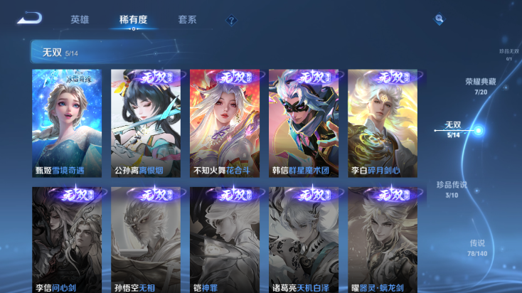【王者荣耀】【lywz30737】珍品无双0 典藏7 无双5 珍品传说3 传说78 史诗125 英雄128 皮肤440 贵族10级 荣耀典藏:全息碎影|神鉴启示录|银白咏叹调|九霄神辉|鸣剑·曳影|弑呛猎影|星域神启__无双皮肤:群星魔术团|碎月剑心|离恨烟|花合斗|雪境奇遇__珍品传说:江户川柯南|怪盗基德|孙策-时之奇旅__传说皮肤:鸣野蒿|枫霜尽|前尘镜|无双飞将|挚爱花嫁|挚爱之约|绛天战甲|炽阳神光|启明星使|胖达荣荣|地狱之眼|地狱火|海洋之心|孙策-末日机甲|仲夏夜之梦|久胜战神|黄金狮子座|狄仁杰-超时空战士|黄金射手座|黄金白羊座|猫影幻舞|刘备-时之恋人|一念神魔|云鹰飞将|冠军飞将|游龙清影|乞巧织情|淬星耀世|电玩·雷克斯|绯月行|浮生妄|鹤羽星尊|记忆之芯|孙尚香-末日机甲|齐天大圣|白虎志|凤求凰|黄金天蝎座|金乌负日|惊梅引|兰陵王-默契交锋|零号·赤焰|落雪白狼|吕布-曦玄引|马超-琥珀纪元|怒海麟威|燃星之曲|诗剑行|霜月吟|碎云|天魔缭乱|夜礼服假面|战鼓燎原|周瑜-音你心动|逐花归海|乘龙·淬吴钩|乘龙·铭钟鼎|乘龙·问璇玑|觅芳踪|山海·苍雷引|山海·炽霜斩|神器·狴犴令|朵莉亚-心动手记|寅虎·赤拳|灼幽烈阳|冥王哈迪斯|玄雷天君|幻光神呛|祥瑞亨通|愿照·岁时盈|愿照·山河定|愿照·九州拓|愿照·众生和|愿照·福禄聚|星之鸣奏|愿照·千秋盛|续相思|神树通天__稀有限定:至尊宝|朱雀志|一生所爱|神威|白鹤梁神女|孙行者|山海·玄木吟|神器·万象笔|暗影游猎|百解令|百里守约-真我赫兹|冰锋战神|超元猎域|地狱燃心|电玩高手|古海寻踪|海滩派对|海盐诗旅|航海奇遇记|幻夜卜梦|皇家上将|辉光之辰|剑破天穹|江河有灵|降魔|决胜骁骑|美猴王|魔术师|匿光破解者|奇幻香踪|擒涛扼浪|青焰无极|燃音魔法|荣光圣徽|探海日志|天穹祈灯|妄想食味|无心|星界游侠|驯魔猎人|夜都怪侠|阴阳师|银河之约|驭风魔法|遇见飞天|云间偶戏|真爱魔法|暗夜贵公子|暗夜猫娘|暗隐猎兽者|暗渊魔法|缤纷独角兽|冰冠公主|冰雪圆舞曲|苍穹之光|乘风破浪|大乔-猫狗日记|德古拉伯爵|地狱岩魂|电玩·爆裂旋风|电玩小子|伽罗-琥珀纪元|功夫厨神|鬼剑武藏|唤灵魅影|黄金分割率|箭羽风息|节奏热浪|金属风暴|乐园奇幻夜|李元芳-蔬乡物语|龙鼓争鸣|龙骑士|吕布-末日机甲|魅力维加斯|魅语|梦奇-顽趣|女仆咖啡|偶像歌手|青蛇|热力回旋|赏金猎手|绅士熊喵|圣诞狂欢|圣诞恋歌|鲁班七号-蔬乡物语|水果甜心|水晶猎龙者|孙策-猫狗日记|滕王阁序|天才门将|天秀·幻梦|晚萤|赵云-未来纪元|星夜王子|摇滚巨星|鹰眼统帅|幽灵船长|遇见神鹿|月团寄思|钟无艳-超时空战士|逐浪之夏|紫霞仙子|百里守约-百相守梦|老夫子-百相守梦|噬灭天穹|敬我三分|破空之剑|战舞者|东方月初|涂山红红|埋骨钱|蔡文姬-夏日便利店|虞姬-夏日便利店|天穹之誓|怒海争锋|海诺-心动手记|修罗|曙光守护者|心灵战警|千年之狐|刘备-百相守梦|孙尚香-时之恋人|无限星赏官|舞动绿茵|特工魅影|心灵骇客|茶境仙|星界战将|谧流熔炉|苍鳞隐世|糖绘人间|化蝶舞|玲珑珍味|朔望之晖|孙悟空-神迹守卫|流音漫舞|访茗客|暖冬·兔眠|灵卜魔法|苍威无极|仙境爱丽丝|龙之律动|逆浪荇歌|赞萌露比|织梦人|守夜人|涂山容容|百里玄策-罗小黑战记|荣光之誓|万灵启世|巫礼祀神|小乔-线条小狗|周瑜-线条小狗__优质皮肤:尼罗河女神|一千零一夜|创世神祝|年年有余|埃及法老|孤猎|木偶奇遇记|熊喵少女|午夜歌剧院|露花倒影|未来旅行|激情绿茵|海之征途|天启骑士|碧珀绯影|秩序猎龙将|锦衣卫|冰刃幻境|森|超能战警|英喵野望|维京掠夺者|海军大将|绯红之刃|踏雪寻梅|启蛰|战争骑士|伊势巫女|画中游|生化警戒|威尼斯狂欢|第七人偶|潮流仙人|芝加哥教父|街头旋风|绝影神呛|地府判官|荷鲁斯之眼|幸存者|赤焰之缨|福禄兄弟|隐刃|前尘|特种部队|三太子|精灵王|剑舞者|范海辛|星航指挥官|龙域领主|爱与和平|占星师|花间舞|魇语军师|极冰防御线|花见巫女|棒球奇才|东海龙王|蔷薇王座|灼热之刃|精准探案法|圣殿之光|帝国元帅|战争女神|霓裳曲|加勒比小姐|阿摩司公爵|异域舞娘|精灵公主|修竹墨客|万圣前夜|怪诞之夜|长夏之忆|异域游侠|暗都幽影|功夫炙烤|聚星闪耀|潮玩探月行|秘密基地|次元突破|鲨炮海盗猫|野性能量|丁香结|虹云星官|守护之力|坚韧之力|幻乐之宴|功夫老勺|命运角斗场|幻想奇妙夜|海滩丽影|阿尔法小队|兔女郎|死亡骑士|黄金武士|少女阿狸|天使之翼|玩偶对对碰|宫本武藏-未来纪元|红桃皇后|忍·炎影|爱心护理|街头霸王|教廷特使|金色潮汐|时空谍影|决胜大满贯|破局者|王牌新星|零食大作战|西部游侠|太极少年|牛运亨通|幻泉雾影|潮玩造梦师|危途狂花|胡桃狂想曲|契约魔法|紫罗兰之誓|铁甲之心|无尽征程|拳王|时尚教父|救世之瞳|白色死神|程咬金-星际陆战队|白执事|大发明家|哥特玫瑰|魅影绮裳|西施-雪境奇遇|金福满堂|星梦巡礼|灵卦秘语|爆裂喵拳|掌控之力|雾都夜雨|逐霄战戟|铁骨偃魂|纽约教父|龙腾万里|乱世虎臣|经纬探寻者|敏锐之力|西施-归虚梦演|孙悟空-西部大镖客|牛魔-西部大镖客|鲁班大师-归虚梦演|龙舞盛年|汉昭烈帝|乓乓大师|五福同心|盾山-圆桌骑士|蒙犽-归虚梦演|万事如意|曜-归虚梦演|唤灵魔甲|太乙真人-圆桌骑士|沉稳之力|程咬金-群星魔术团|完美运算|花好人间|熔金海岸|万象初新|潮玩骑兵|苍林
