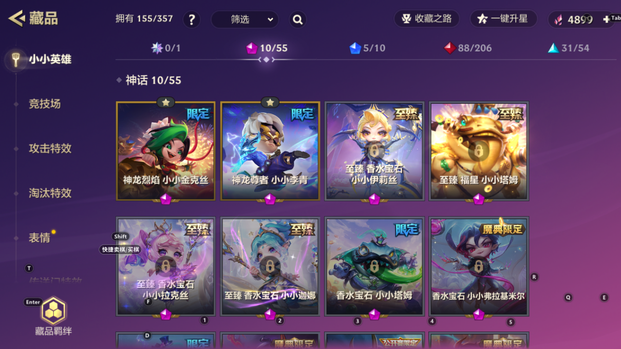 [11643550]【10神话v9特价出详情看看图】实名: 可修改 角色等级: 117 小小英雄数量: 155 贵族等级: vip9 段位: 黑铁 小小英雄(神话): 龙腾虎跃 小小瑟提神龙尊者 小小李青神龙尊者 夜月幻龙 小小亚索甜心之翎 小小霞神龙烈焰 小小金克丝星之守护者 小小阿卡丽星之守护者 小小拉克丝星之守护者 小小阿狸源计划:雄心 小小卡特琳娜源计划:雷 小小卢锡安 竞技场(英雄): 神龙之巅魄罗水上乐园 竞技场(传说): 吉虎超市德玛西亚团结圣坛