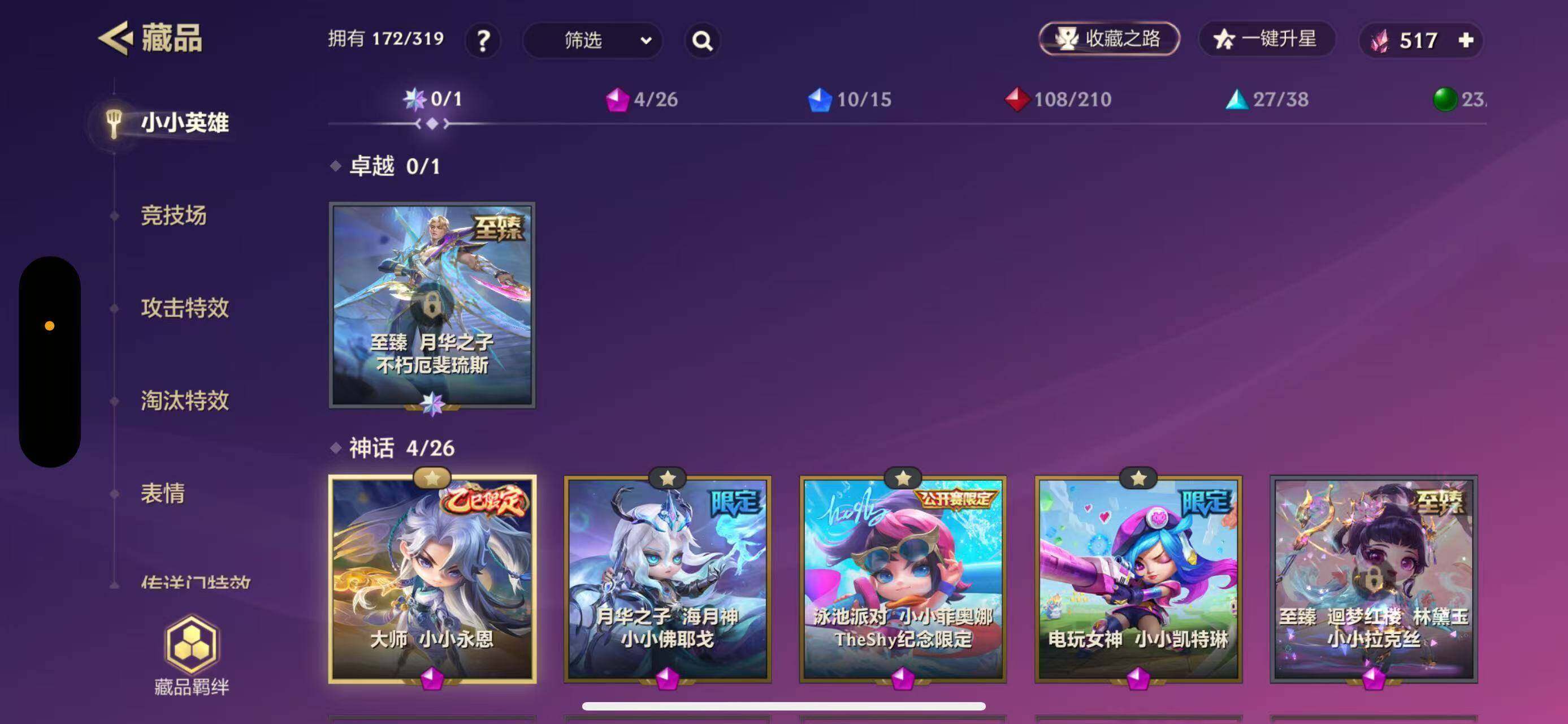 任意点卷恢复vip8 大师 小小永恩带三角洲麦晓文,4神话小小英雄-1神话竞技场-48小小英雄-2竞技场-9攻击特效 【限定小小英雄】:小小杰斯 【传说小小英雄】:凯旋 宇宙鱿,这货不是尖叫鸡 咚咚,dj 空空,仓鼠商人,焰羽,鳞珑,魔影 夜月兔,胜利 宇宙鱿,青花瓷 婉婉,胜利 威老板,奥德赛鼓手 咚咚 【史诗小小英雄】:魔灵 软软,远古巨龙 敖兴 【神话竞技场】:幻境竞技场 【神话小小英雄】:大师 小小永恩,月华之子 海月神 小小佛耶戈,泳池派对 小小菲奥娜 theshy纪念限定,电玩女神 小小凯特琳