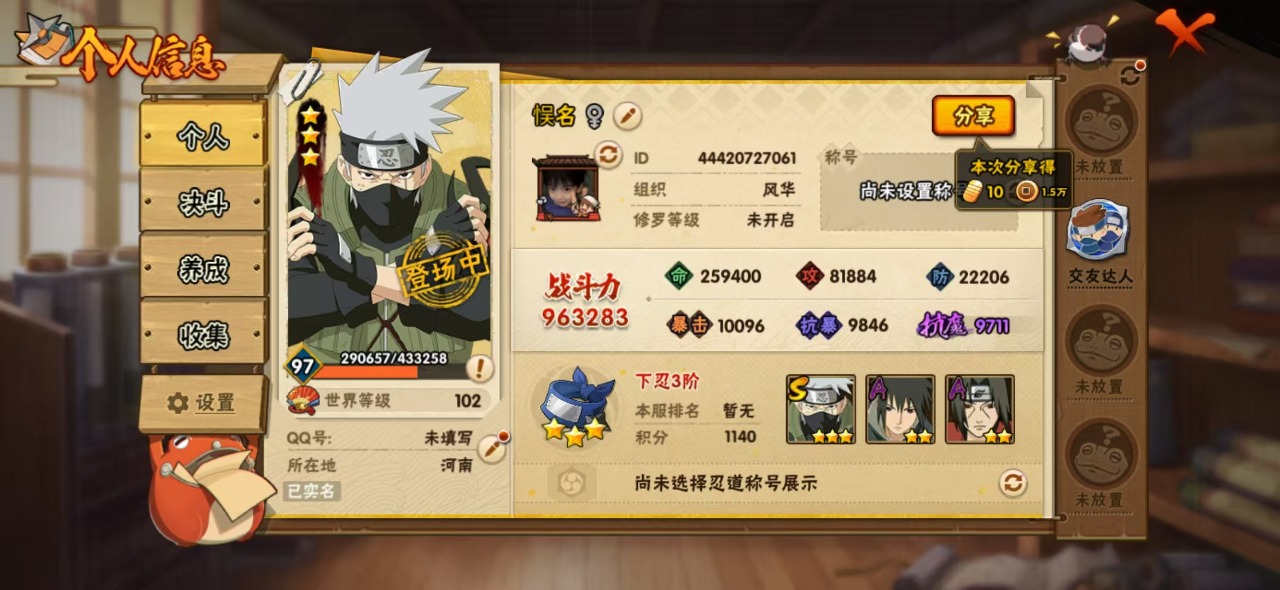 [9746964]v6 3s 可二次 s级忍者:自来也 「舞之豪杰」旗木卡卡西「须佐能乎」佩恩「天道」